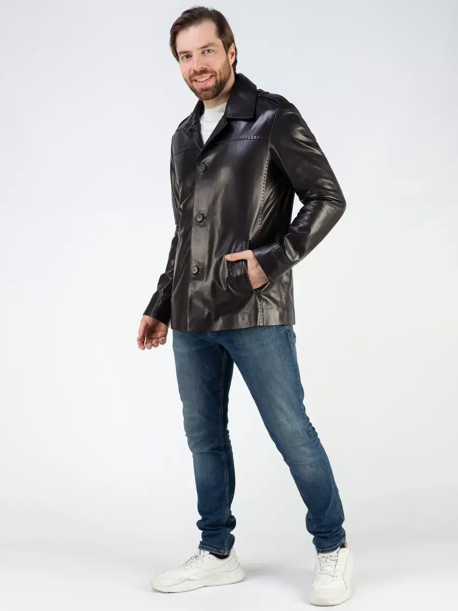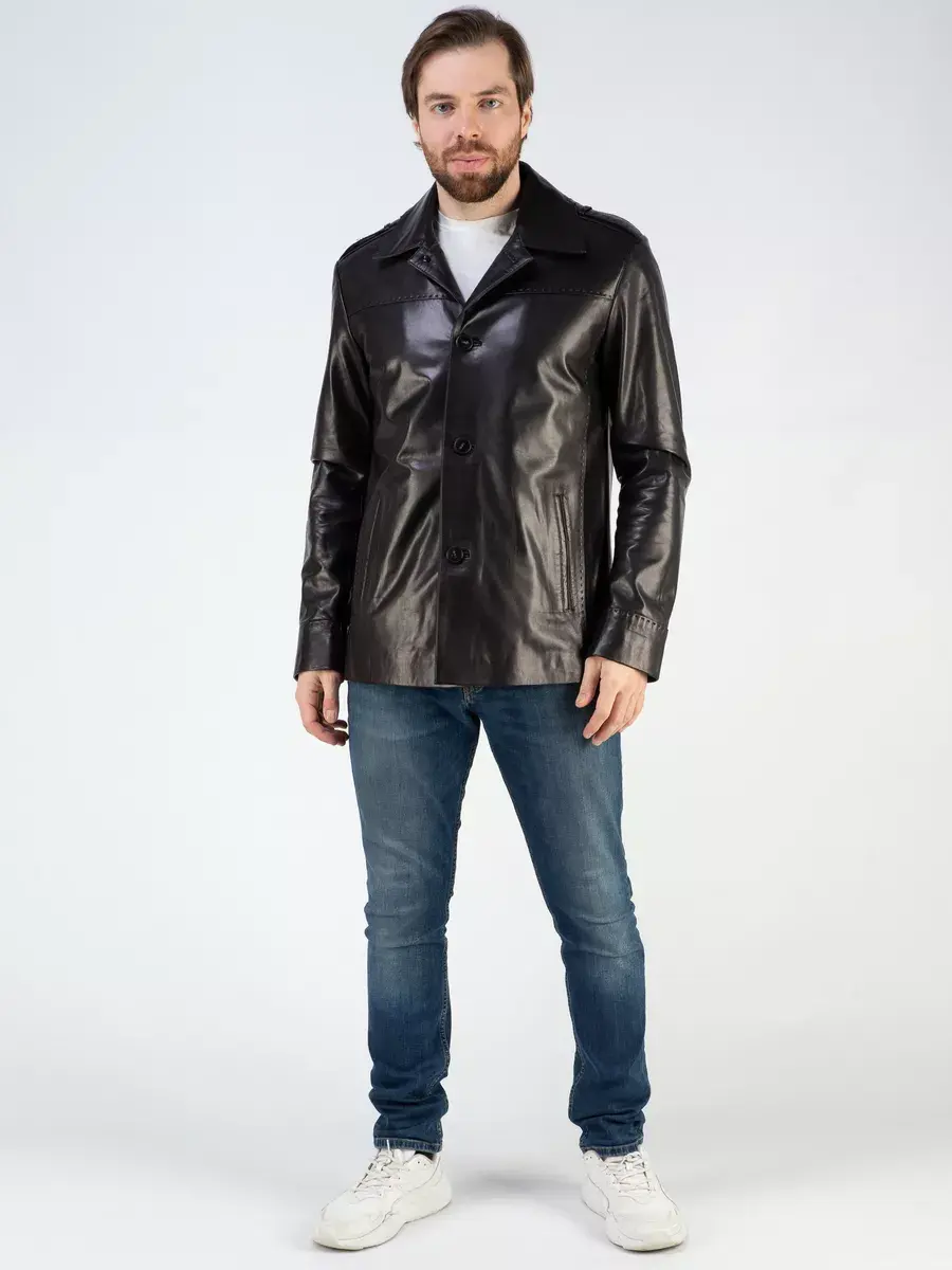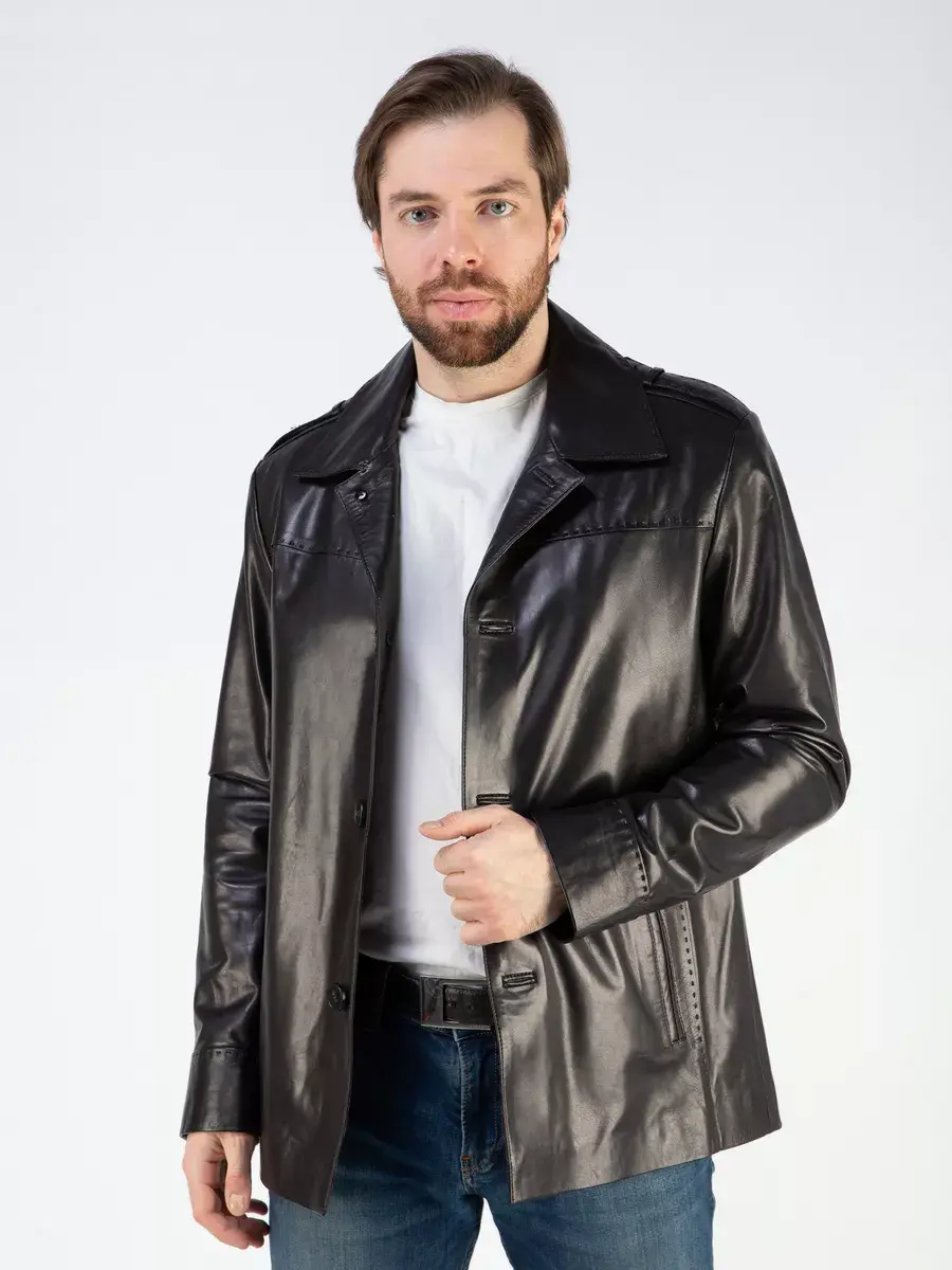 Куртка мужская весна - осень имеет длину по спинке 80 см., прекрасно подходить под классический и повседневный стиль одежды. Стильный отложной воротник, гладкая кожа, декоративная строчка придают куртке уникальность и изысканность, идеально впишется в деловой стиль и дополнит солидный образ мужчины или парня подростка, независимо от возраста. Застежка на пуговицах обеспечивает легкость и удобство в использовании, а прорезные карманы по бокам дополнительно увеличивают функциональность и практичность куртки.