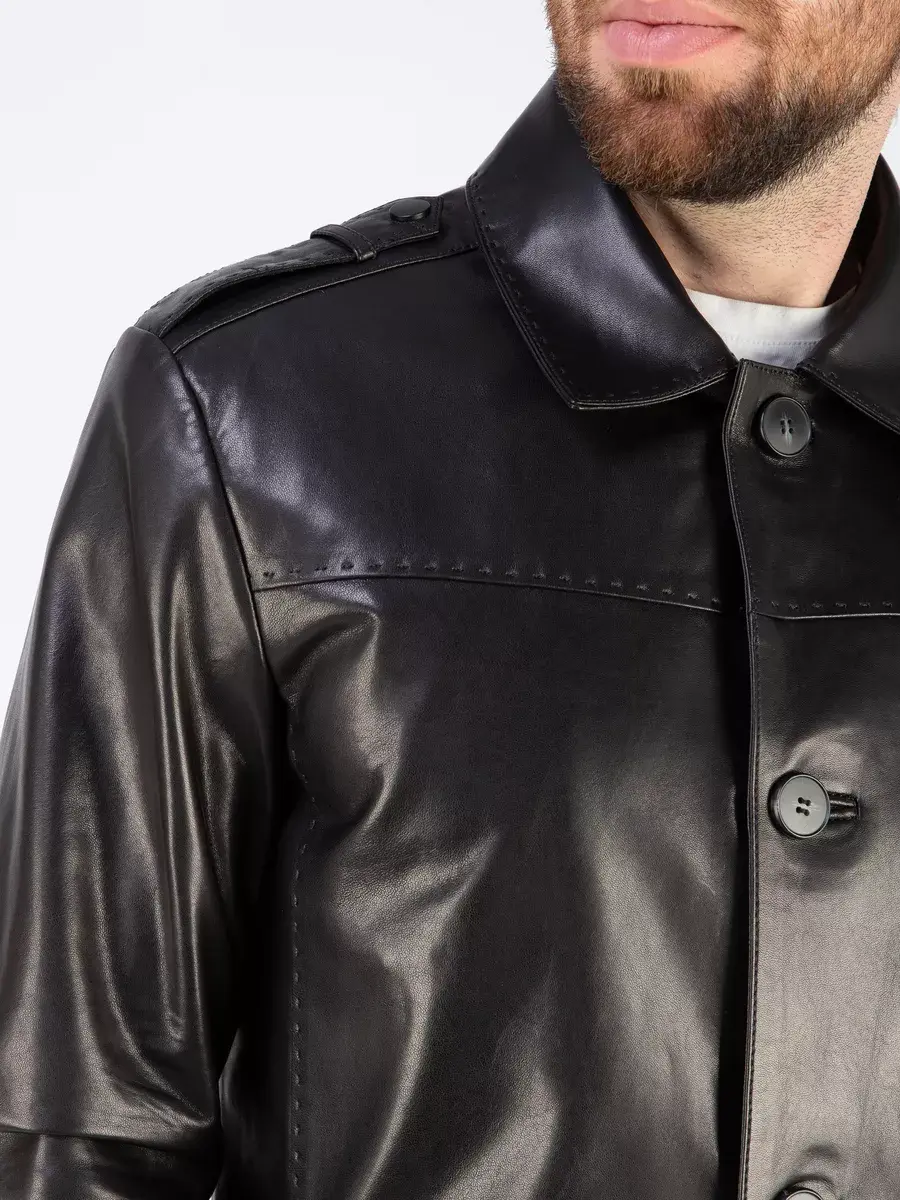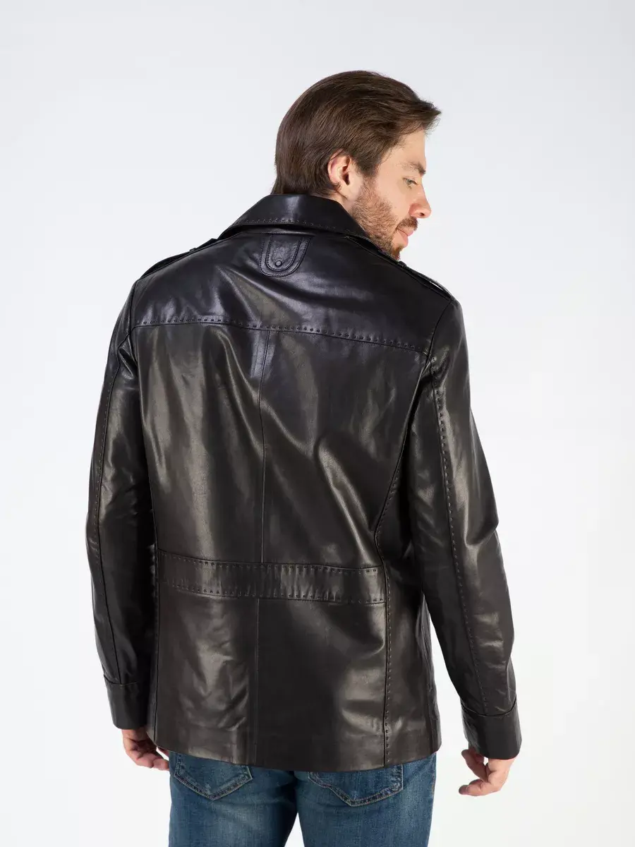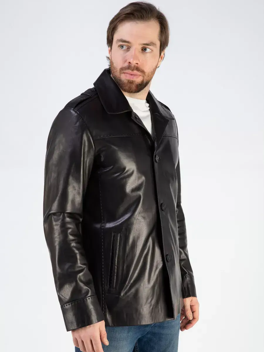 Куртка мужская весна - осень имеет длину по спинке 80 см., прекрасно подходить под классический и повседневный стиль одежды. Стильный отложной воротник, гладкая кожа, декоративная строчка придают куртке уникальность и изысканность, идеально впишется в деловой стиль и дополнит солидный образ мужчины или парня подростка, независимо от возраста. Застежка на пуговицах обеспечивает легкость и удобство в использовании, а прорезные карманы по бокам дополнительно увеличивают функциональность и практичность куртки.
