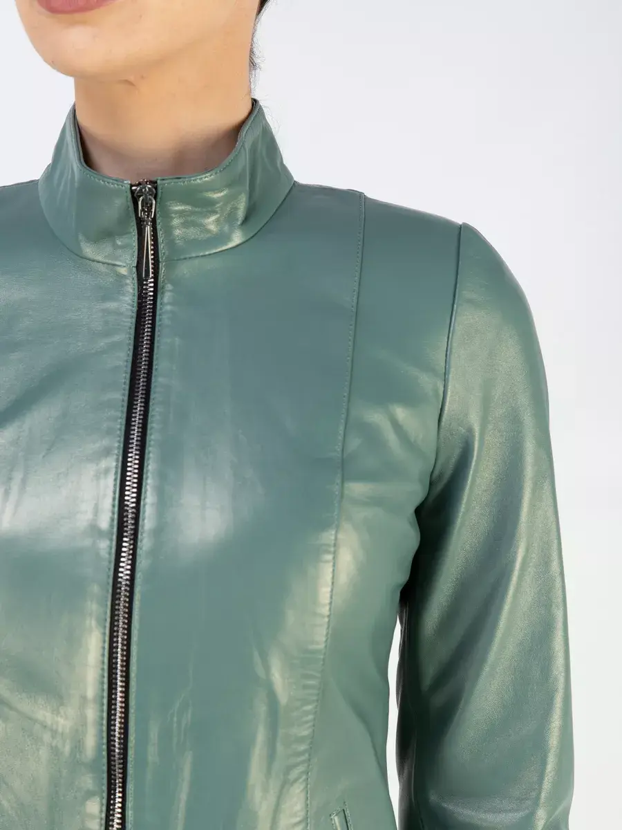 Каждая деталь этой кожаной куртки выполнена с особым вниманием к качеству материалов. Изысканный материал, ровные швы, втачной рукав, прорезные карманы, фурнитура добавляют акценты стиля и функциональности, делают эту женскую куртку универсальным элементом гардероба, который подходит практически под любой стиль, деловой или повседневный. Классический воротник стойка, застежка на молнии добавляет изюминку образу, делая его неповторимым. Благодаря его длине по спинке 55см и стильному приталенному крою, куртка кожаная женская станет идеальным выбором для весеннего и летнего сезона.