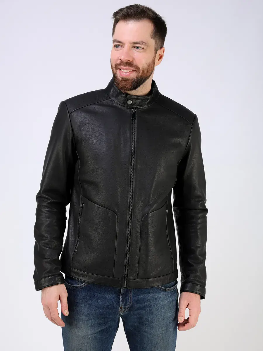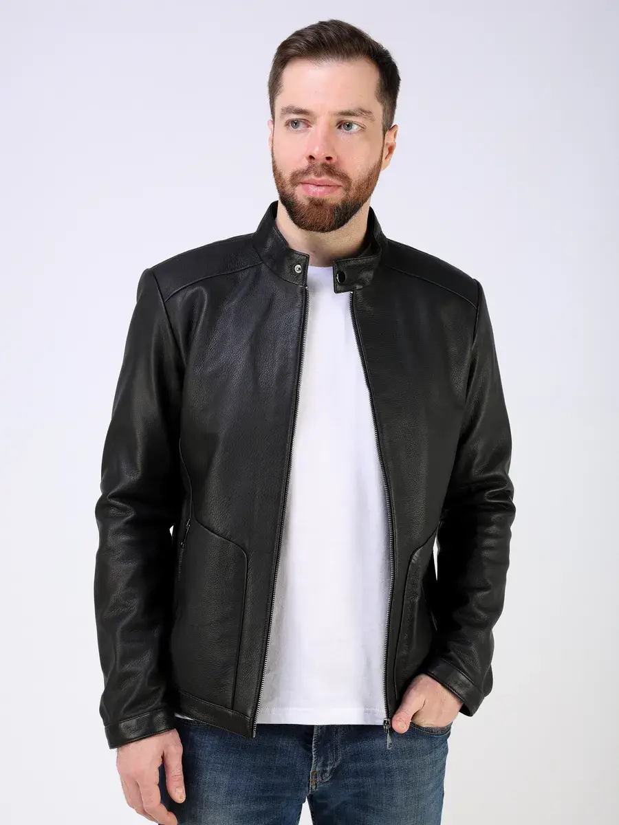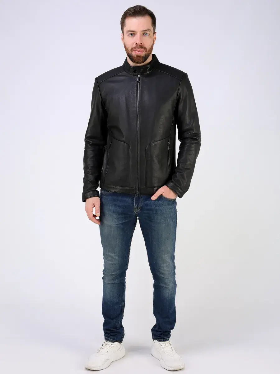 Куртка кожаная мужская из натуральной кожи имеет длину по спинке 65 см.