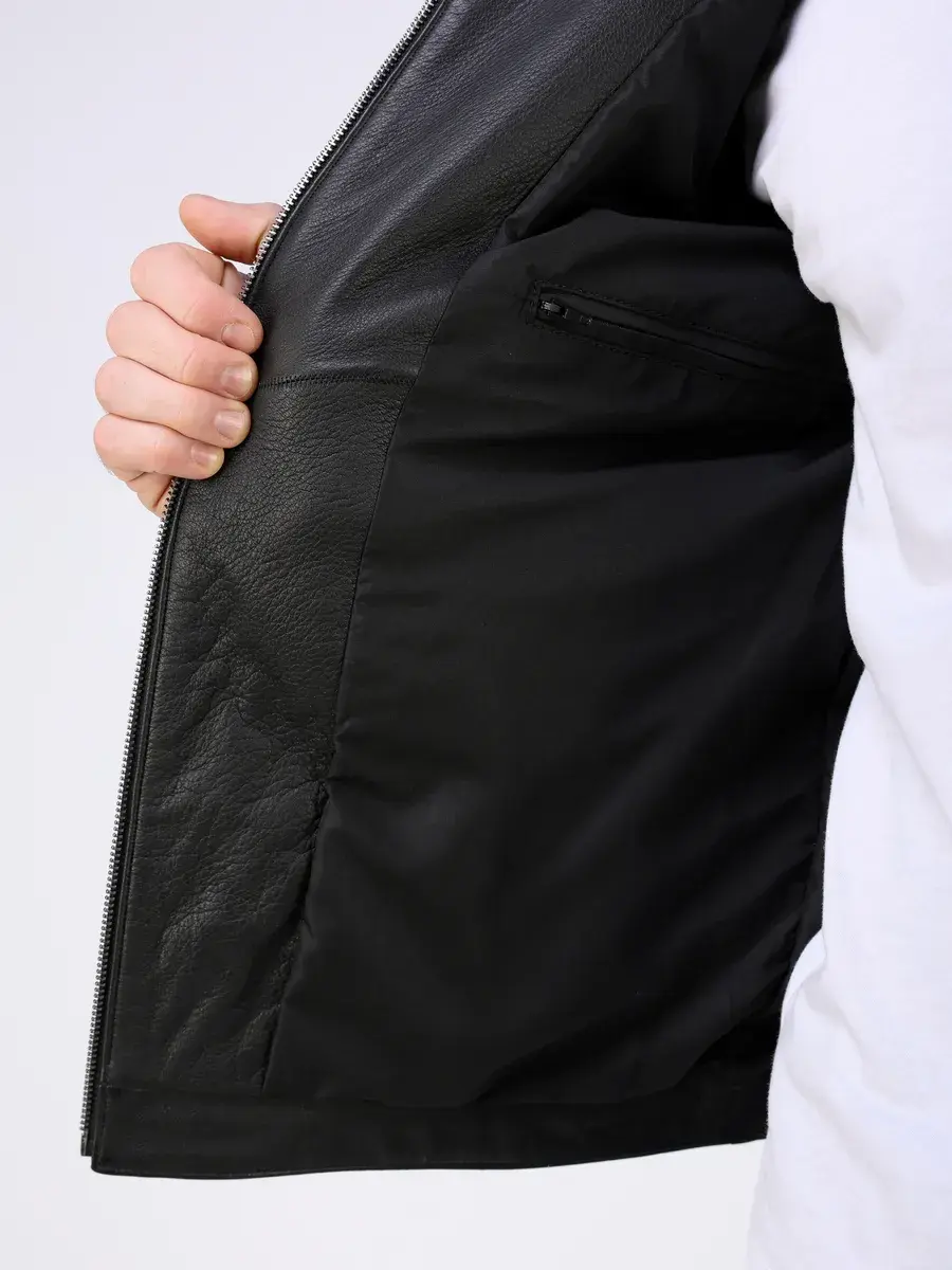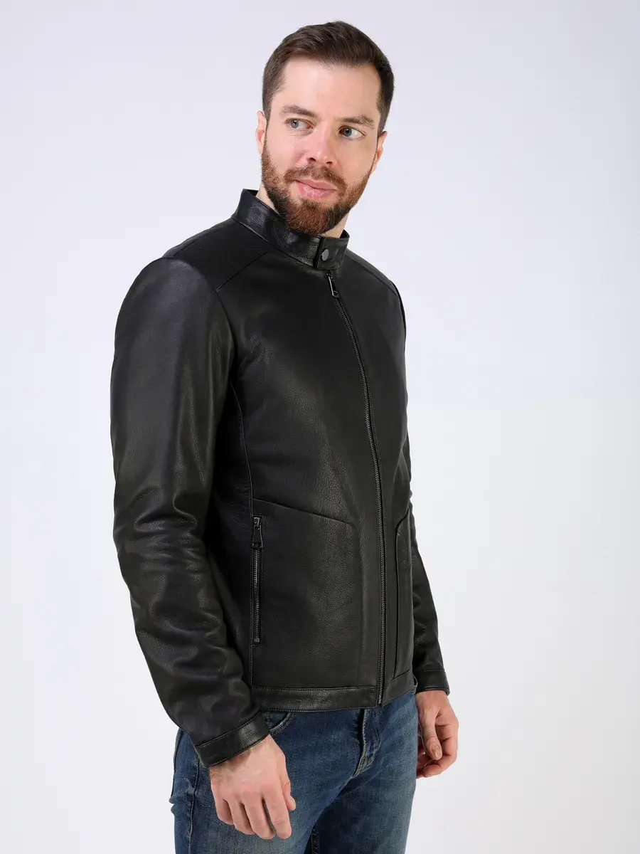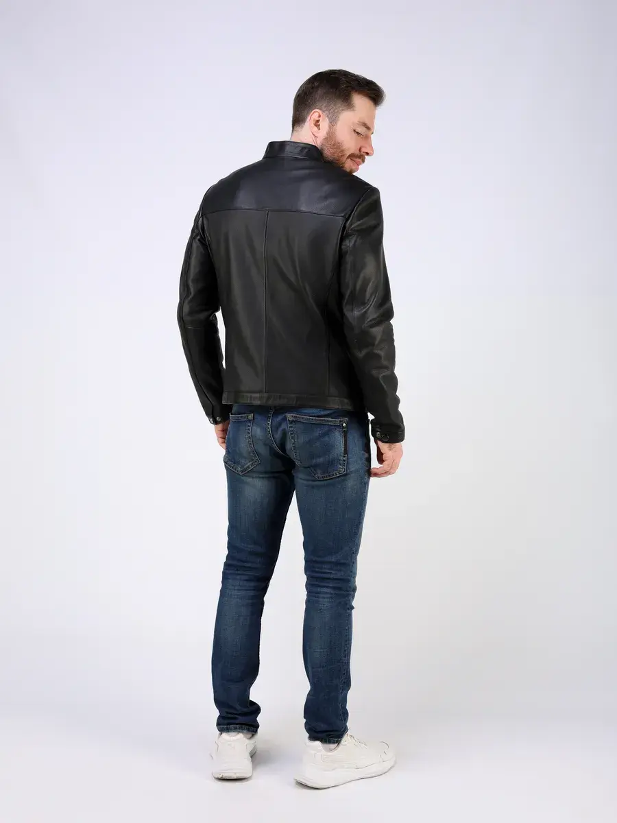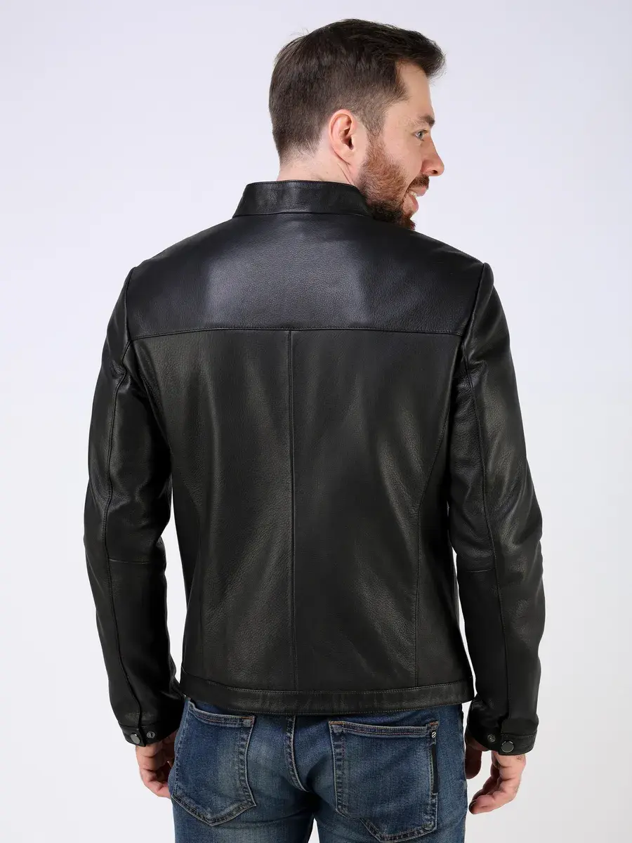 Куртка кожаная мужская из натуральной кожи имеет длину по спинке 65 см.