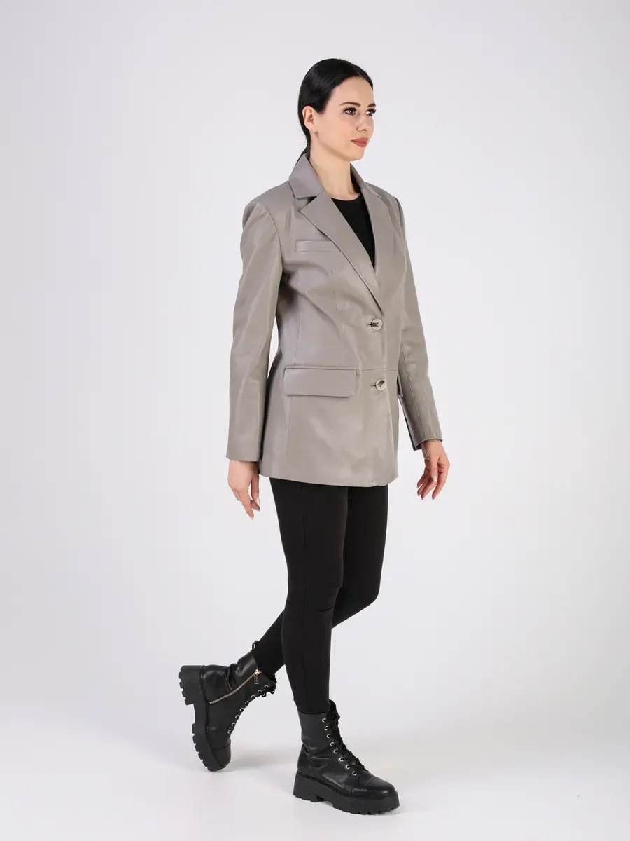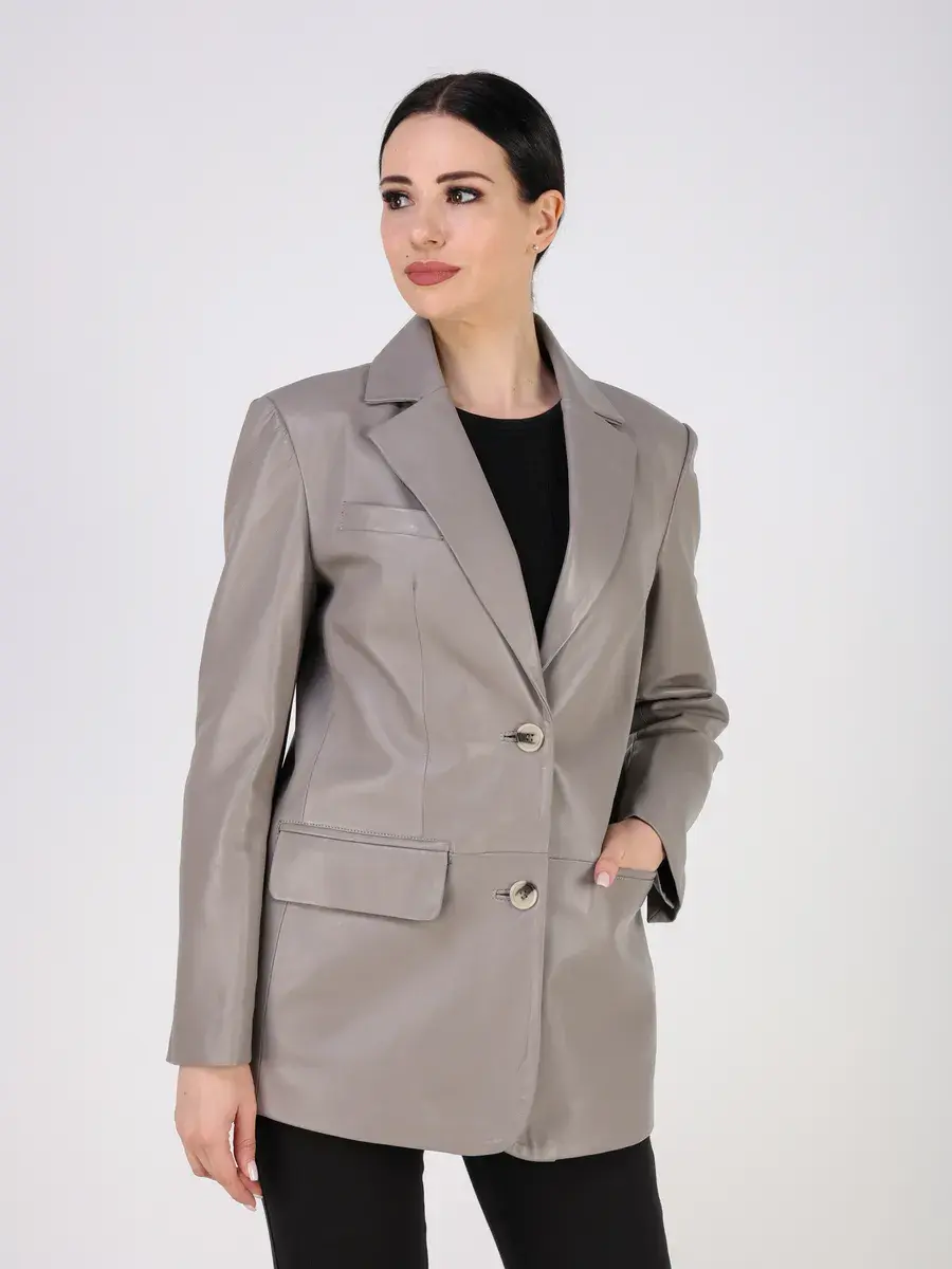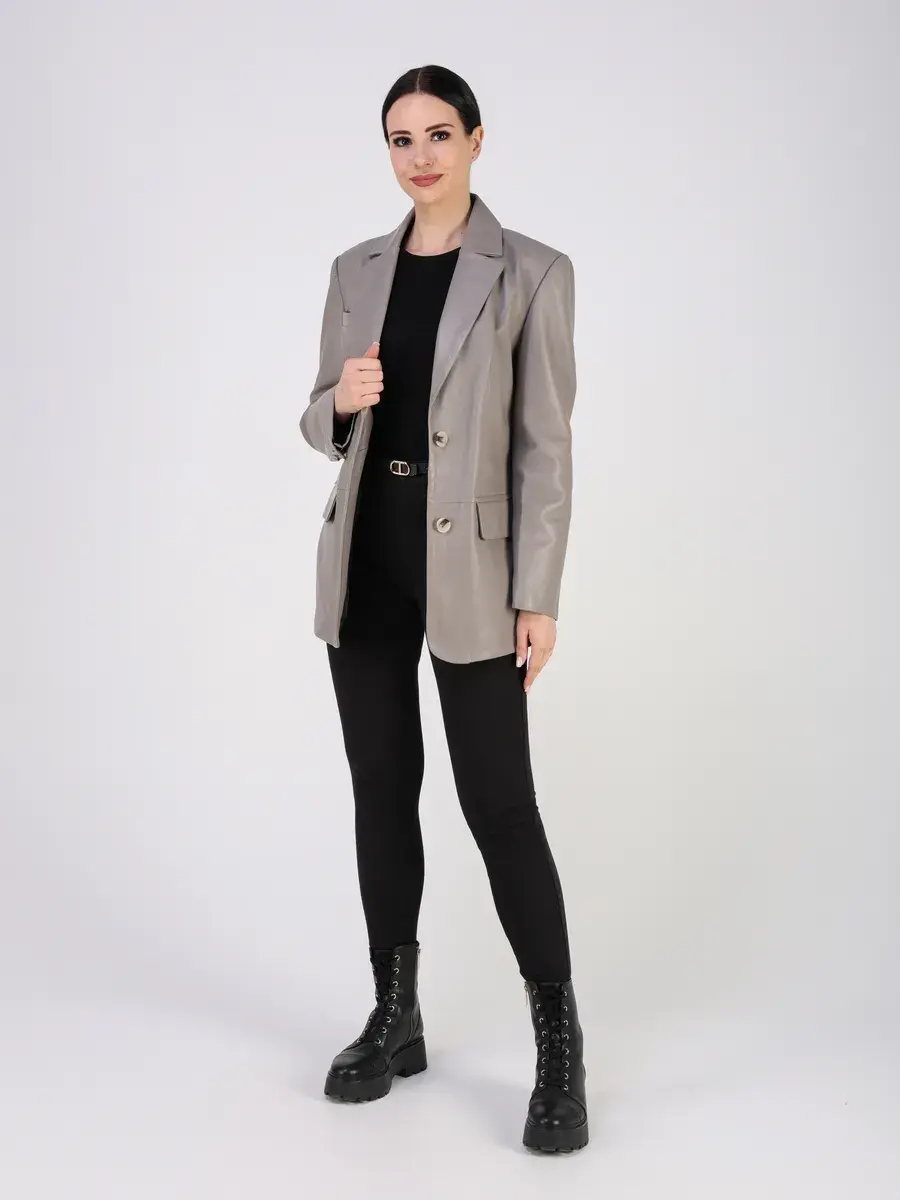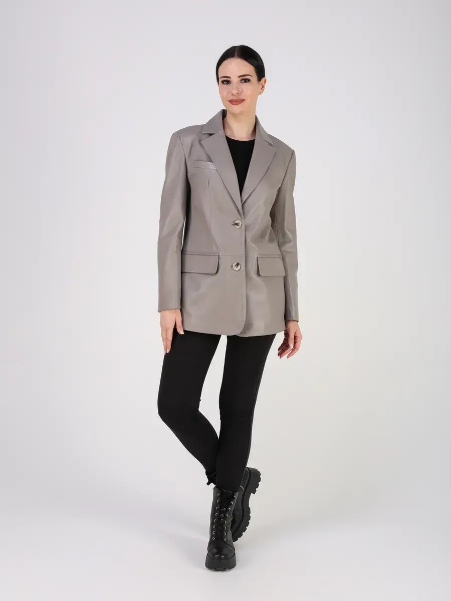Кожаный пиджак женский оверсайз, куртка женская летняя имеет длину по спинке 75 см., прекрасно подходить под классический и повседневный стиль одежды.