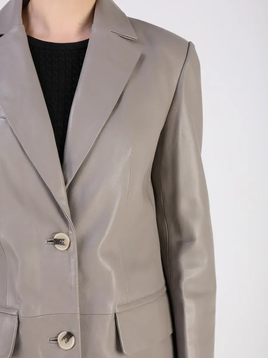 Классический дизайн, стильный английский воротник, гладкая кожа, шлица, застежка на пуговицах и карманы придают куртке уникальность и изысканность, идеально впишется в деловой стиль и дополнит модный образ женщины или девочки, независимо от возраста.