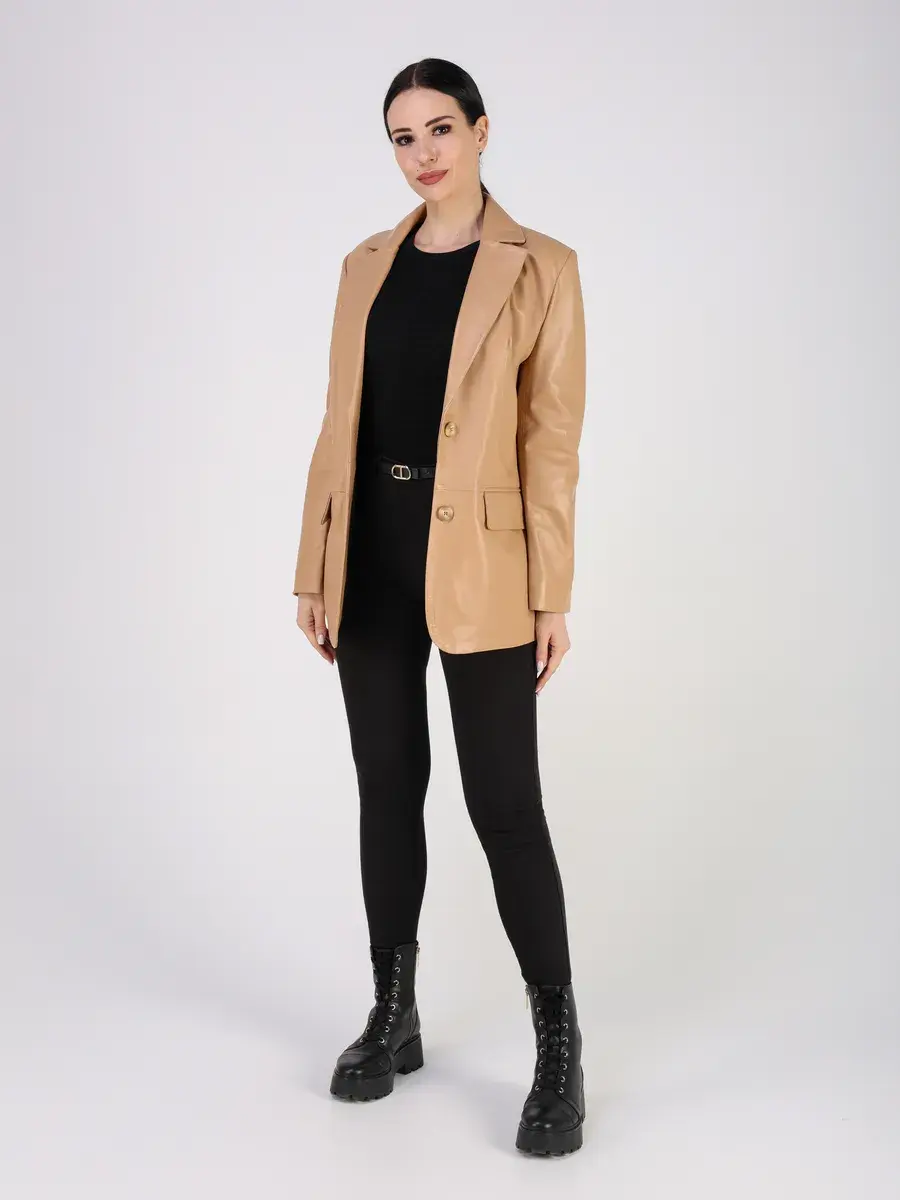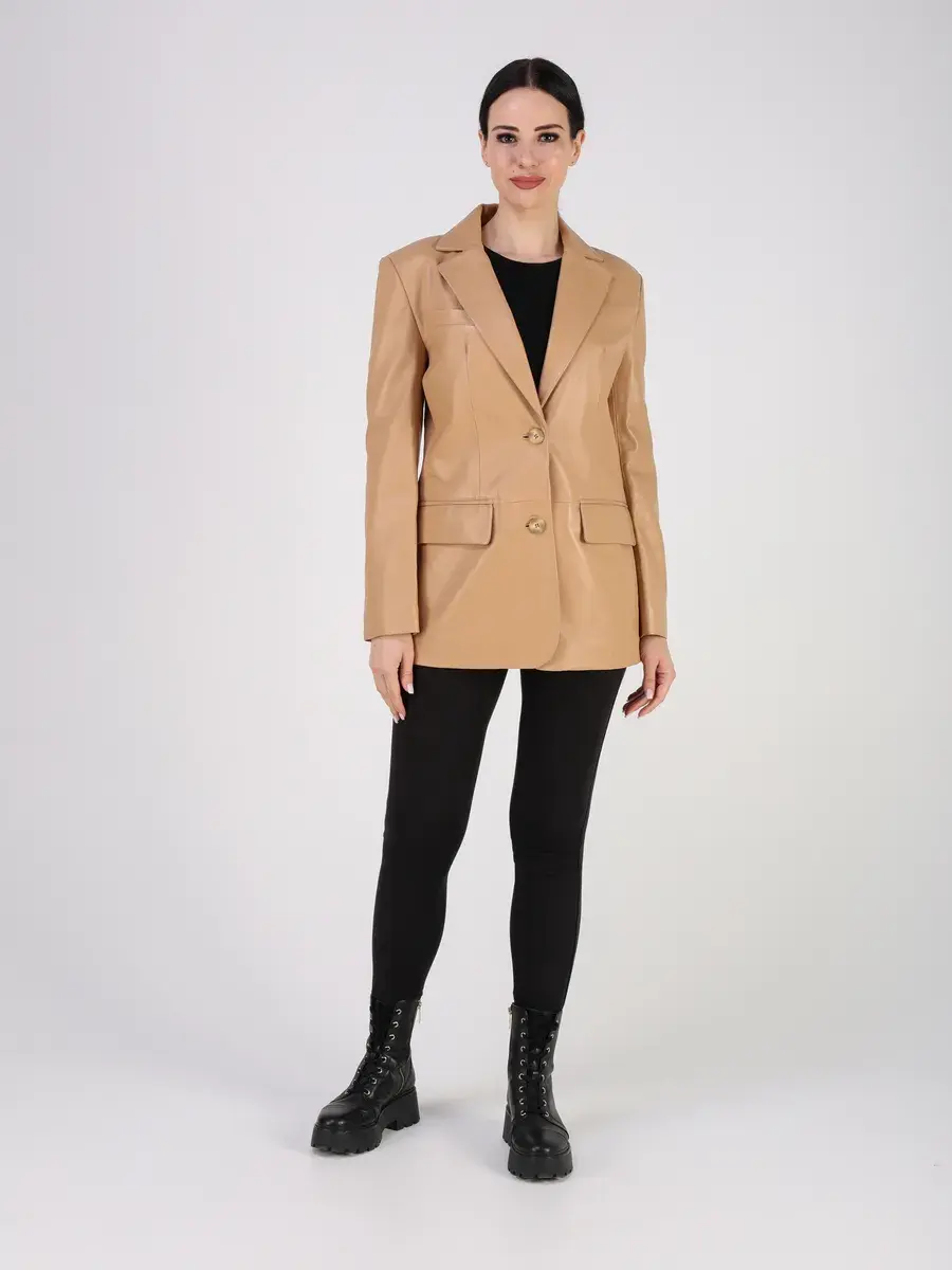 Кожаный пиджак женский оверсайз, куртка женская летняя имеет длину по спинке 75 см., прекрасно подходить под классический и повседневный стиль одежды.