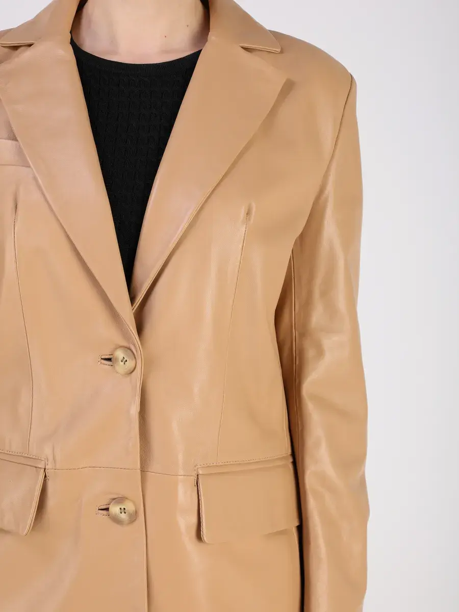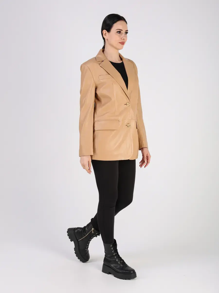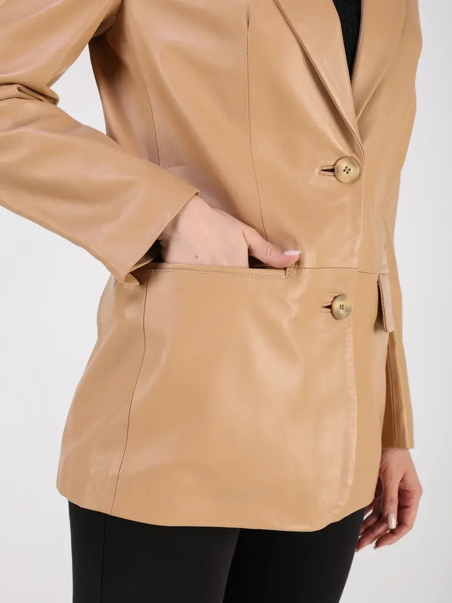 Классический дизайн, стильный английский воротник, гладкая кожа, шлица, застежка на пуговицах и карманы придают куртке уникальность и изысканность, идеально впишется в деловой стиль и дополнит модный образ женщины или девочки, независимо от возраста.