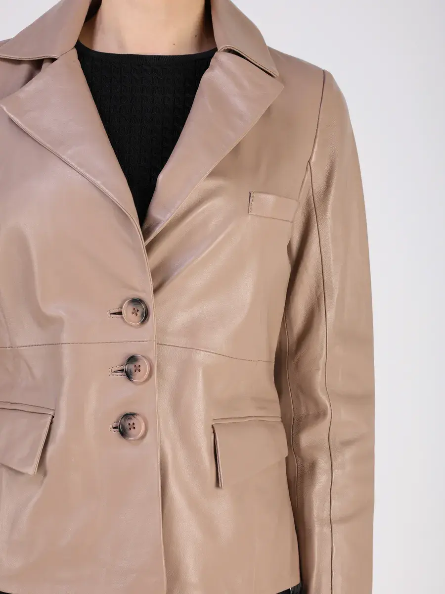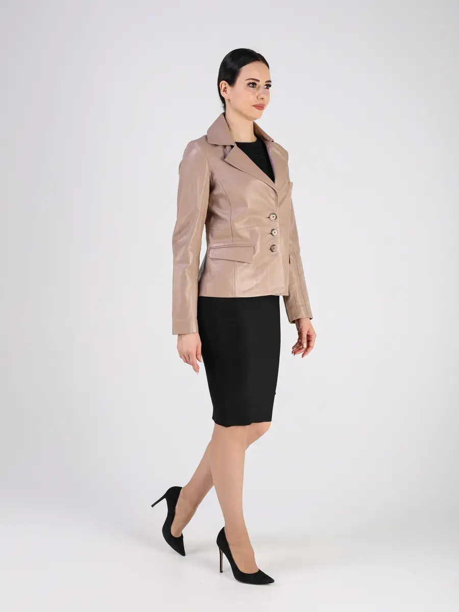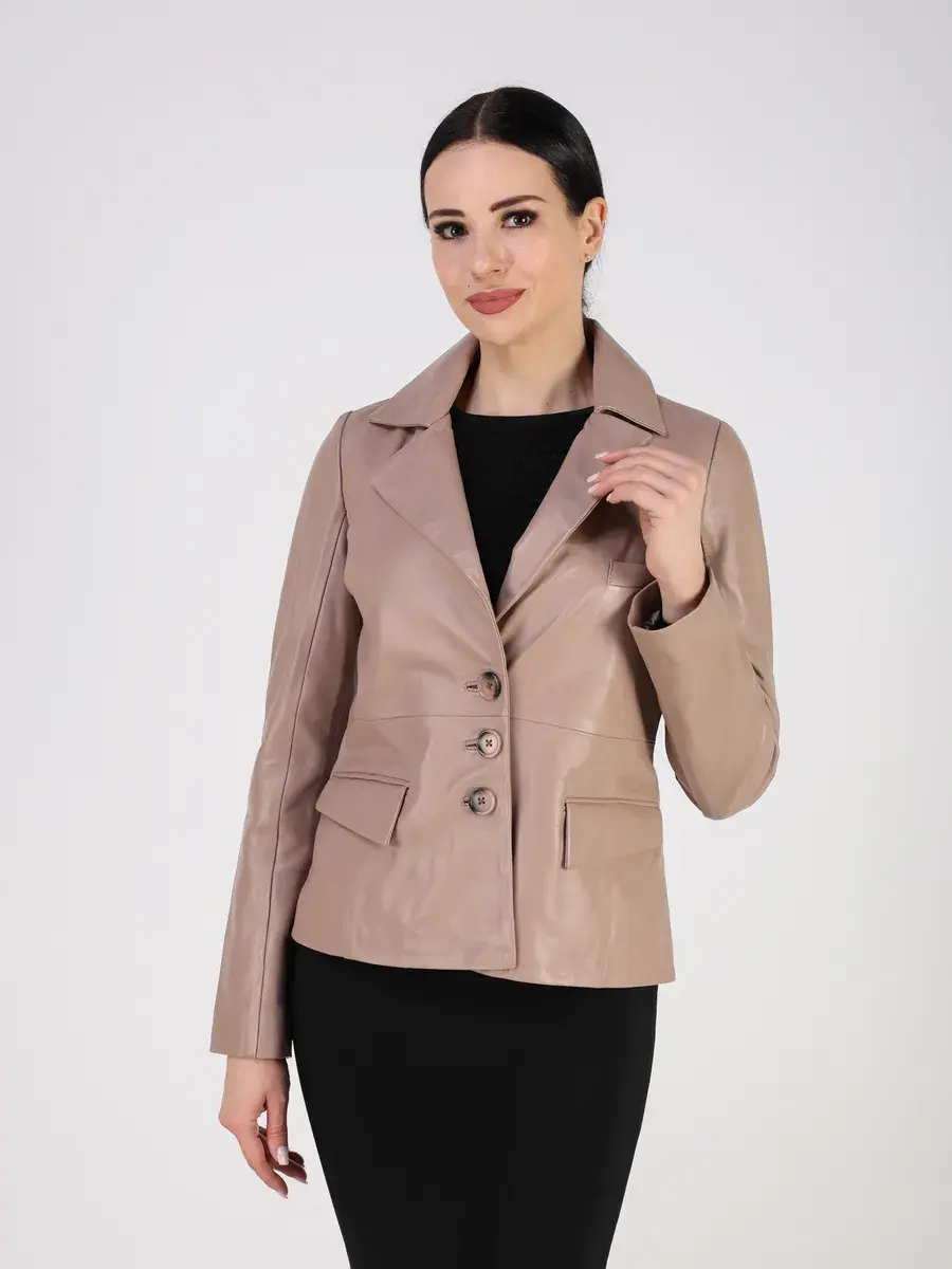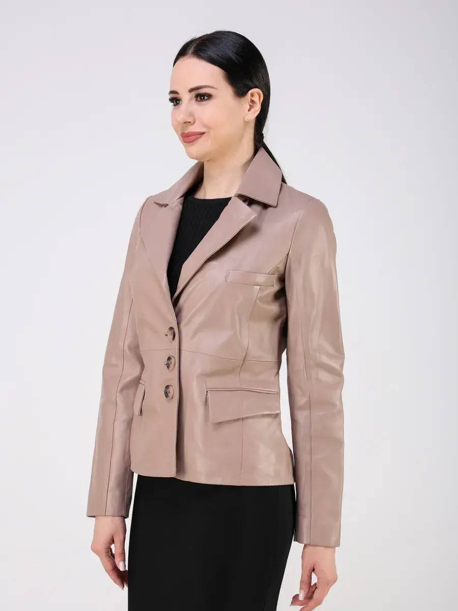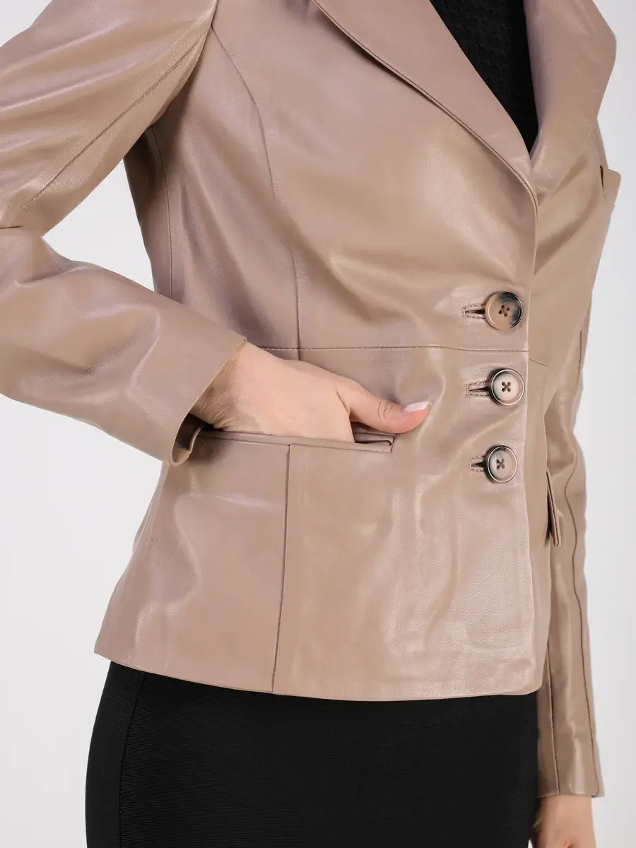 Кожаный пиджак женский приталенный,