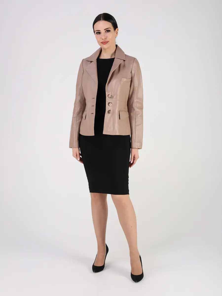 Классический дизайн, стильный английский воротник, гладкая кожа, застежка на пуговицах и карманы придают куртке уникальность и изысканность, идеально впишется в деловой стиль и дополнит модный образ женщины или девочки, независимо от возраста.