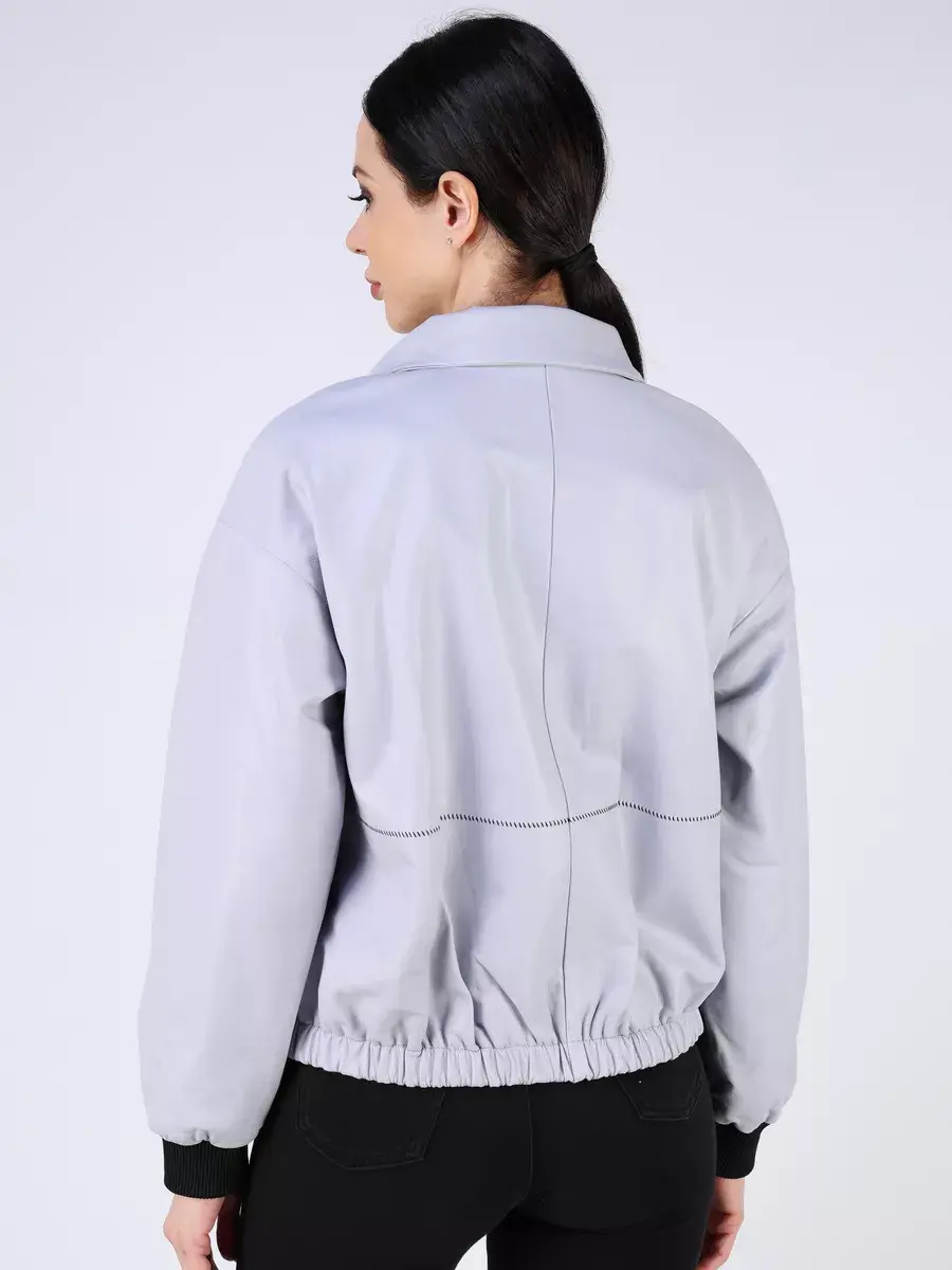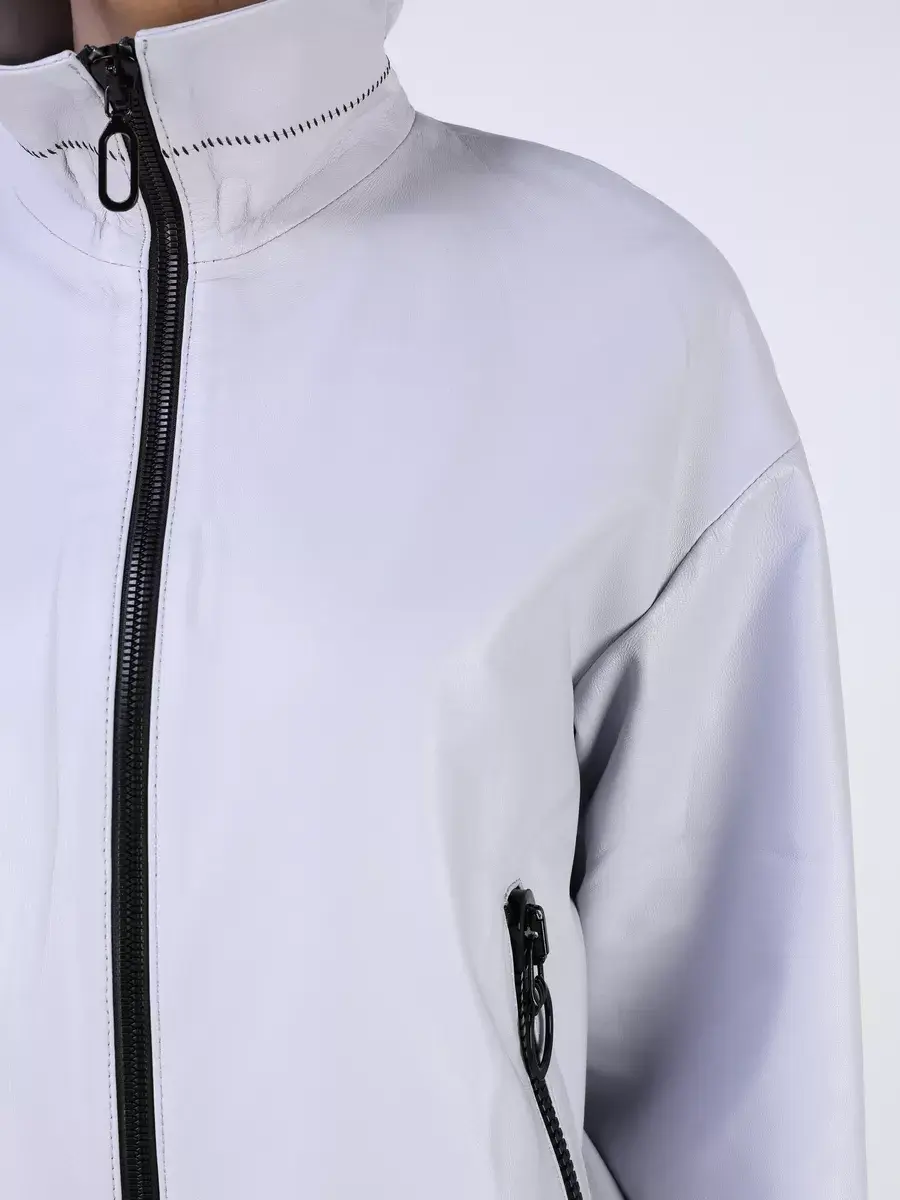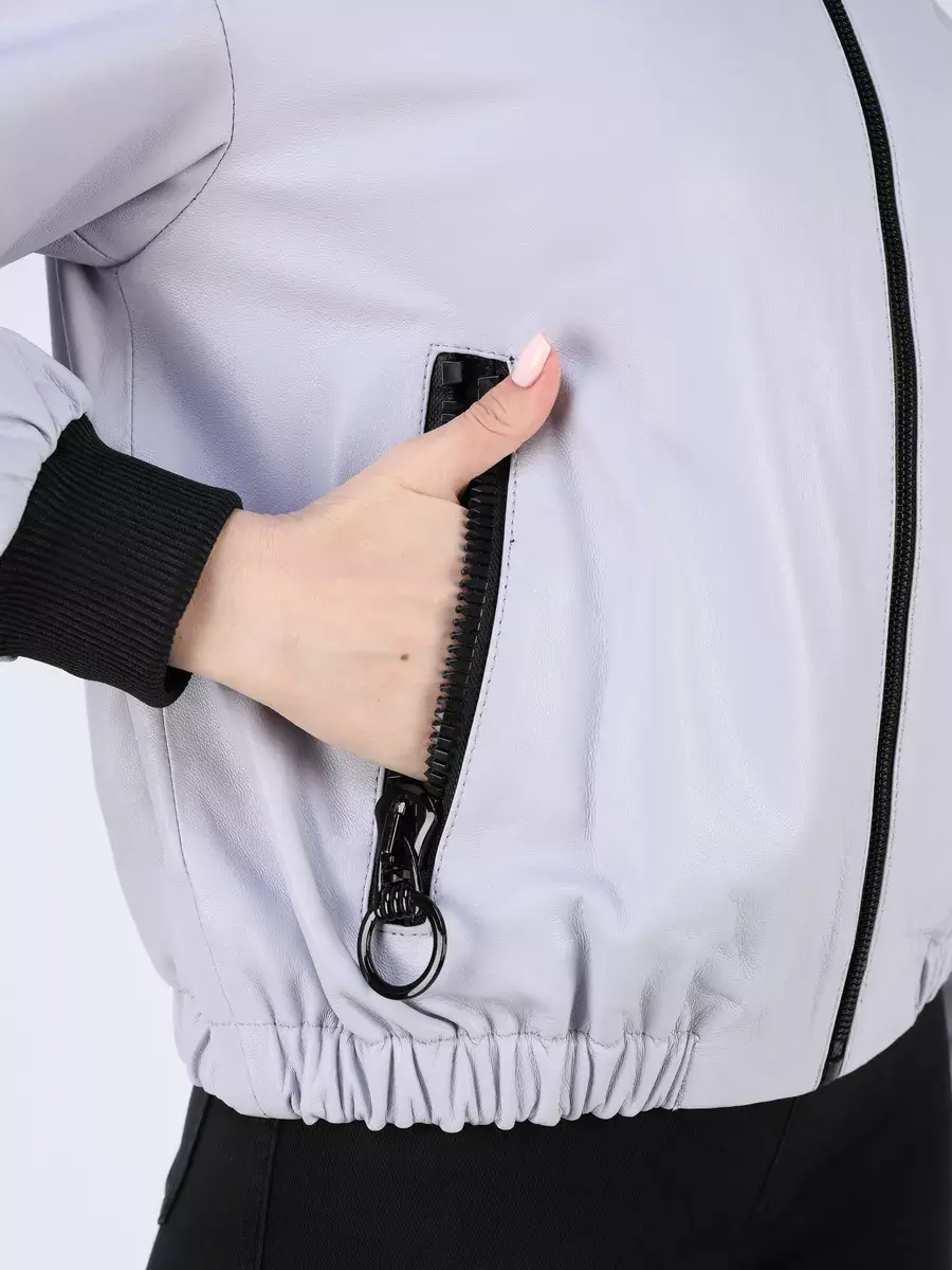 Каждая деталь этой кожаной куртки выполнена с особым вниманием к качеству материалов. Изысканный материал, ровные швы, спущенная линия плеча, прорезные карманы на молниях, эластичный - утягивающий низ и фурнитура добавляют акценты стиля и функциональности, делают эту короткую женскую куртку универсальным элементом гардероба, который подходит практически под любой стиль, деловой или повседневный. Высокий и объемный воротник стойка и эластичный подол обеспечивает неповторимый вид, а трикотажные манжеты на рукавах дополняют оригинальный стиль.