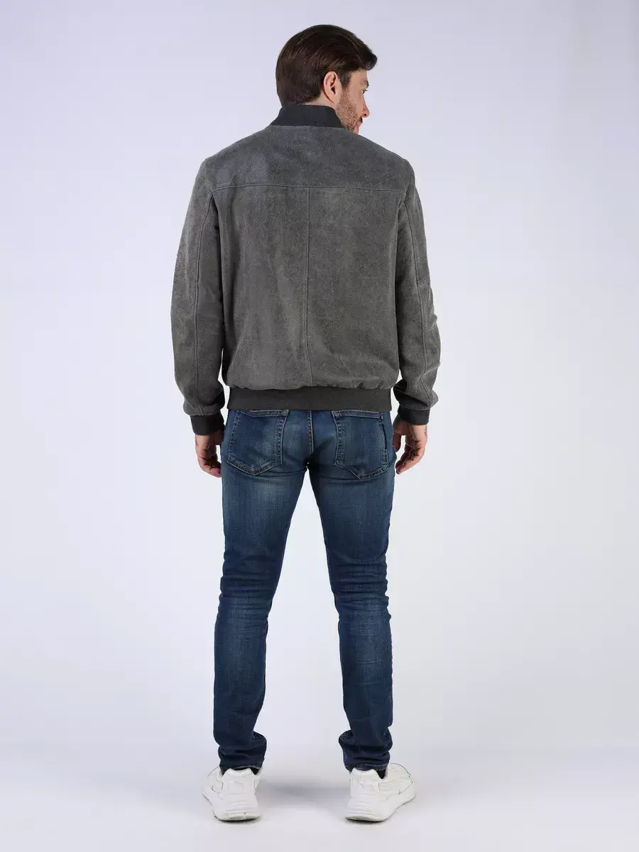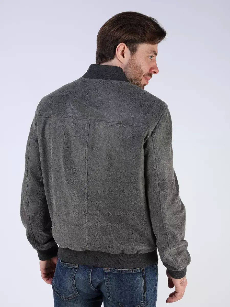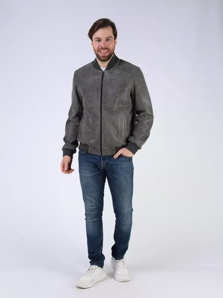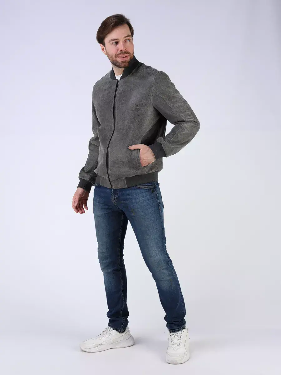 Стильная модель бомбер мужской куртки выполнена из мягкой натуральной кожи ягненка выделки нуплин, то же, что и крэк, но поверхность менее шероховатая (с винтаж-эффектом) - с эффектом старения и потертости.