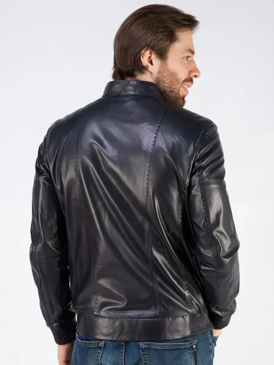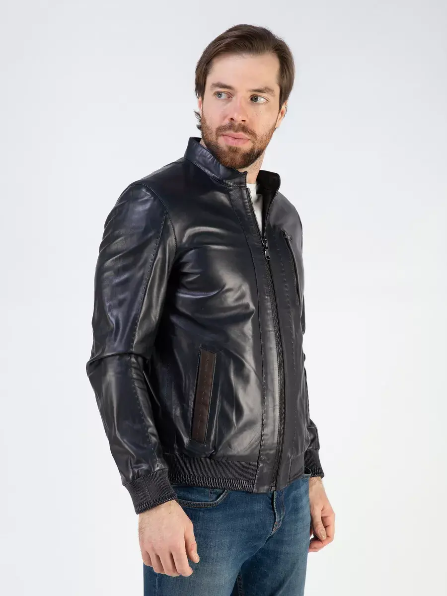 Куртка из натуральной кожи имеет длину по спинке 70 см., эластичные кожаные манжеты и низ, которая обеспечивает идеальное соотношение между длиной и защитой от холода, прекрасно подходить под классический и повседневный стиль одежды. Застежка на молнии и прорезные карманы добавляют функциональности и практичности в использовании данной куртки. Стильный воротник стойка, карман на груди, вставки и декоративная строчка с декоративными манжетами придают куртке уникальность и изысканность, идеально впишется в деловой и повседневный стиль и дополнит солидный образ мужчины или парня подростка независимо от возраста.