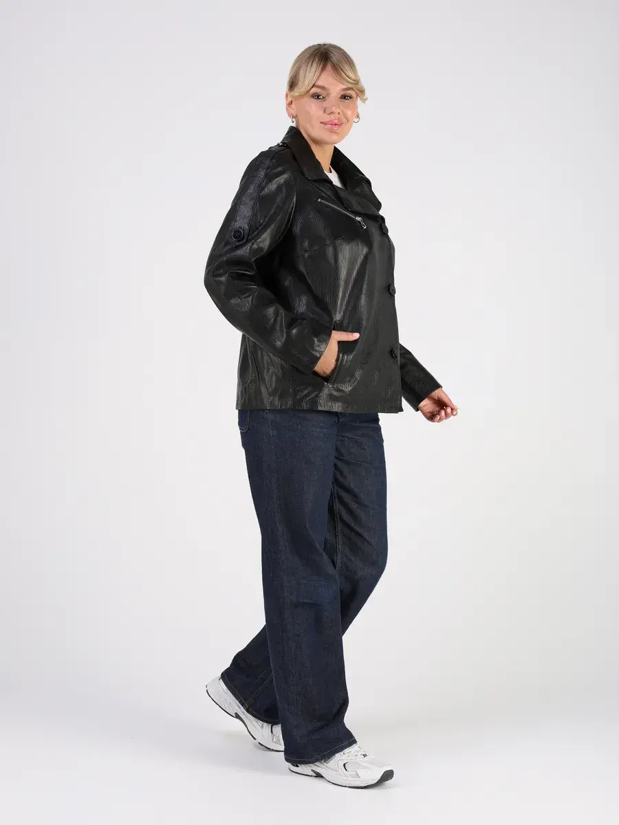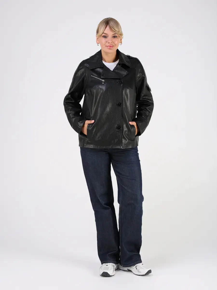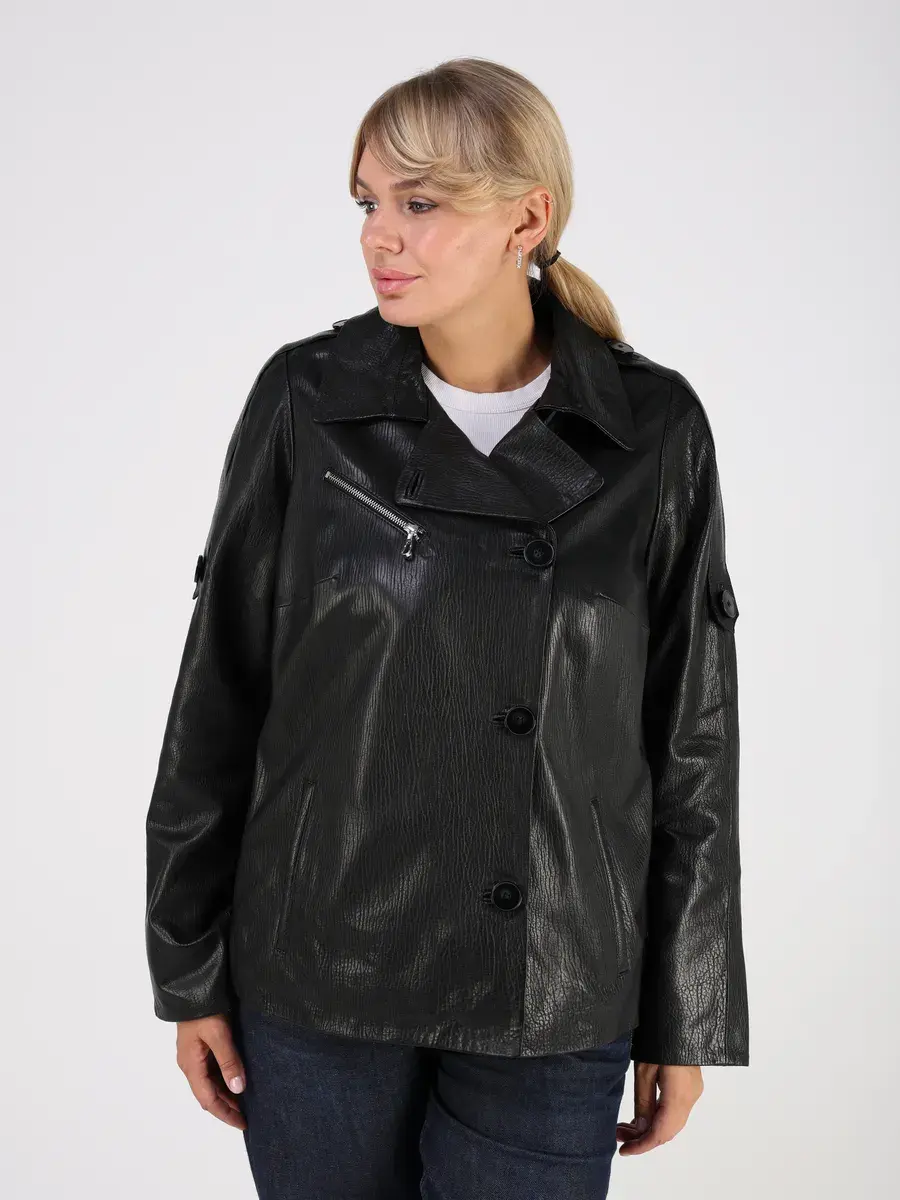 Каждая деталь этой кожаной куртки осень - весна выполнена с особым вниманием к качеству. Прорезные карманы, фактурная кожа, эполеты и карман на груди добавляют акценты стиля и функциональности, делают эту короткую женскую куртку универсальным элементом гардероба, который подходит практически под любой стиль, деловой или повседневный. Свободный оверсайз крой, втачной рукав и ассиметричная застежка на пуговицах обеспечивают этой демисезонной куртке комфорт и свободу движений.