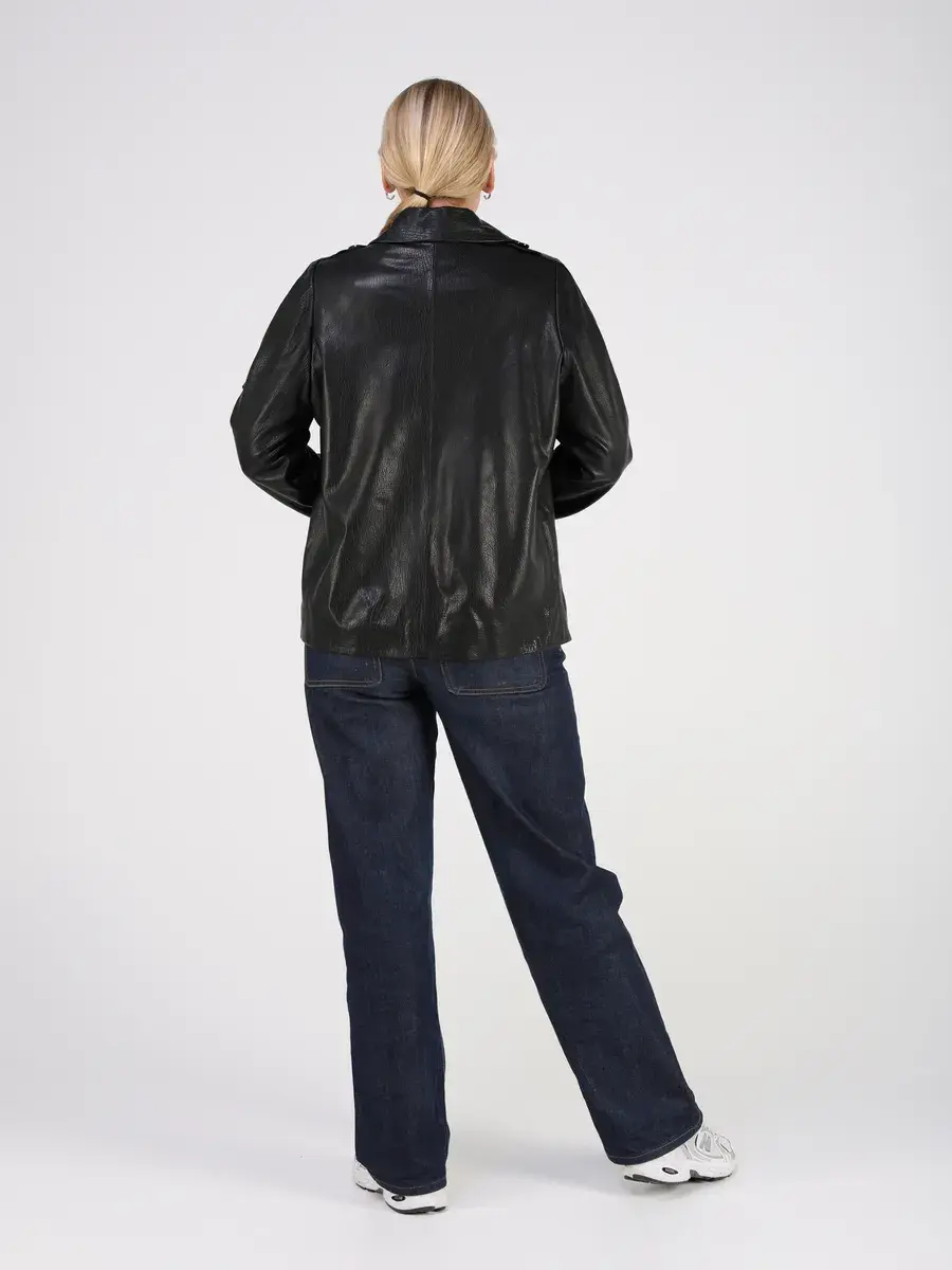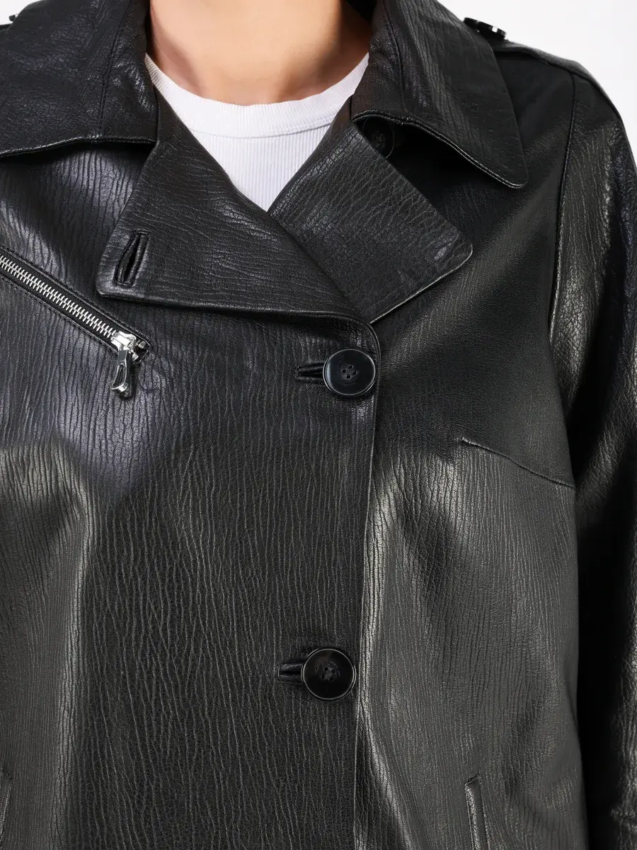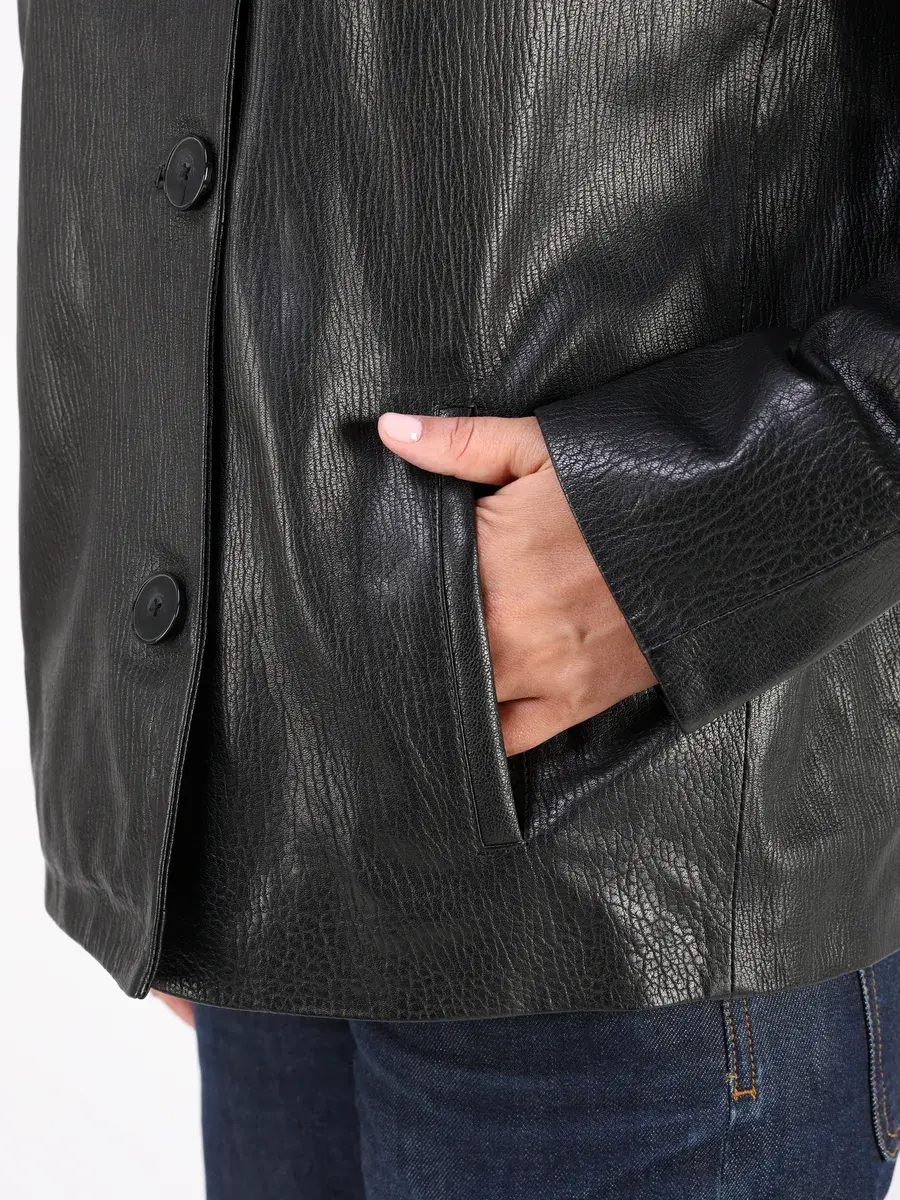 Каждая деталь этой кожаной куртки осень - весна выполнена с особым вниманием к качеству. Прорезные карманы, фактурная кожа, эполеты и карман на груди добавляют акценты стиля и функциональности, делают эту короткую женскую куртку универсальным элементом гардероба, который подходит практически под любой стиль, деловой или повседневный. Свободный оверсайз крой, втачной рукав и ассиметричная застежка на пуговицах обеспечивают этой демисезонной куртке комфорт и свободу движений.