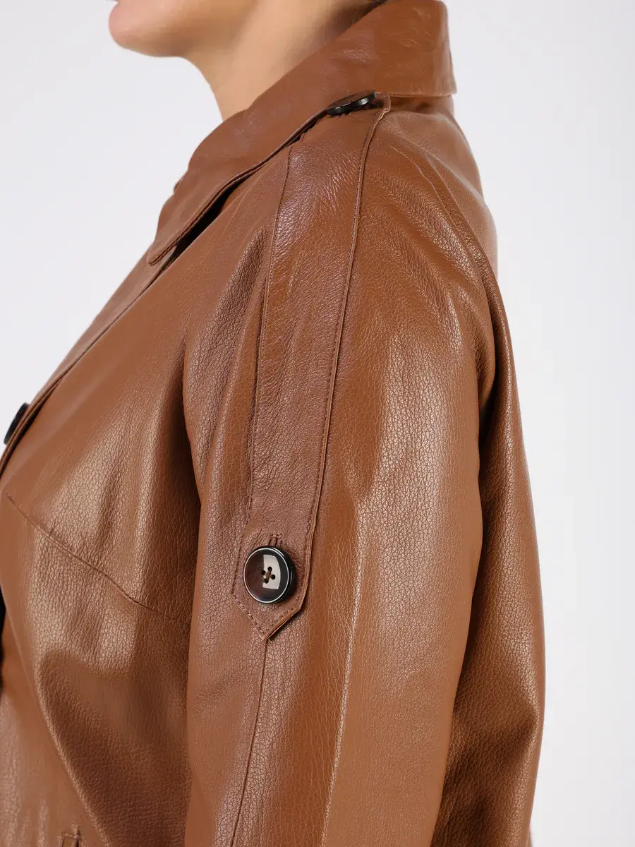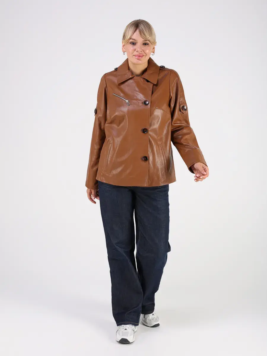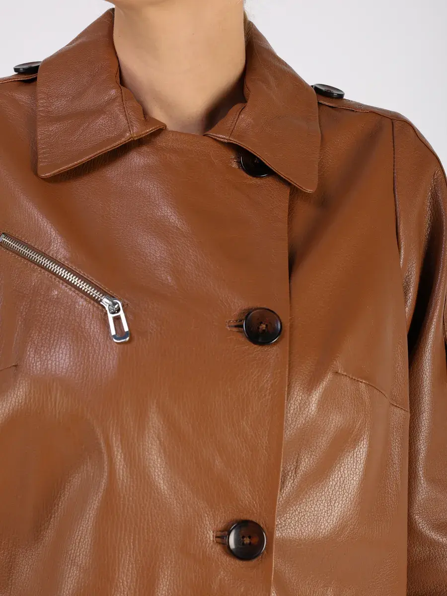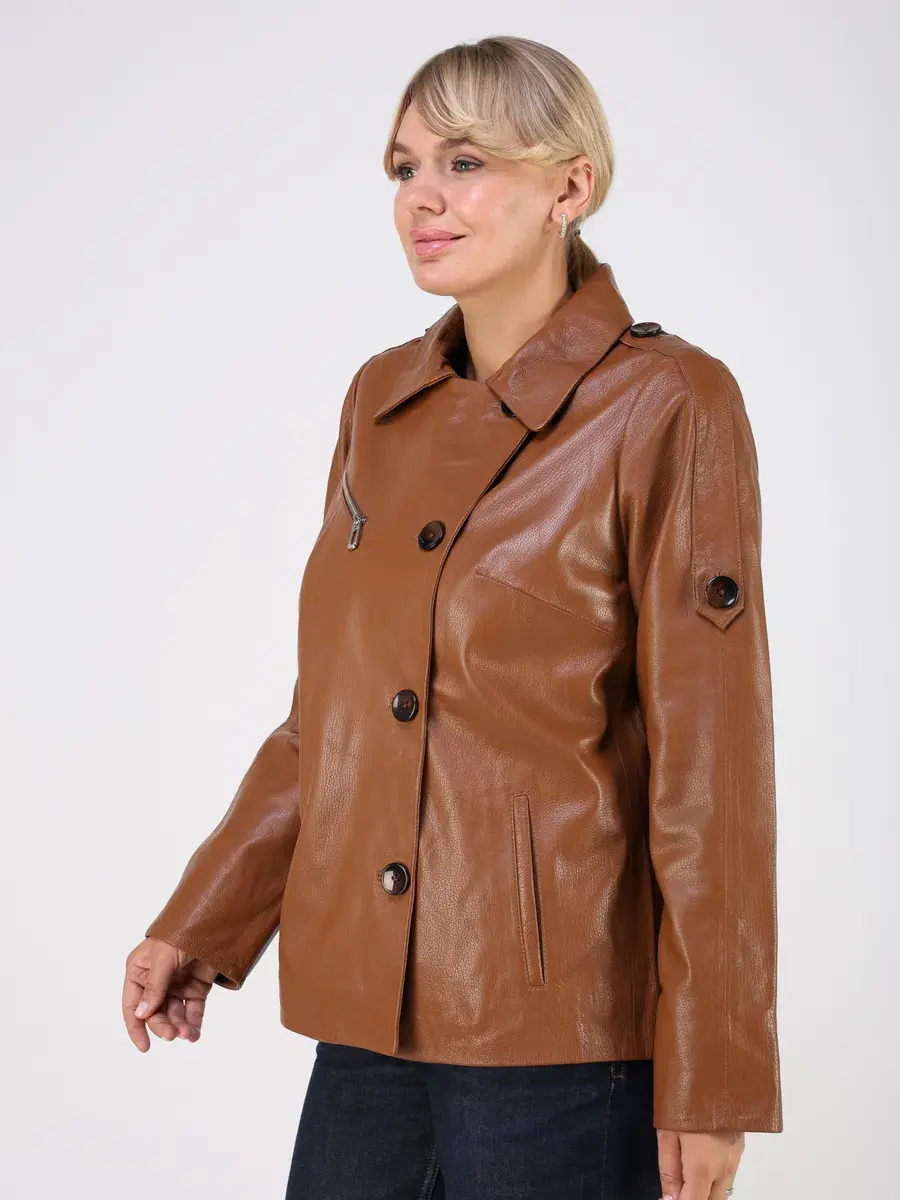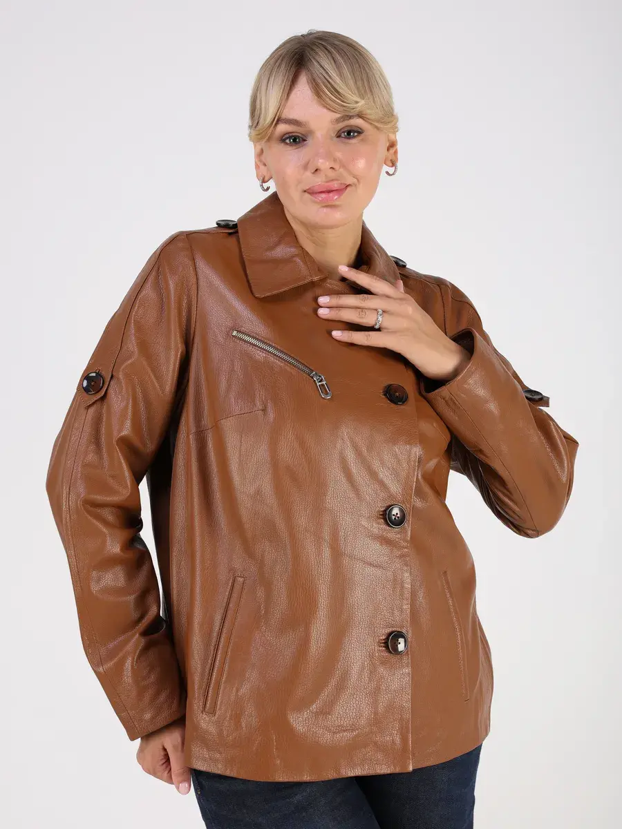 Каждая деталь этой кожаной куртки осень - весна выполнена с особым вниманием к качеству. Прорезные карманы, фактурная кожа, эполеты и карман на груди добавляют акценты стиля и функциональности, делают эту короткую женскую куртку универсальным элементом гардероба, который подходит практически под любой стиль, деловой или повседневный. Свободный оверсайз крой, втачной рукав и ассиметричная застежка на пуговицах обеспечивают этой демисезонной куртке комфорт и свободу движений.