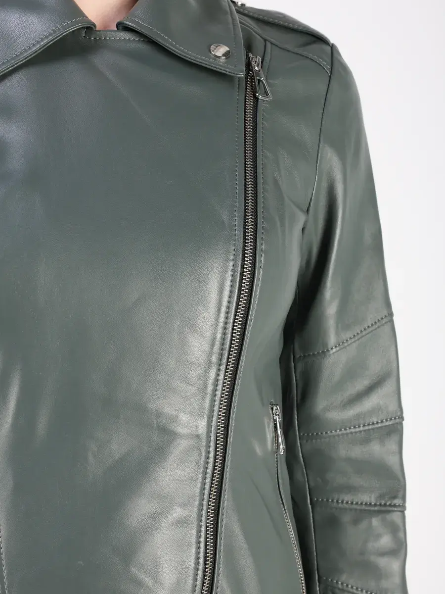 Каждая деталь этой кожаной куртки выполнена с особым вниманием к качеству. Прорезные карманы на молнии, декоративный карман, молнии на рукавах, эполеты и фурнитура добавляют акценты стиля и функциональности, делают эту женскую куртку универсальным элементом гардероба, который подходит практически под любой стиль, деловой или повседневный. Удлиненный и приталенный крой и застежка на молнии обеспечивают этой демисезонной куртке косухе комфорт и свободу движений.