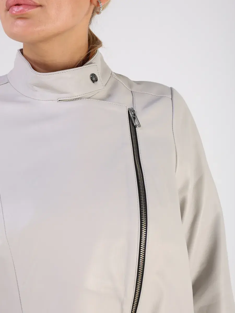 Каждая деталь этой кожаной куртки осень - весна выполнена с особым вниманием к качеству. Ровные швы, прорезные карманы на молнии и стойка воротник с хлястиком добавляют акценты стиля и функциональности, делают эту короткую женскую куртку универсальным элементом гардероба, который подходит практически под любой стиль, деловой или повседневный. Свободный оверсайз крой, втачной рукав обеспечивают этой демисезонной куртке, косухе комфорт и свободу движений.