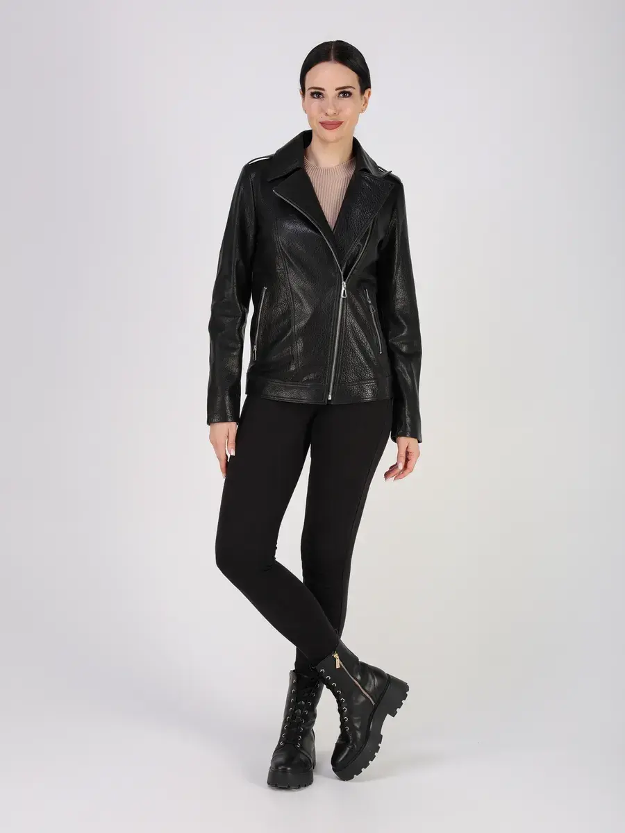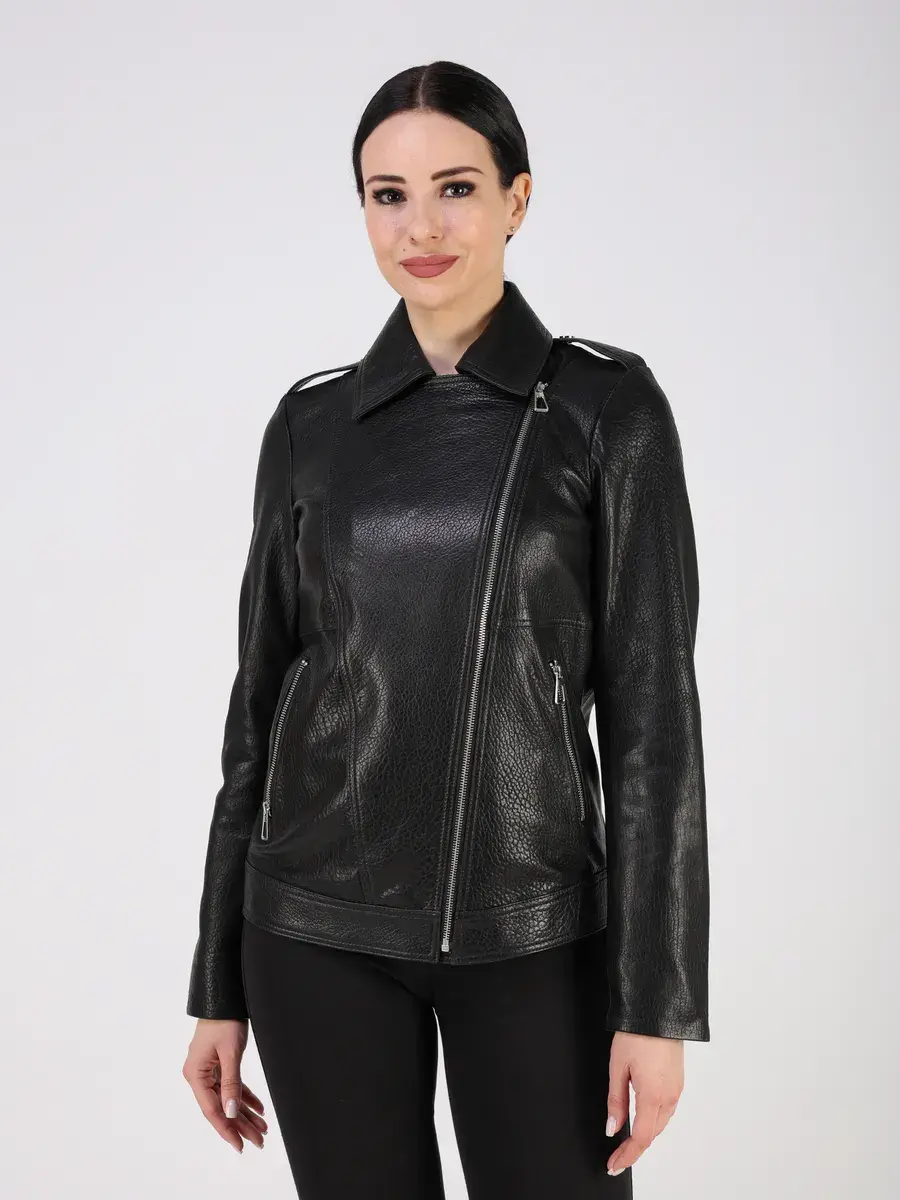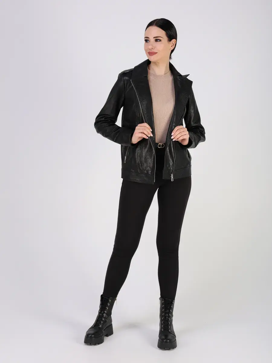 Стильная кожаная куртка косуха женская укороченная из натуральной кожи подчеркнет вашу индивидуальность.
