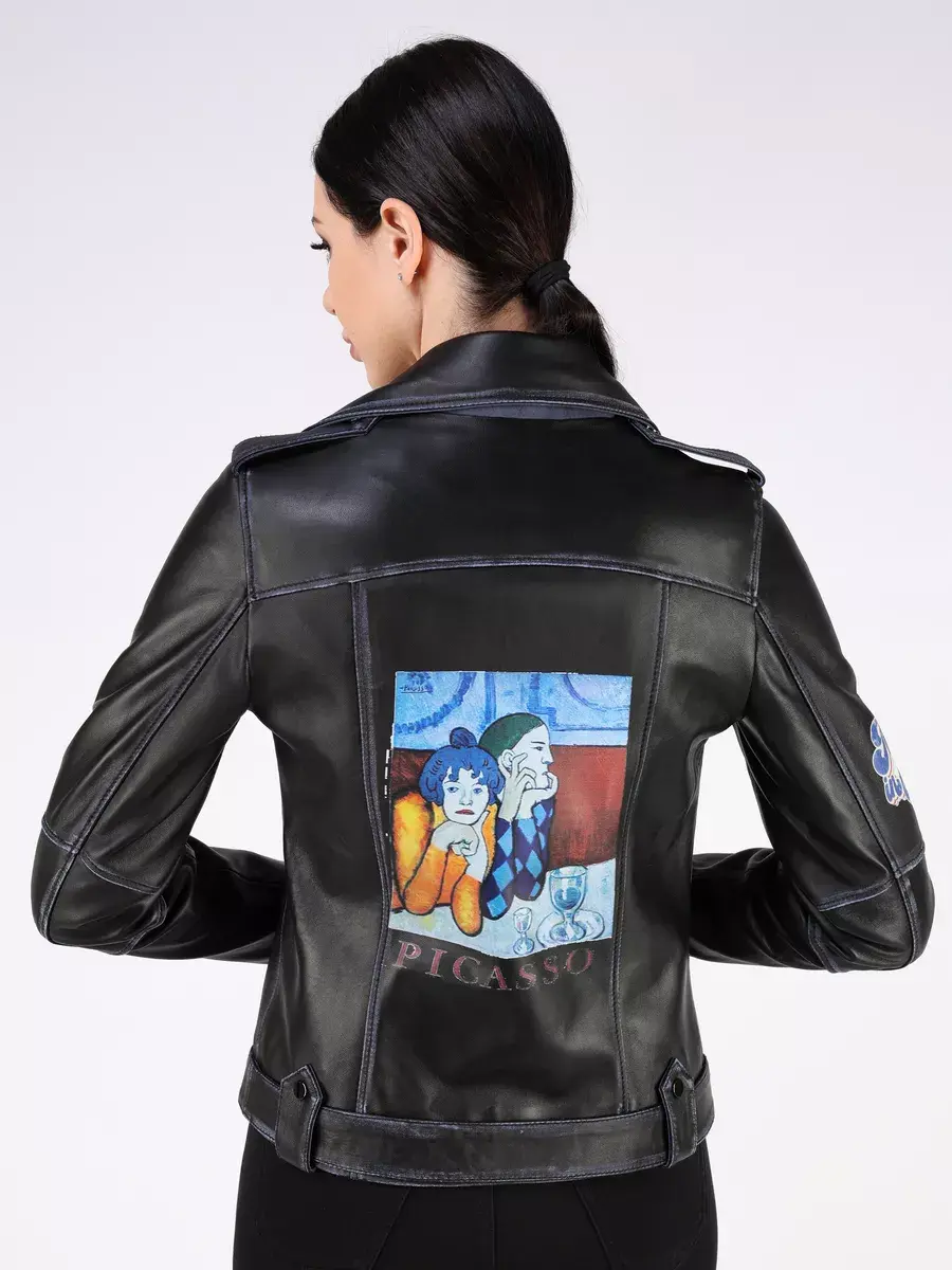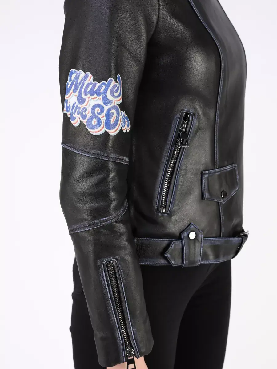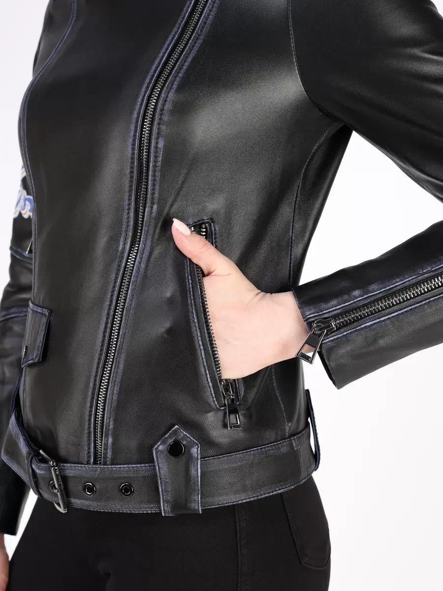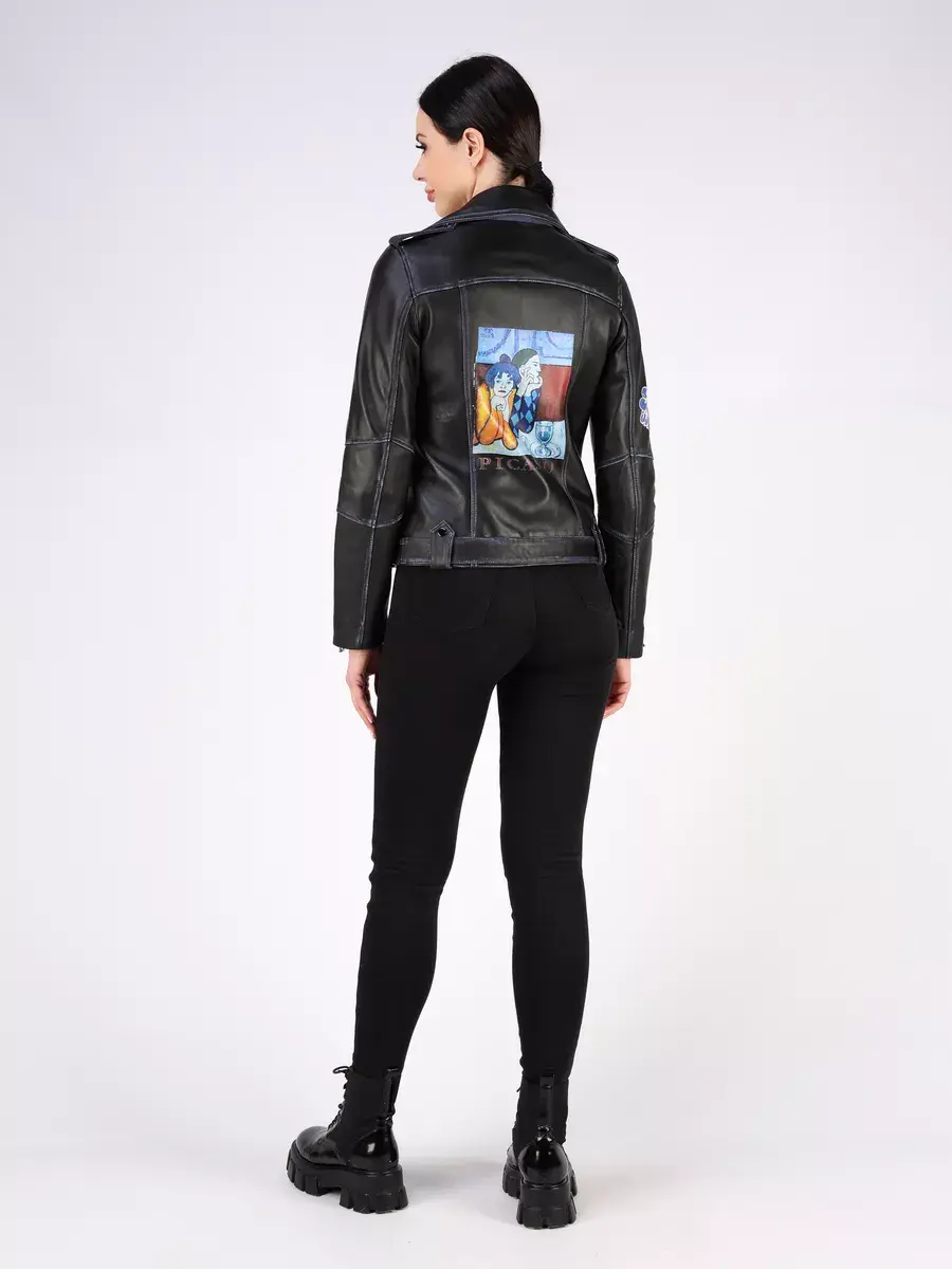 Стильная кожаная куртка косуха женская короткая из натуральной кожи с принтом подчеркнет вашу индивидуальность. Данная модель куртки, косухи выполнена из премиальной кожи ягнёнка, которая отличается высокой прочностью и долговечностью, сохраняя при этом свою мягкость и эластичность в любое время года, осенью и весной. Вы будете выделяться из толпы и привлекать восхищенные взгляды.