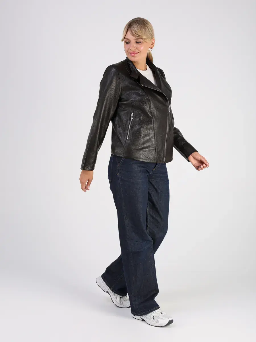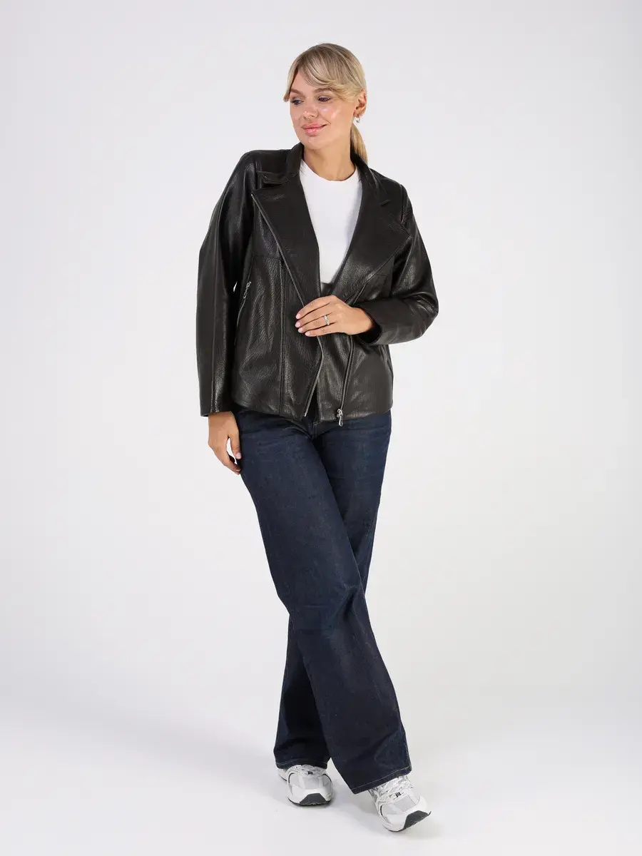 Стильная кожаная куртка косуха женская оверсайз из натуральной кожи подчеркнет вашу индивидуальность. Данная модель куртки, косухи выполнена из кожи ягнёнка, которая отличается высокой прочностью и долговечностью, сохраняя при этом свою мягкость и эластичность.