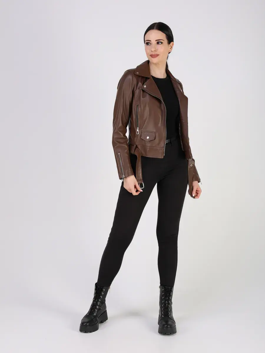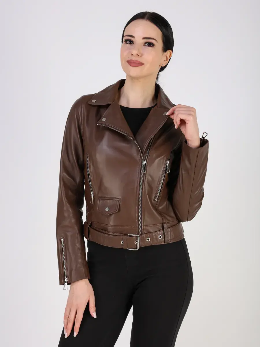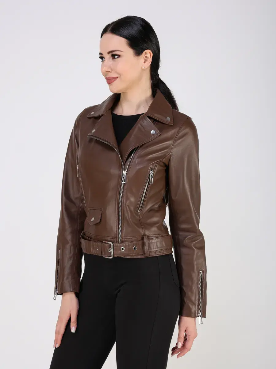 Стильная кожаная куртка косуха женская укороченная из натуральной кожи подчеркнет вашу индивидуальность.