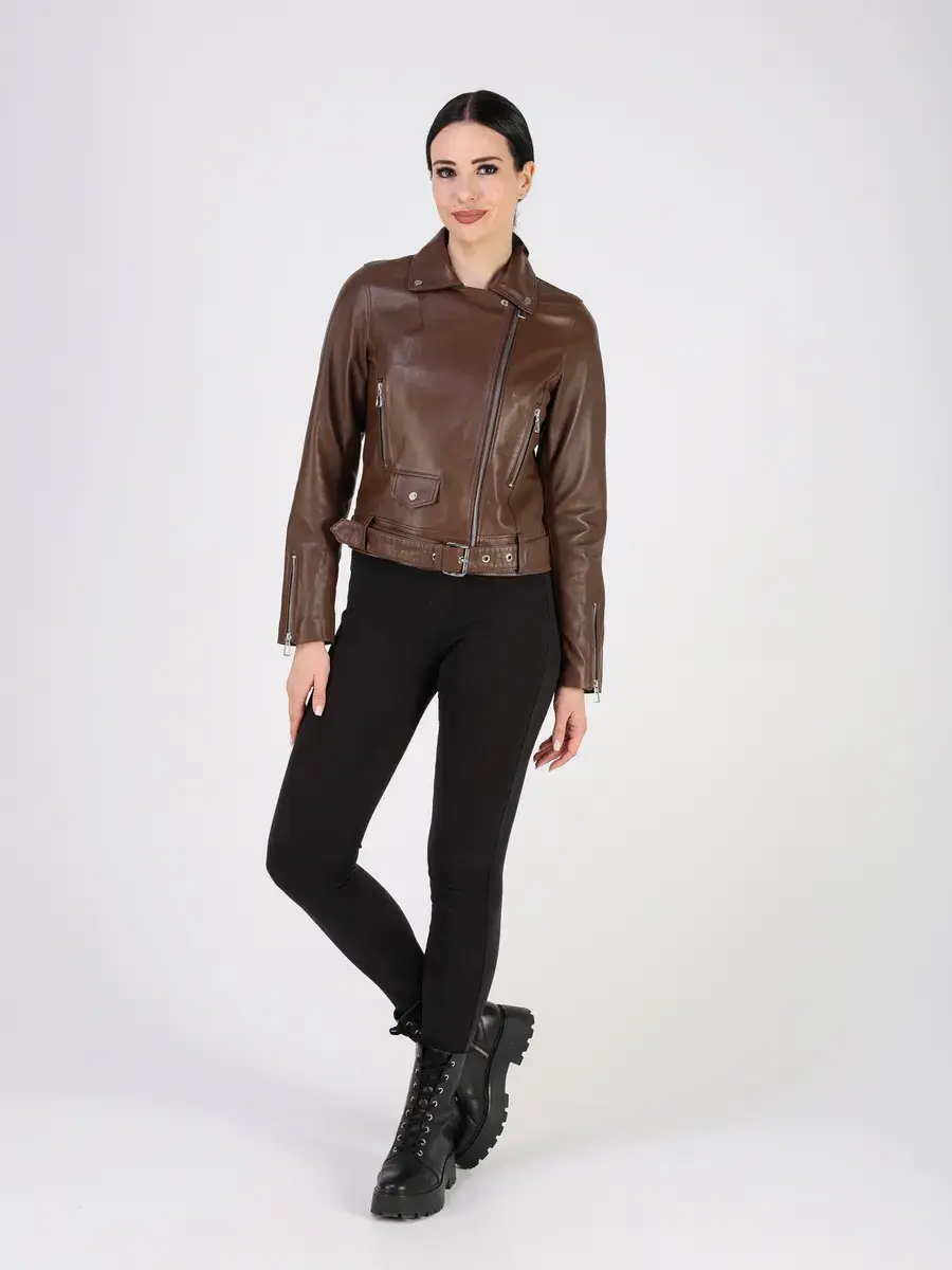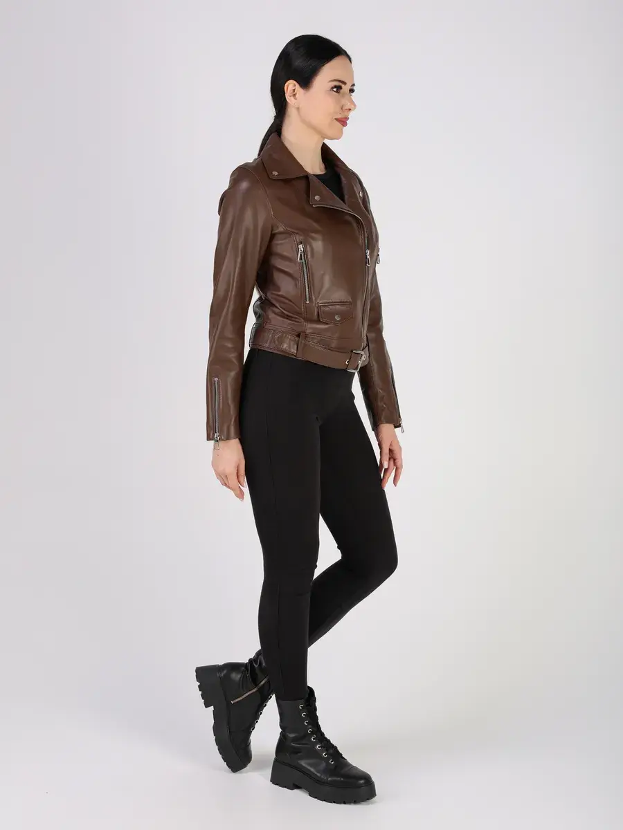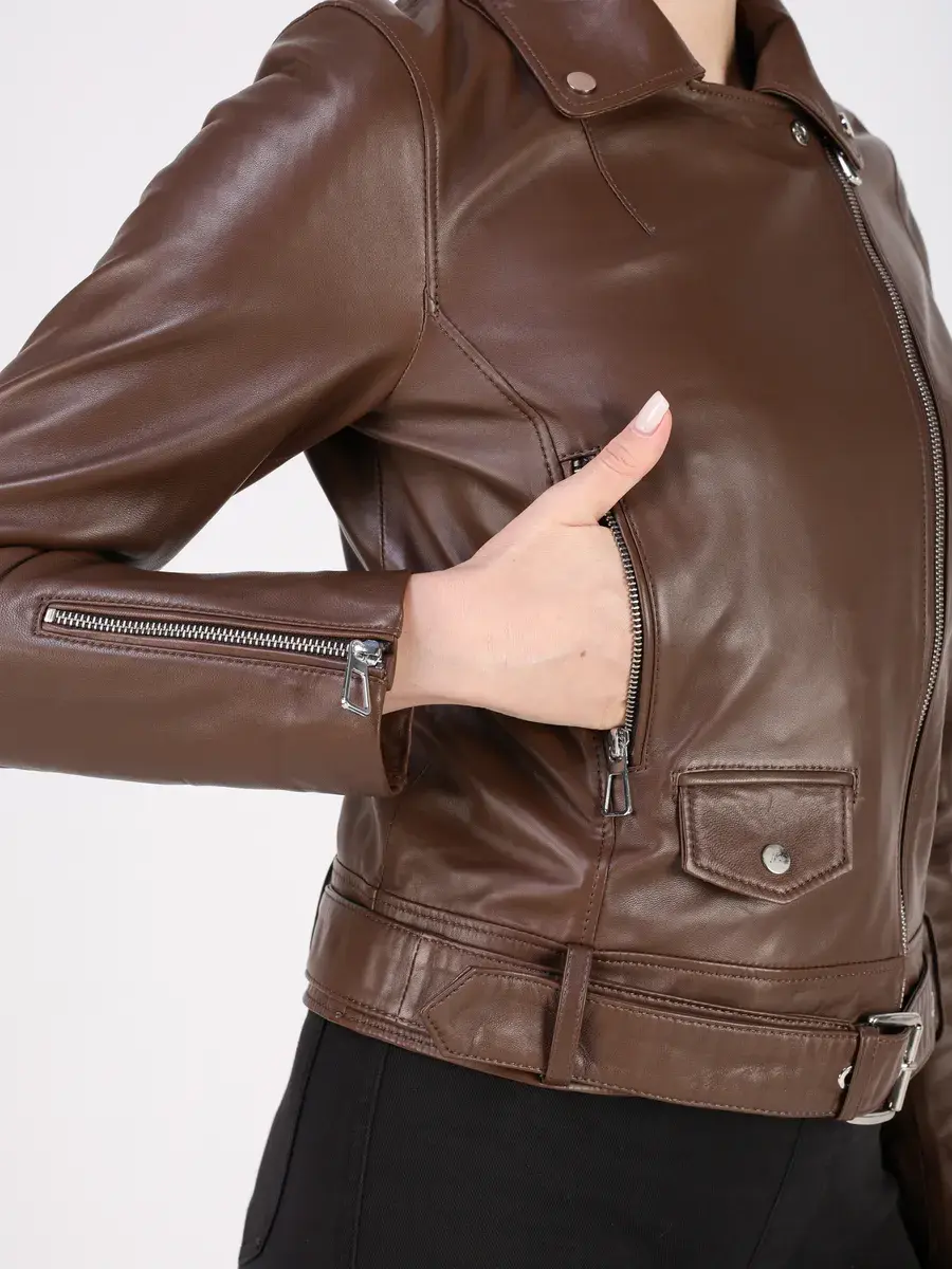 Стильная кожаная куртка косуха женская укороченная из натуральной кожи подчеркнет вашу индивидуальность.