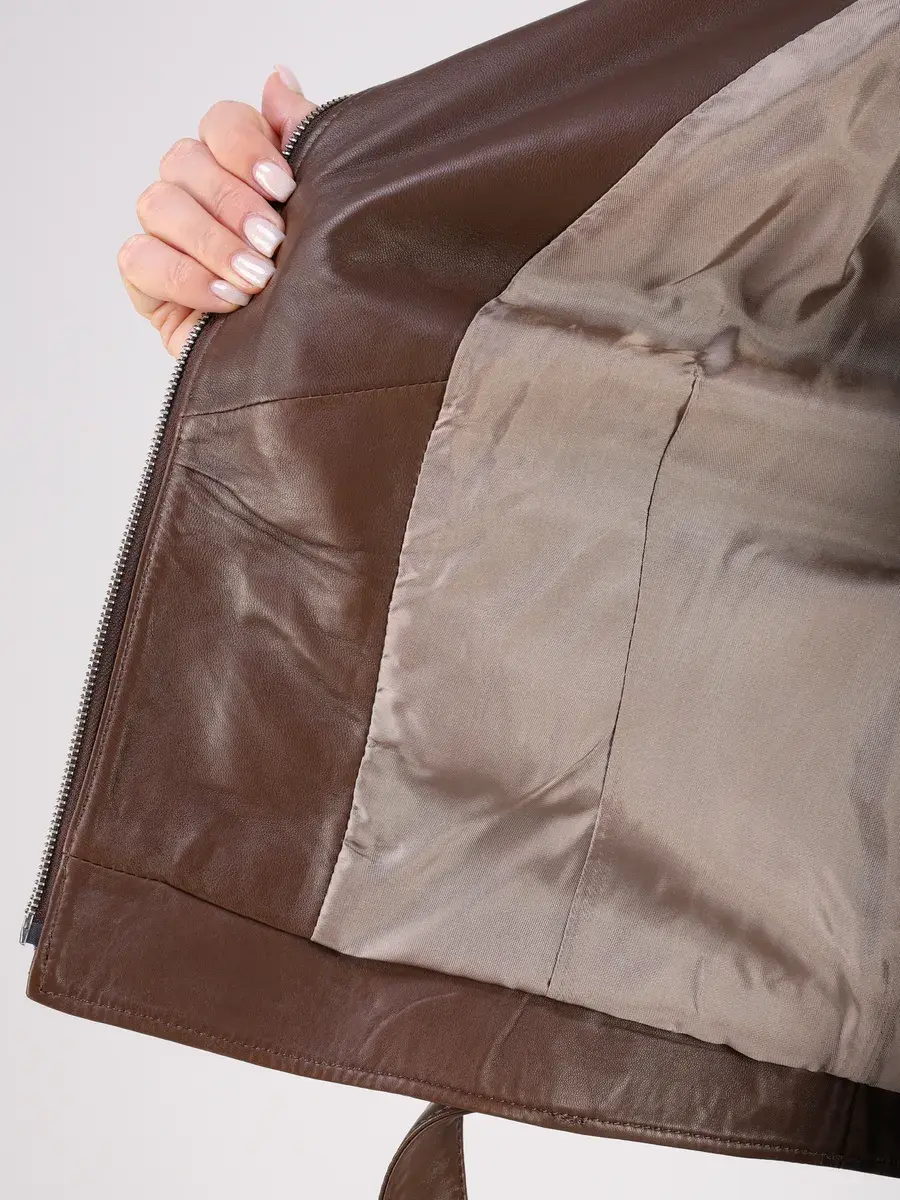 Каждая деталь этой кожаной куртки выполнена с особым вниманием к качеству. Прорезные карманы на молнии, декоративный карман, молнии на рукавах и фурнитура добавляют акценты стиля и функциональности, делают эту короткую женскую куртку универсальным элементом гардероба, который подходит практически под любой стиль, деловой или повседневный. Короткий и приталенный крой и застежка на молнии обеспечивают этой демисезонной куртке, косухе комфорт и свободу движений.