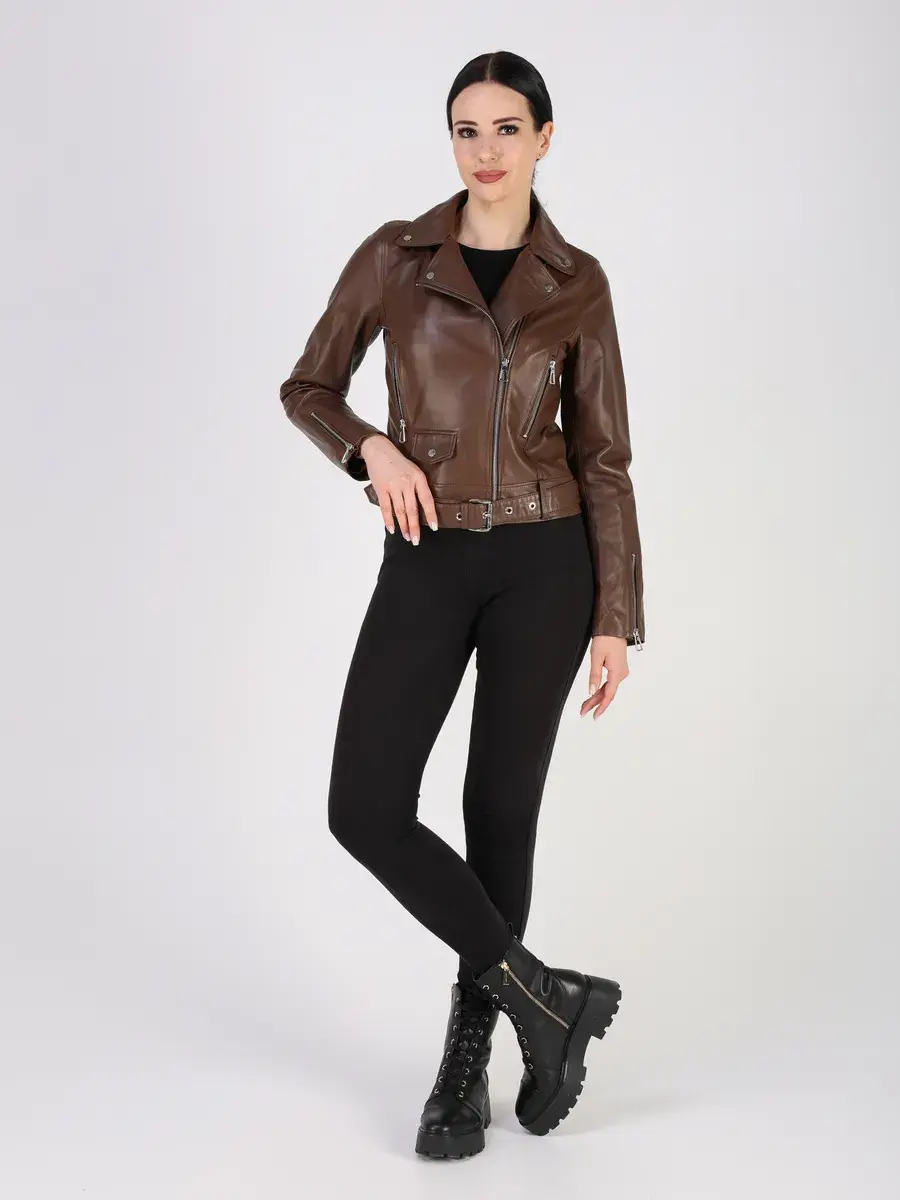 Классическая кожаная куртка женская, косуха бренда Mondial - это прекрасный выбор демисезонной верхней одежды для модных девушек и женщин!
