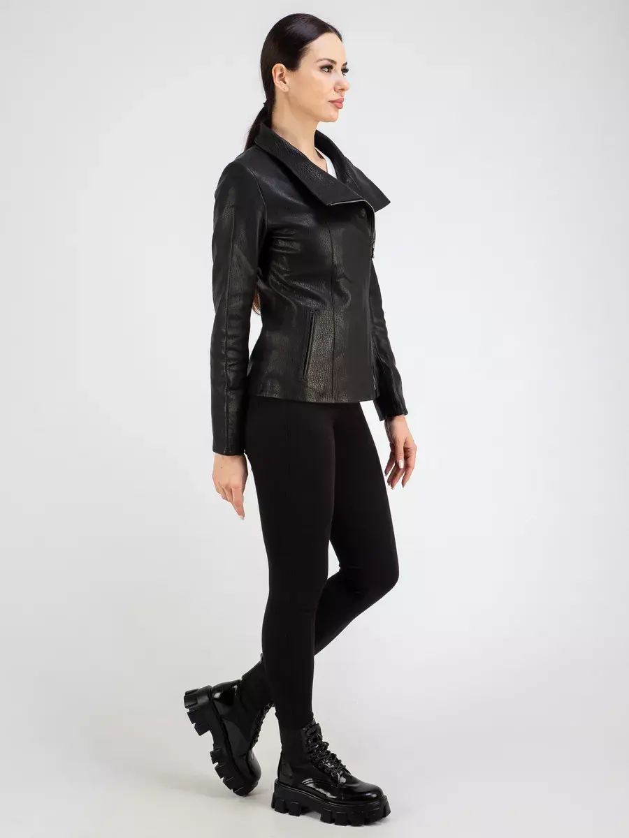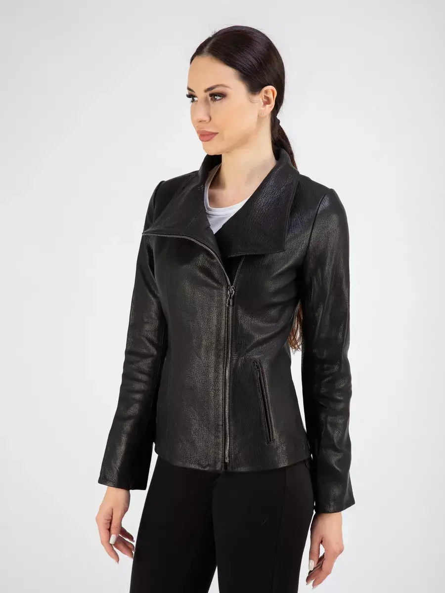 Каждая деталь этой кожаной куртки выполнена с особым вниманием к качеству материалов. Куртка женская весна - осень имеет длину по спинке 60 см. Приталенный крой, втачной рукав и шлица на молнии которые умело подчеркивают женскую фигуру. Модный воротник, премиальная зернистая фактура кожи придают косухе куртке уникальность и изысканность, идеально впишется в любой стиль и дополнит образ женщины или девочки, независимо от возраста. Застежка на молнии обеспечивает легкость и удобство в использовании, а прорезные карманы на молниях по бокам дополнительно увеличивают функциональность куртки. Эта куртка весенняя, осенняя - отличный выбор для тех, кто ценит качество и стиль.