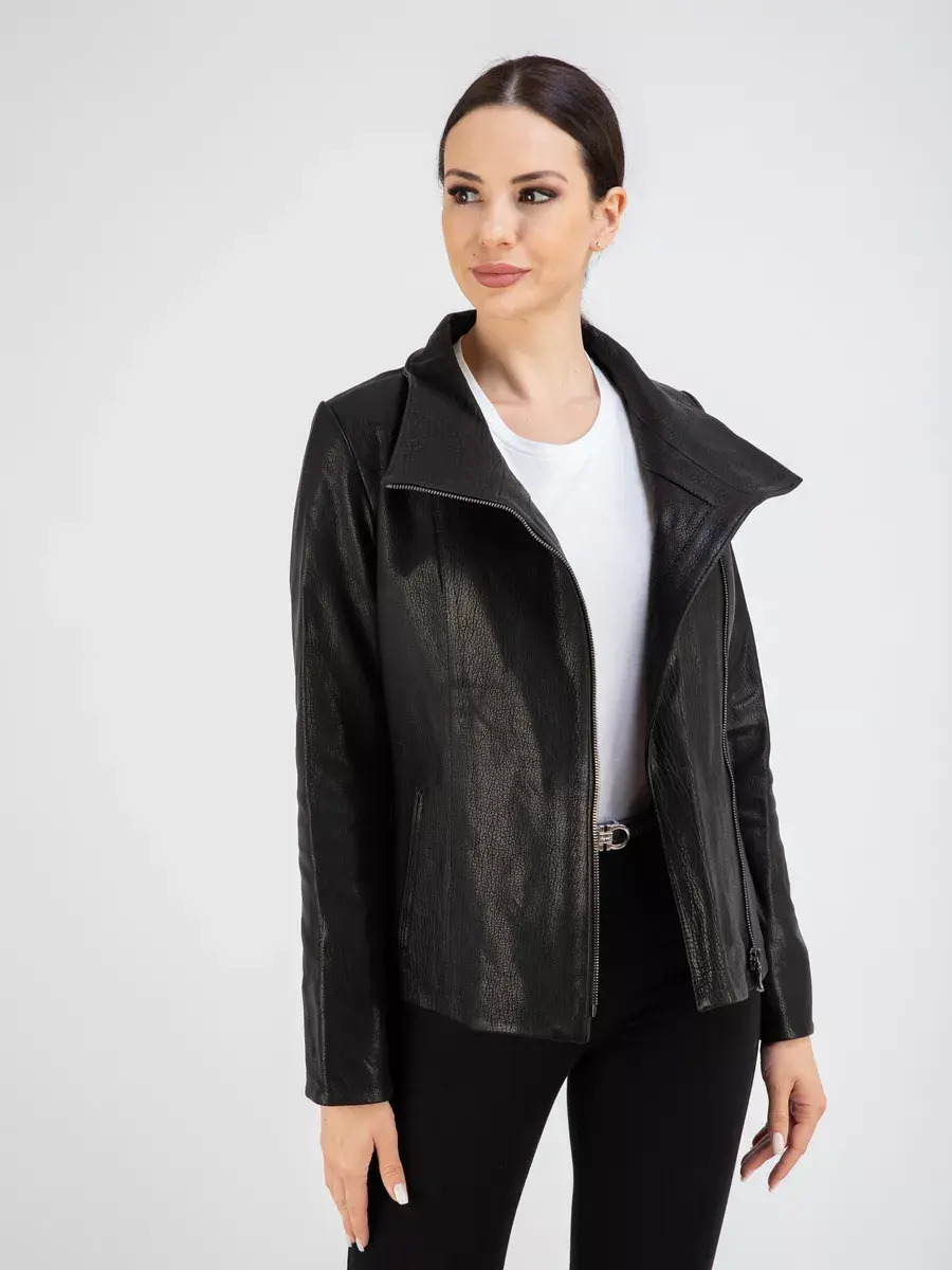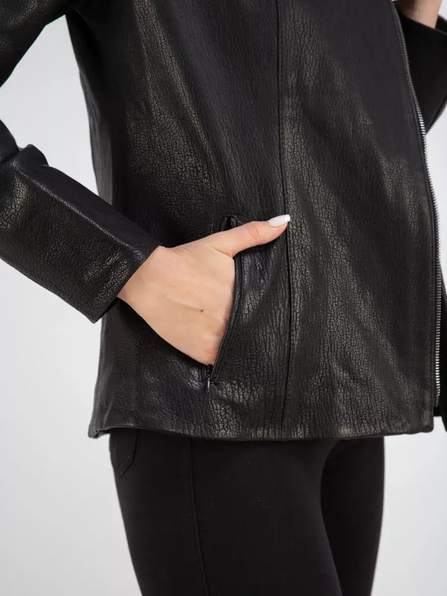 Куртка женская косуха изготовлена из высококачественной натуральной кожи ягненка - джумбо, которая применяется для создания эксклюзивных модных коллекций верхней одежды. Кожа плотная и мягкая, дольше сохраняет отличный внешний вид, износоустойчивая к царапинам и воздействию окружающей среды, поэтому идеально подходить для носки осенью и весной.