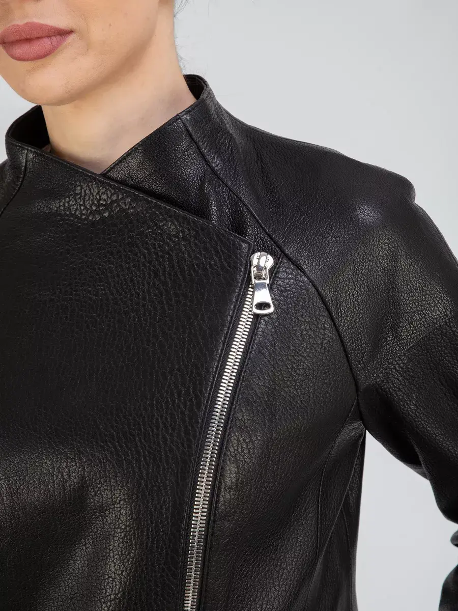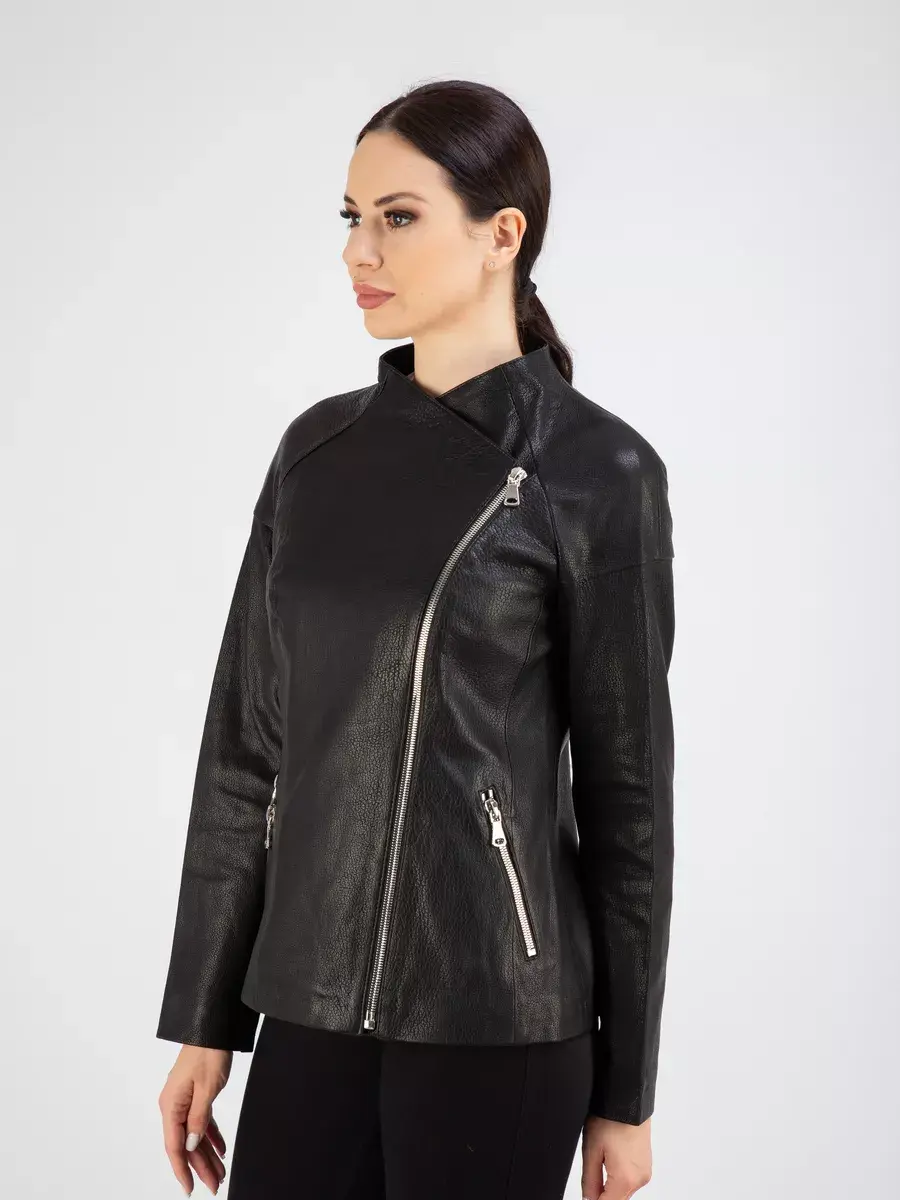 Оригинальная кожаная куртка демисезонная женская, косуха женская бренда Chimera сочетает в себе изысканность и элегантность, удобство и практичность. При ее производстве использовалась мягкая, плотная натуральная кожа, отличающаяся устойчивостью к износу. Кожаная куртка женская косуха изготовлена из высококачественной натуральной кожи ягненка - джумбо, которая применяется для создания эксклюзивных модных коллекций верхней одежды.