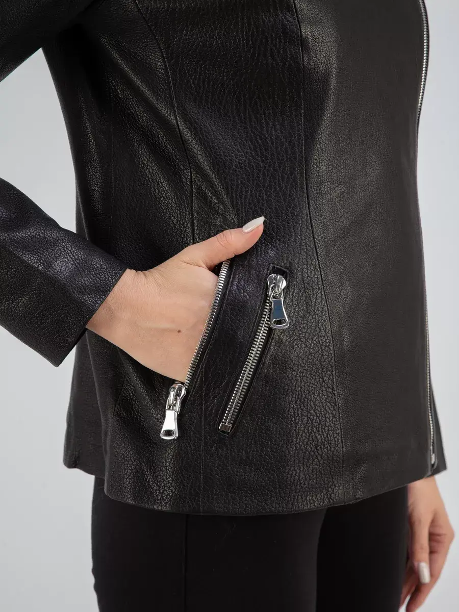 двойной карман, куртка женская кожаная косуха,