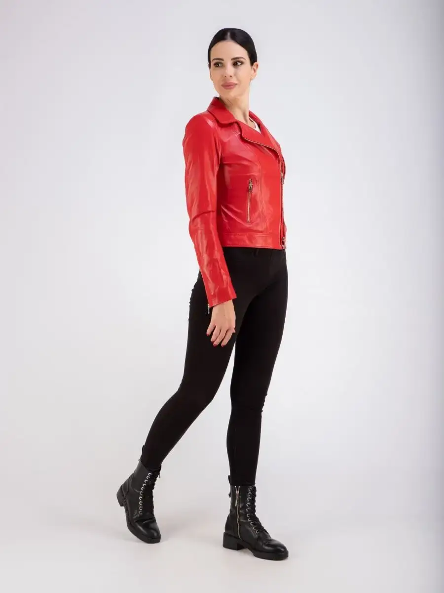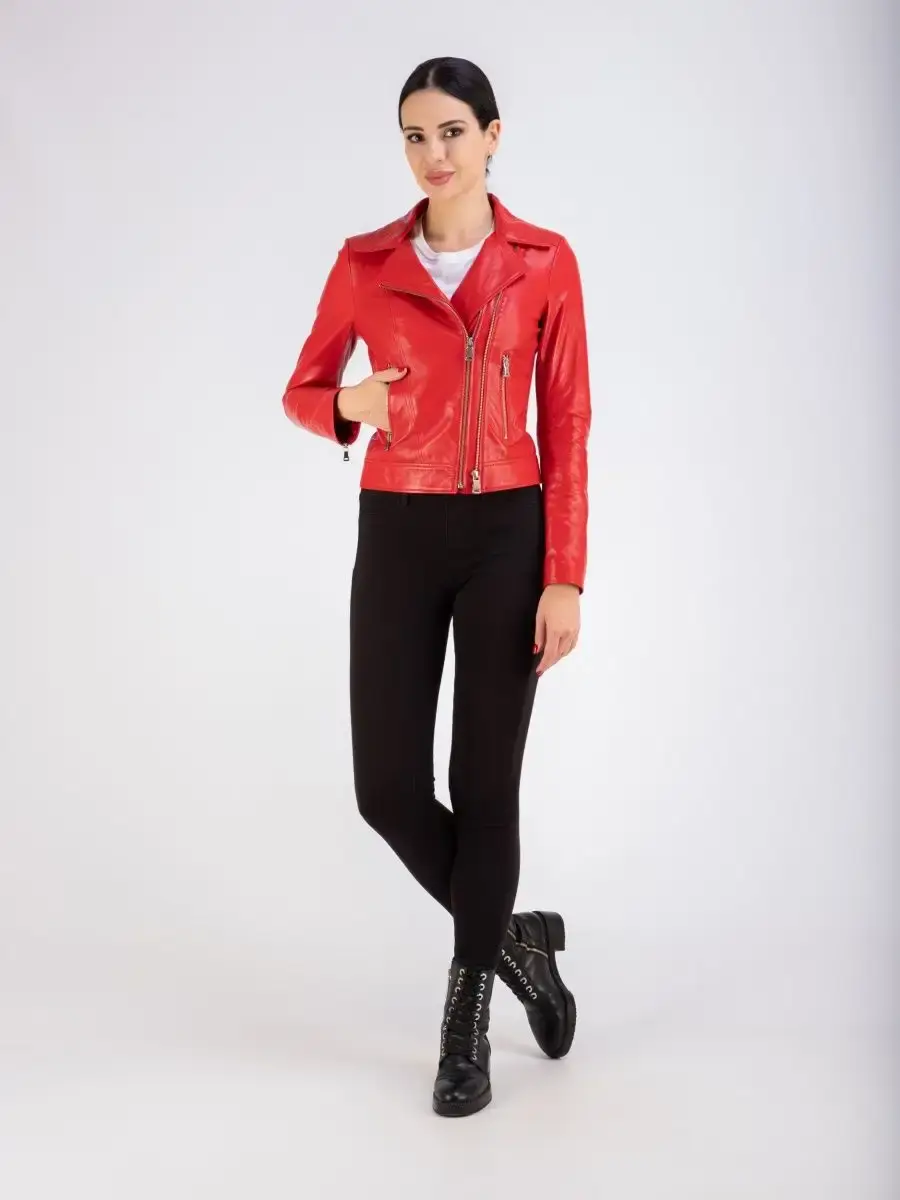 Стильная кожаная куртка косуха женская из натуральной кожи подчеркнет вашу индивидуальность. Данная модель куртки, косухи выполнена из натуральной кожи ягнёнка, которая отличается высокой прочностью и долговечностью, сохраняя при этом свою мягкость и эластичность в любое время года, осенью и весной. Вы будете выделяться из толпы и привлекать восхищенные взгляды.