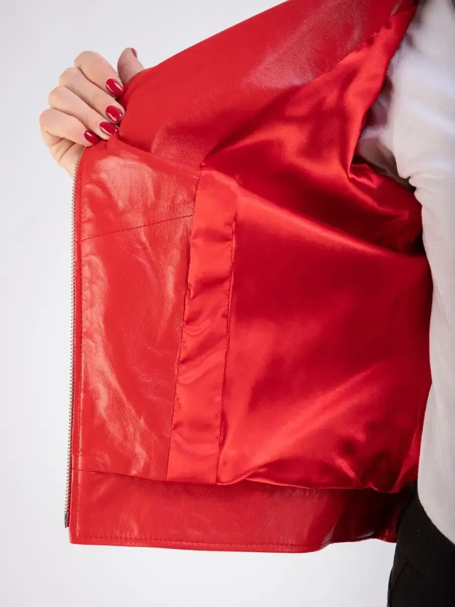 Каждая деталь этой кожаной куртки осень - весна выполнена с особым вниманием к качеству материалов и одежды. Ровные швы, прорезные карманы на молнии, двойная застежка на молнии и фурнитура добавляют акценты стиля и функциональности, делают эту короткую женскую куртку универсальным элементом гардероба, который подходит практически под любой стиль, деловой или повседневный. Приталенный крой, втачной рукав и молнии на рукавах обеспечивают этой демисезонной куртке, косухе комфорт и свободу движений.