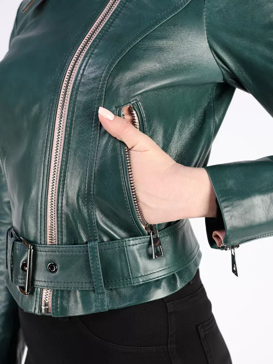 Стильная и яркая кожаная куртка косуха женская короткая из натуральной кожи подчеркнет вашу индивидуальность. Вы будете выделяться из толпы и привлекать восхищенные взгляды.