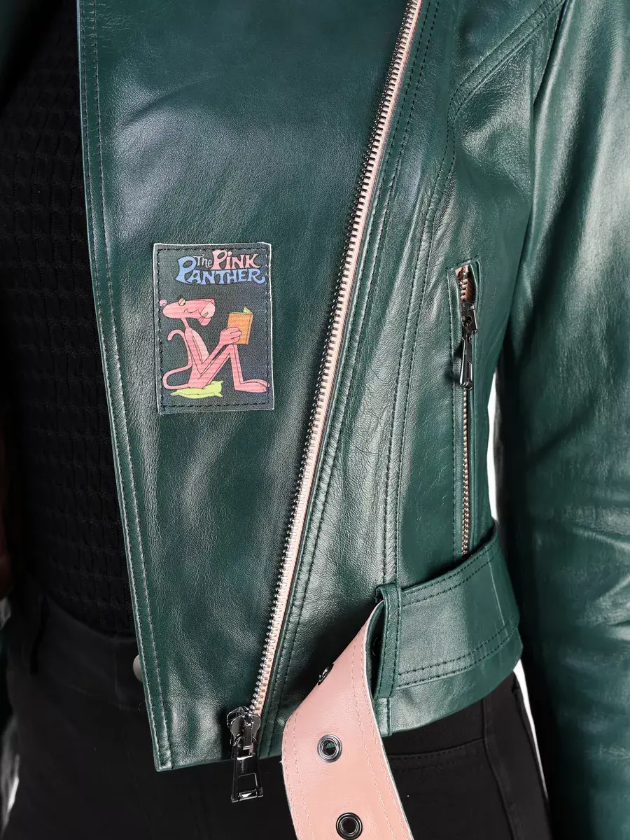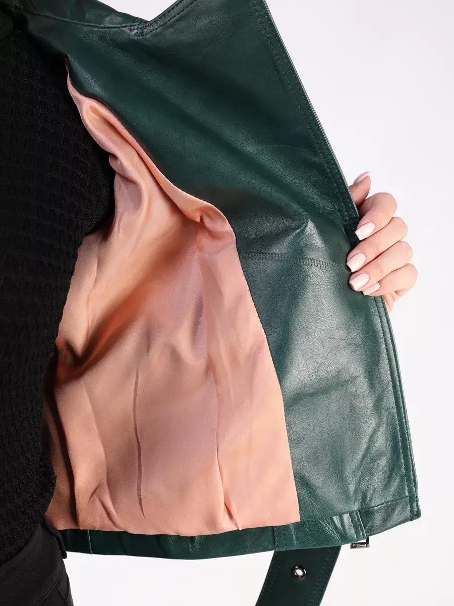 Каждая деталь этой кожаной куртки, косухи выполнена с особым вниманием к качеству материалов. Ровные швы, прорезные карманы на молнии, комбинация зеленого и розового цвета с вставкой и фурнитура добавляют акценты стиля и функциональности, делают эту короткую женскую куртку универсальным элементом гардероба, который подходит практически под любой стиль, деловой или повседневный. Короткий и приталенный крой, втачной рукав и молния на рукавах обеспечивают этой демисезонной куртке, косухе комфорт и свободу движений.