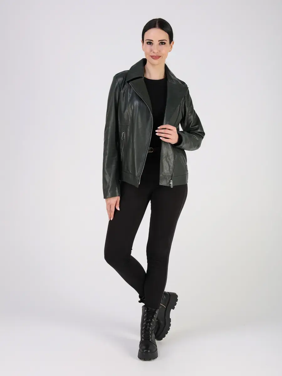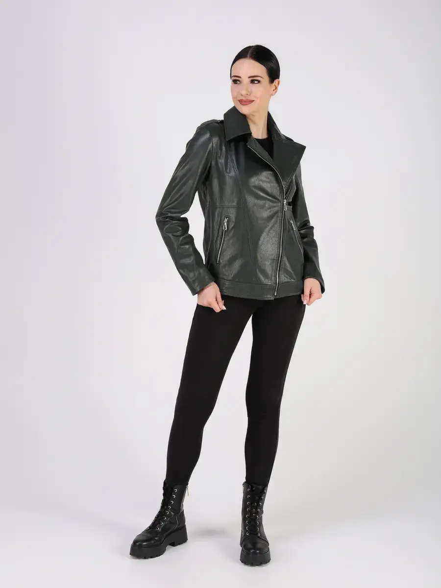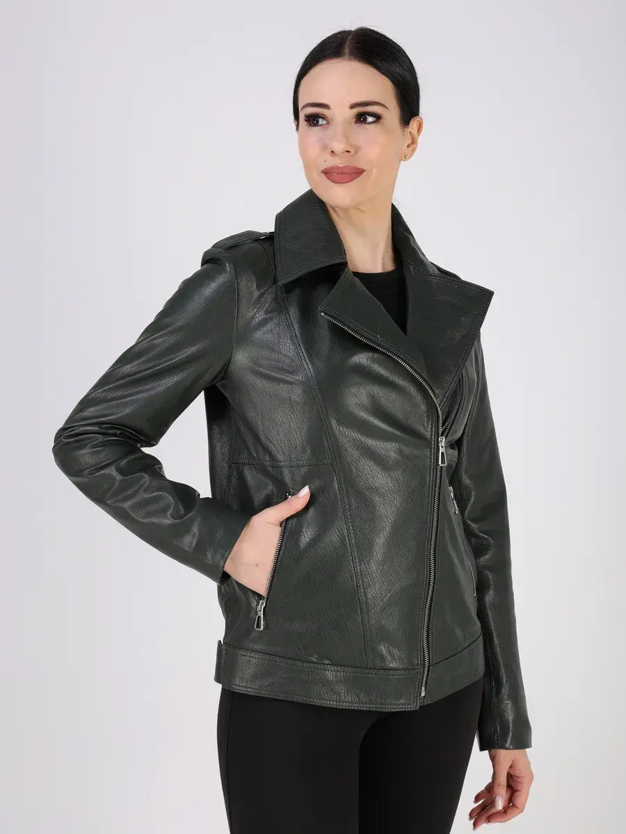 Стильная кожаная куртка косуха женская укороченная из натуральной кожи подчеркнет вашу индивидуальность.