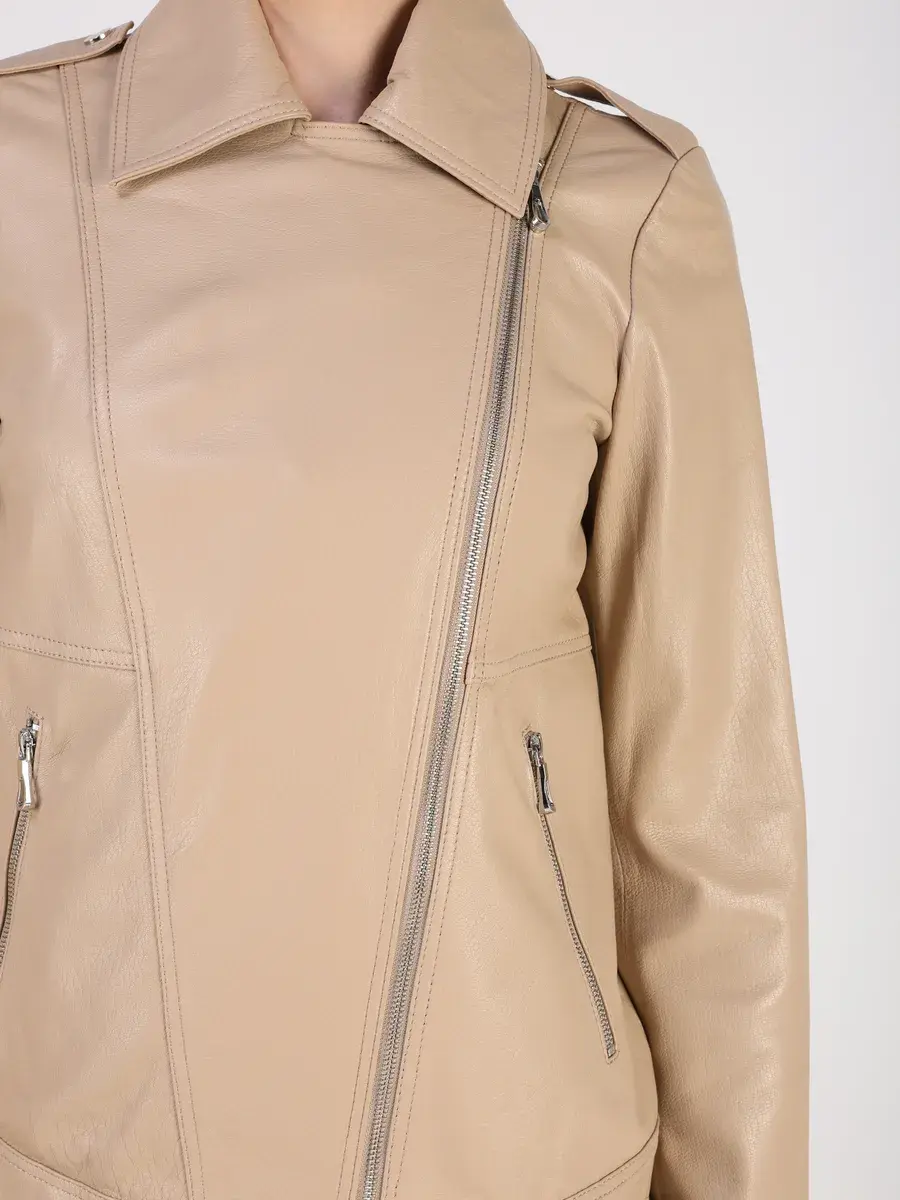 Каждая деталь этой кожаной куртки выполнена с особым вниманием к качеству. Прорезные карманы на молнии, хлястики по бокам, эполеты и фурнитура добавляют акценты стиля и функциональности, делают эту женскую куртку универсальным элементом гардероба, который подходит практически под любой стиль, деловой или повседневный. Удлиненный и приталенный крой и застежка на молнии обеспечивают этой демисезонной куртке косухе комфорт и свободу движений.