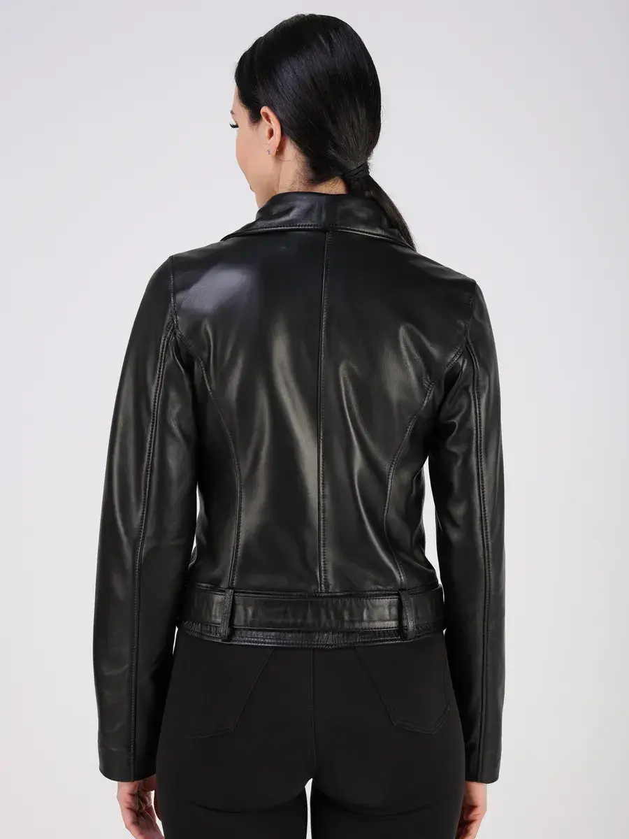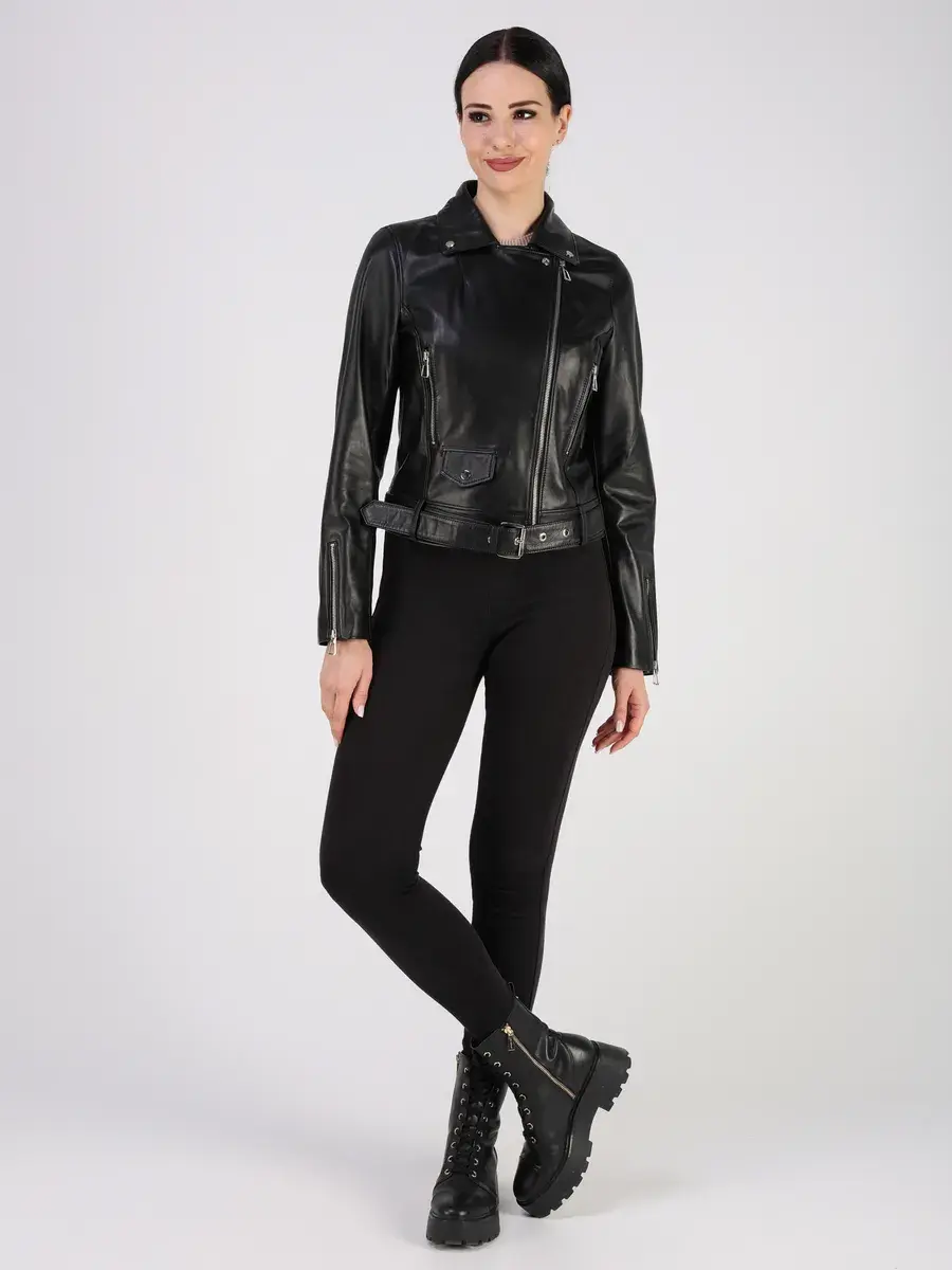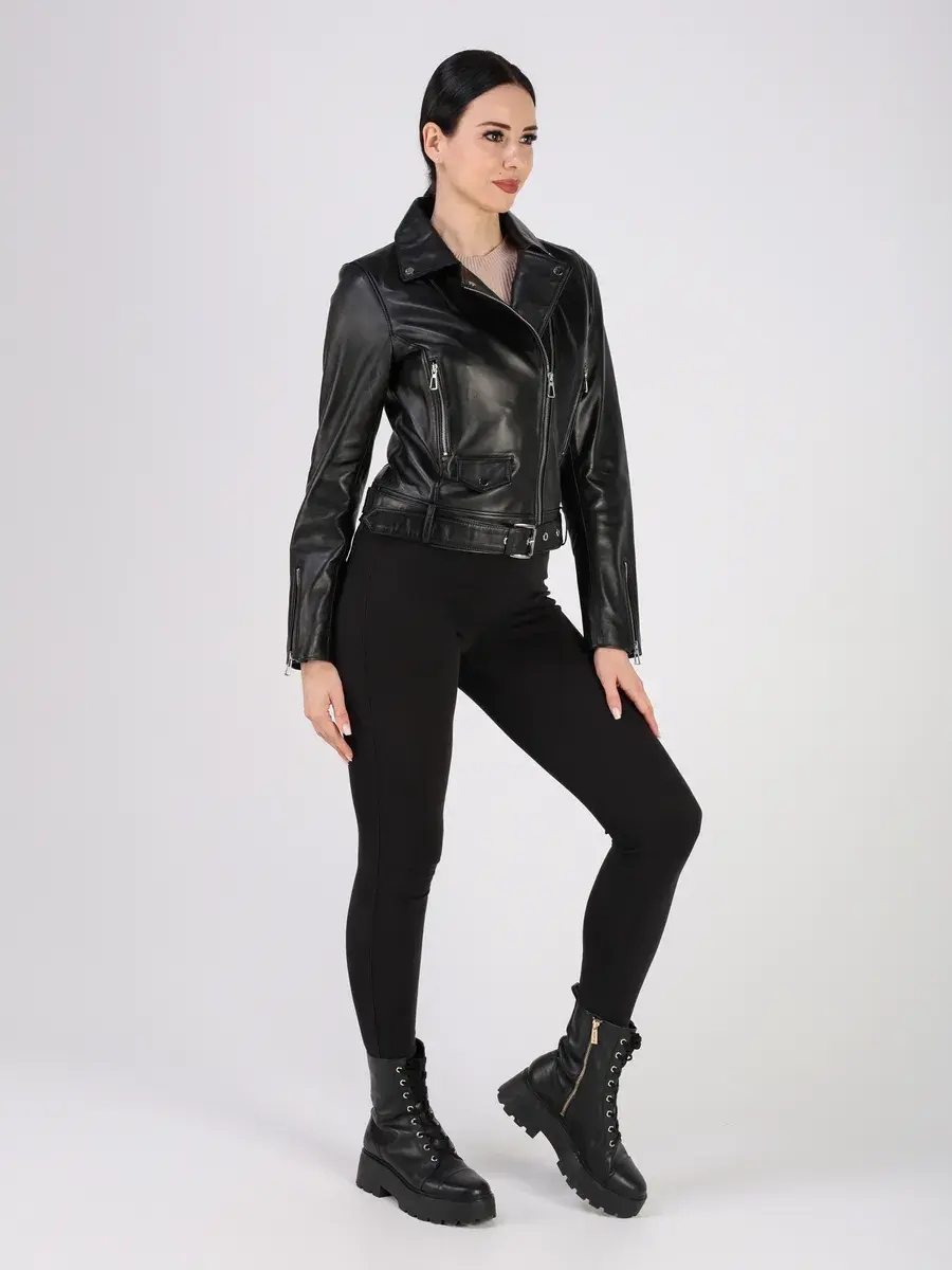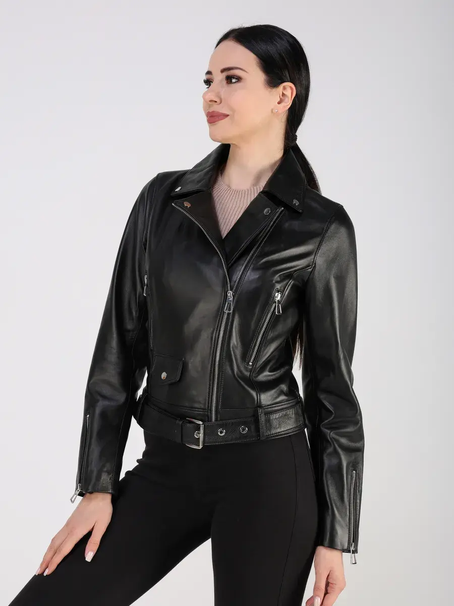 Стильная кожаная куртка косуха женская укороченная из натуральной кожи подчеркнет вашу индивидуальность.
