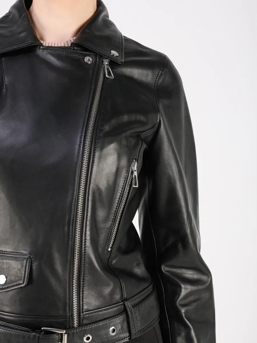 Каждая деталь этой кожаной куртки выполнена с особым вниманием к качеству. Прорезные карманы на молнии, декоративный карман, молнии на рукавах и фурнитура добавляют акценты стиля и функциональности, делают эту короткую женскую куртку универсальным элементом гардероба, который подходит практически под любой стиль, деловой или повседневный. Короткий и приталенный крой и застежка на молнии обеспечивают этой демисезонной куртке, косухе комфорт и свободу движений.