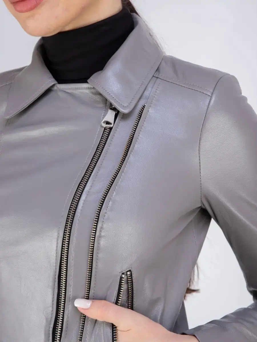 Каждая деталь этой кожаной куртки осень - весна выполнена с особым вниманием к качеству материалов и одежды. Ровные швы, прорезные карманы на молнии, двойная застежка на молнии и фурнитура добавляют акценты стиля и функциональности, делают эту короткую женскую куртку универсальным элементом гардероба, который подходит практически под любой стиль, деловой или повседневный. Приталенный крой, втачной рукав и молнии на рукавах обеспечивают этой демисезонной куртке, косухе комфорт и свободу движений.