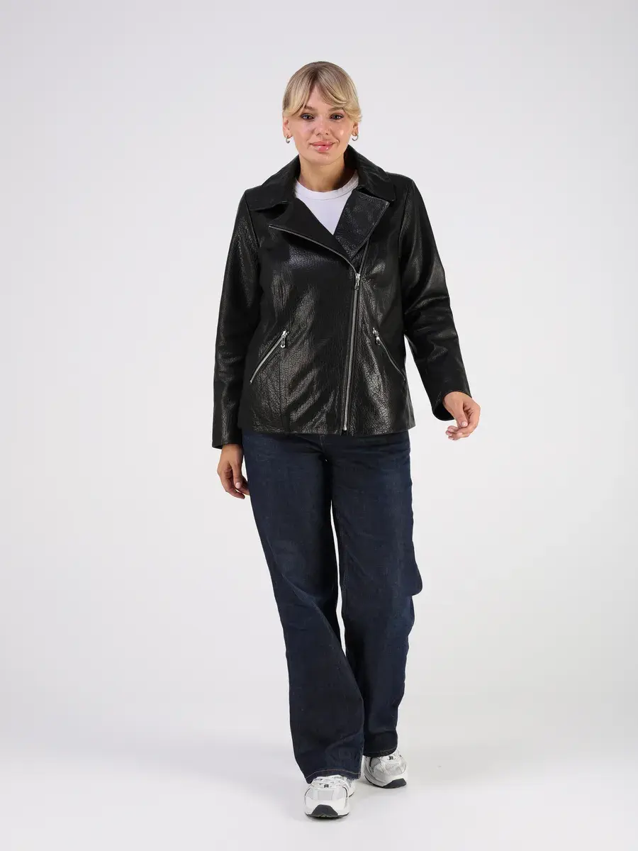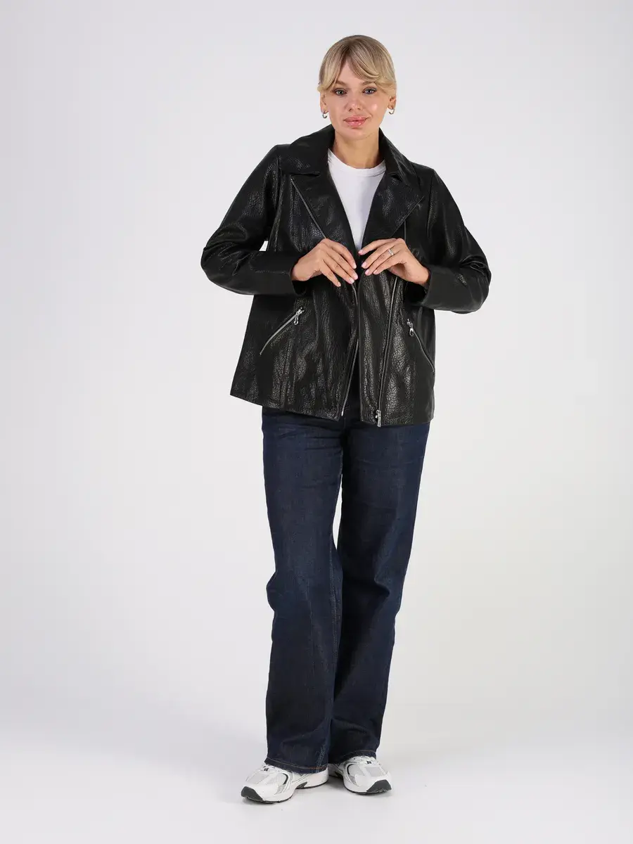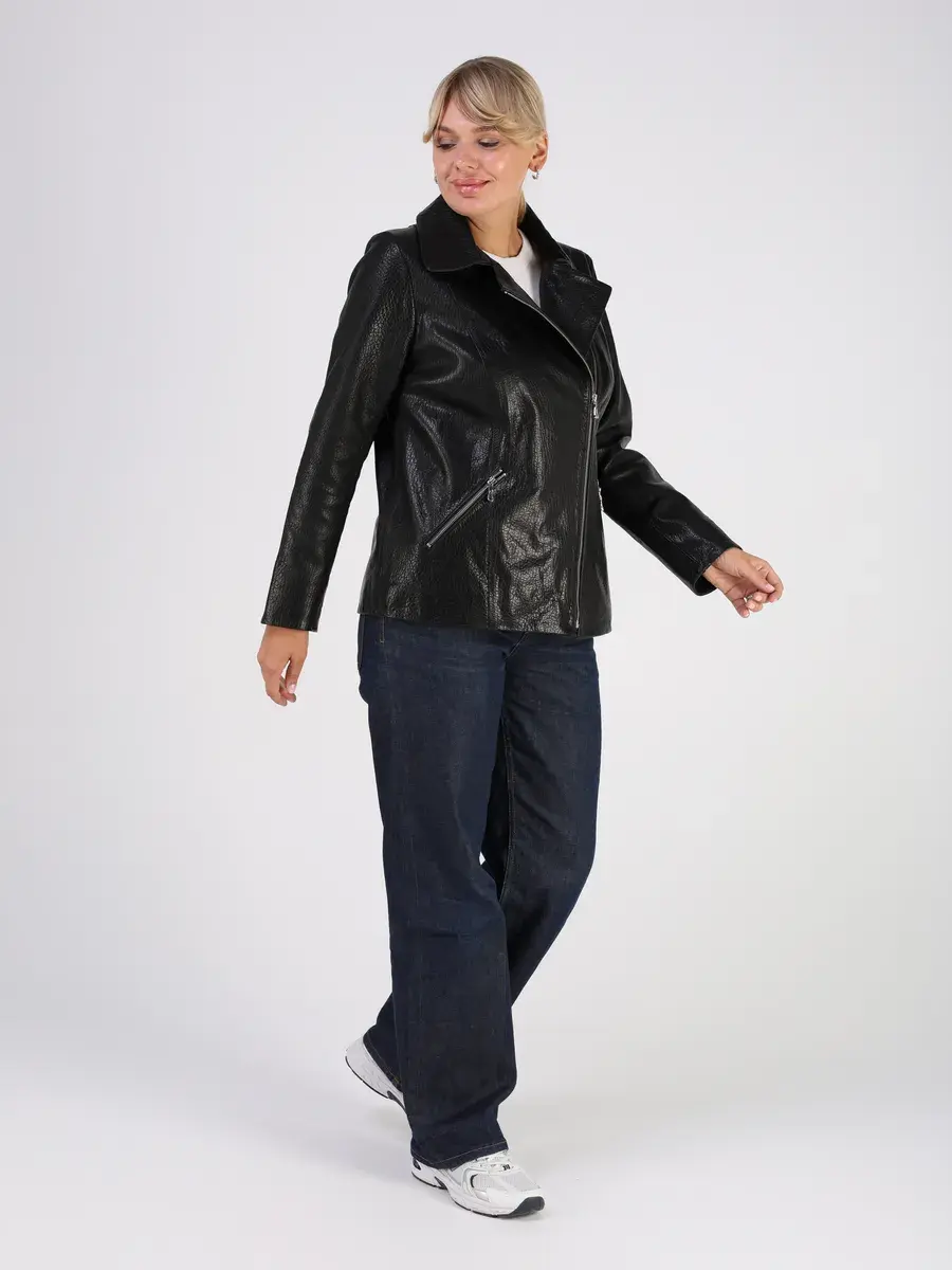 Стильная кожаная куртка косуха женская оверсайз из натуральной кожи подчеркнет вашу индивидуальность. Данная модель куртки, косухи выполнена из кожи ягнёнка, которая отличается высокой прочностью и долговечностью, сохраняя при этом свою мягкость и эластичность.