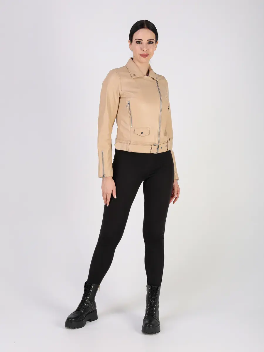 Классическая кожаная куртка женская, косуха бренда Mondial - это прекрасный выбор демисезонной верхней одежды для модных девушек и женщин!