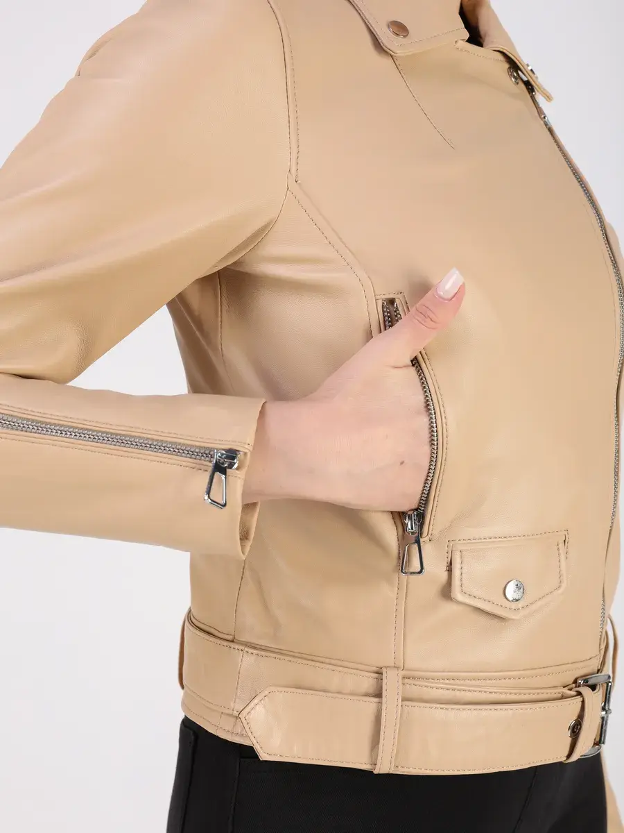 Стильная кожаная куртка косуха женская укороченная из натуральной кожи подчеркнет вашу индивидуальность.