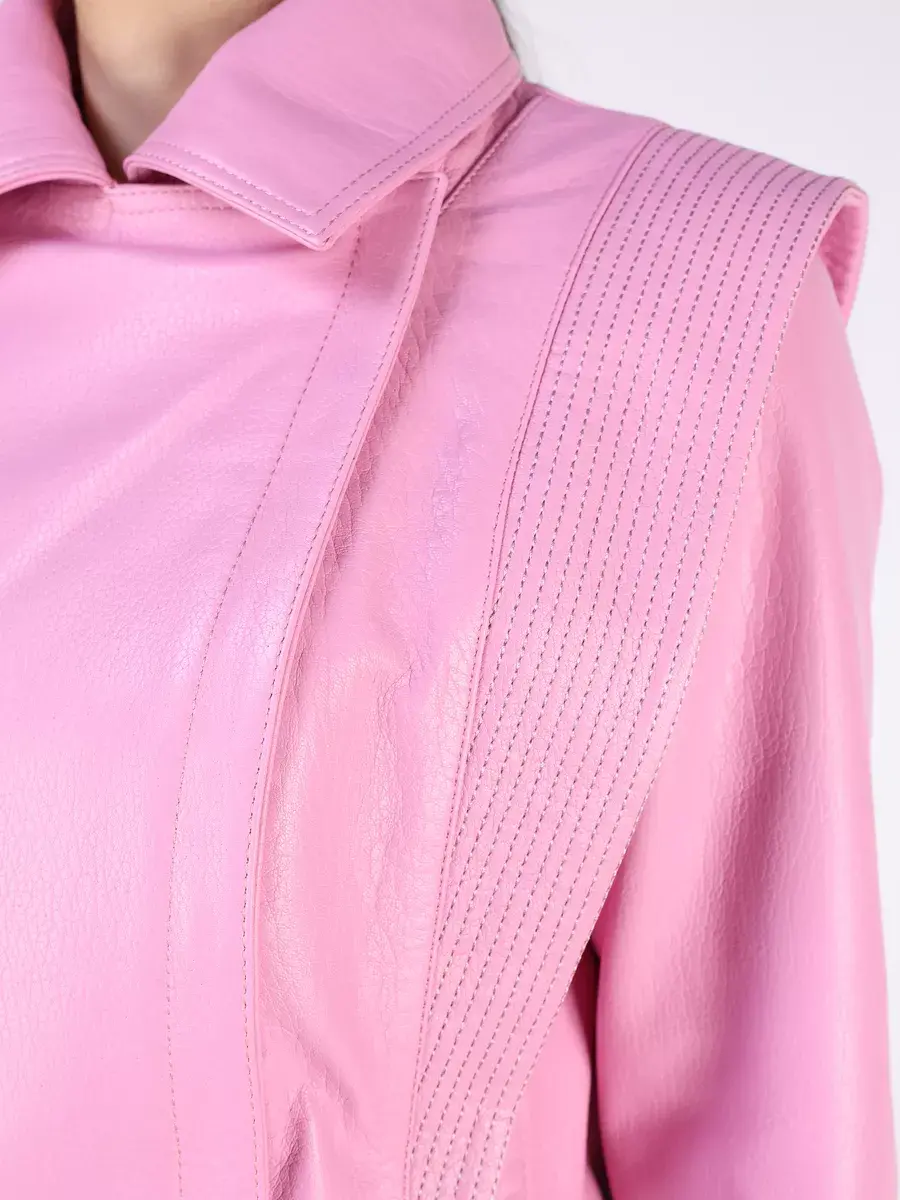 фурнитура, утягивающая кожаная резинка, молния на рукавах, строчка