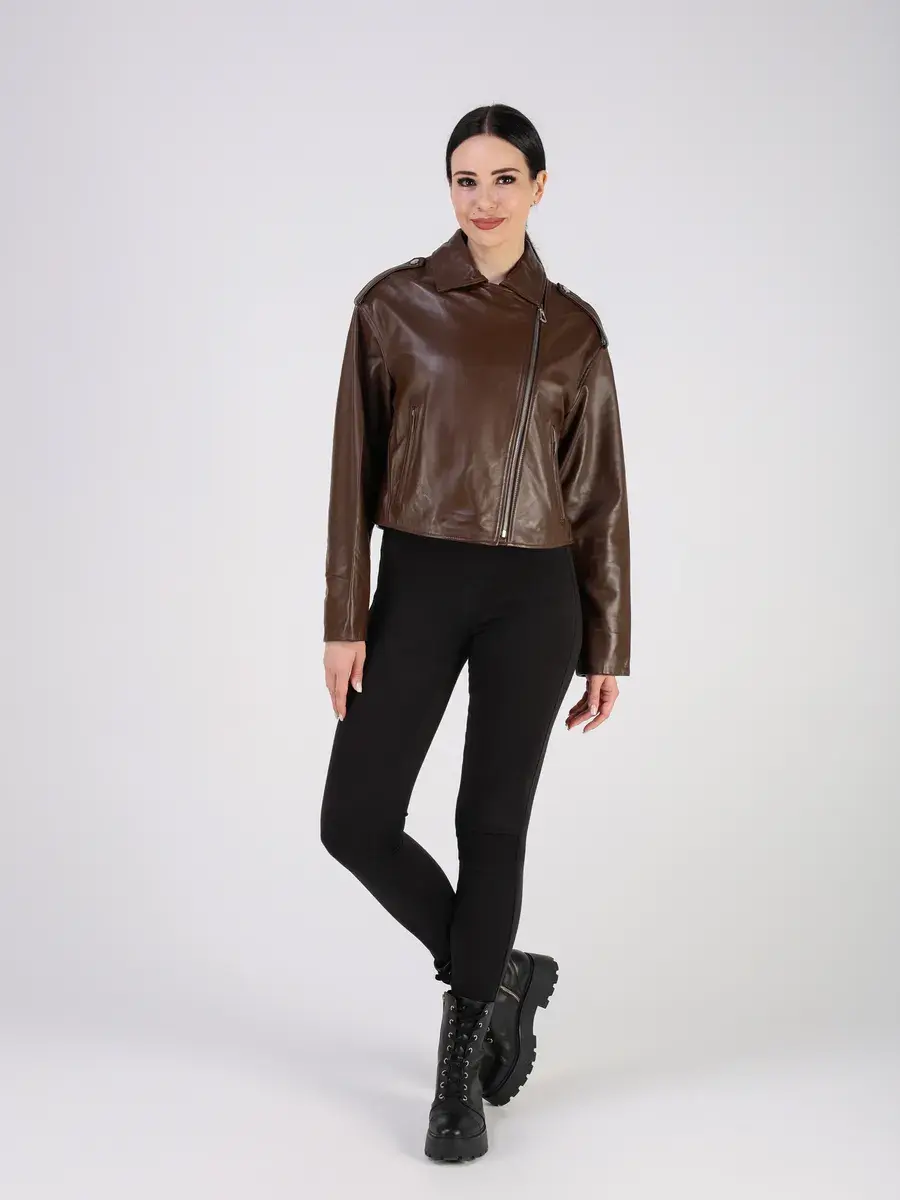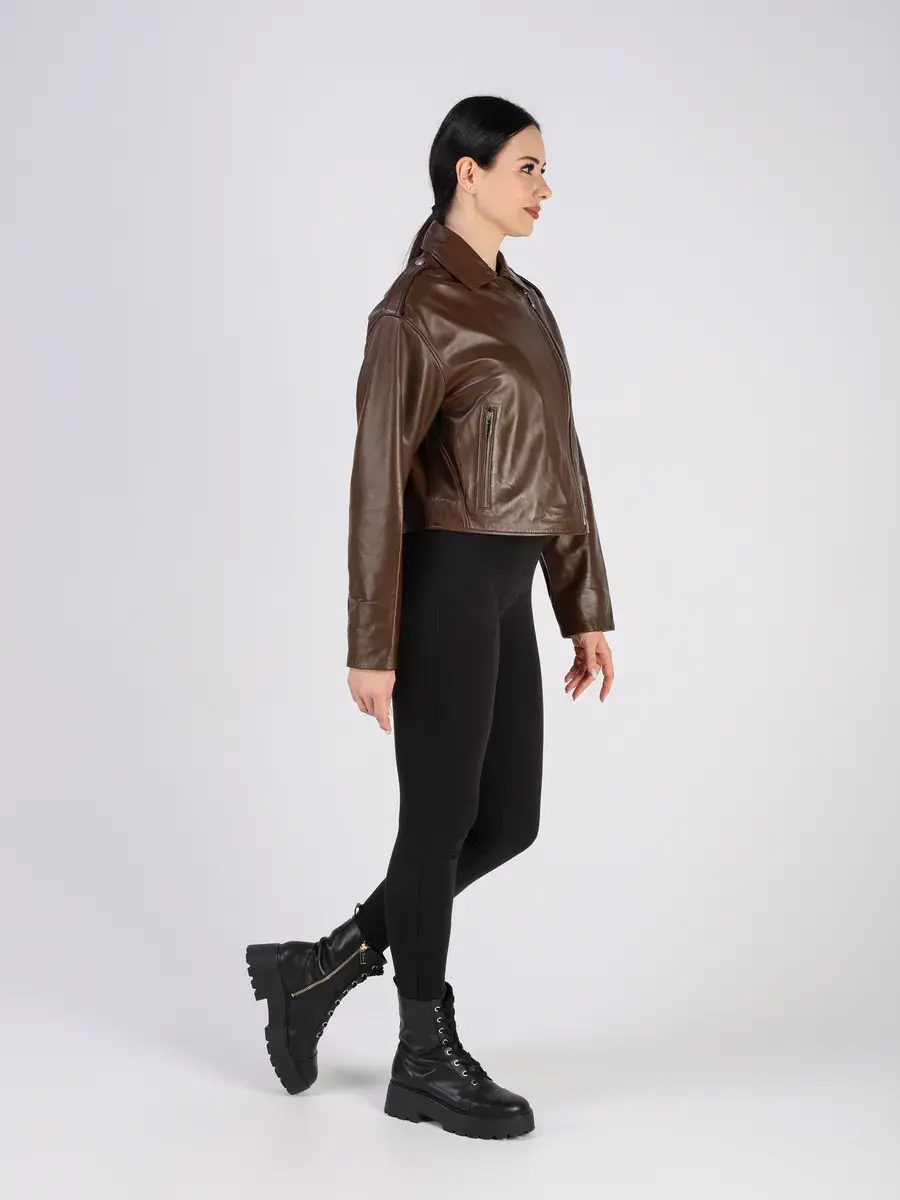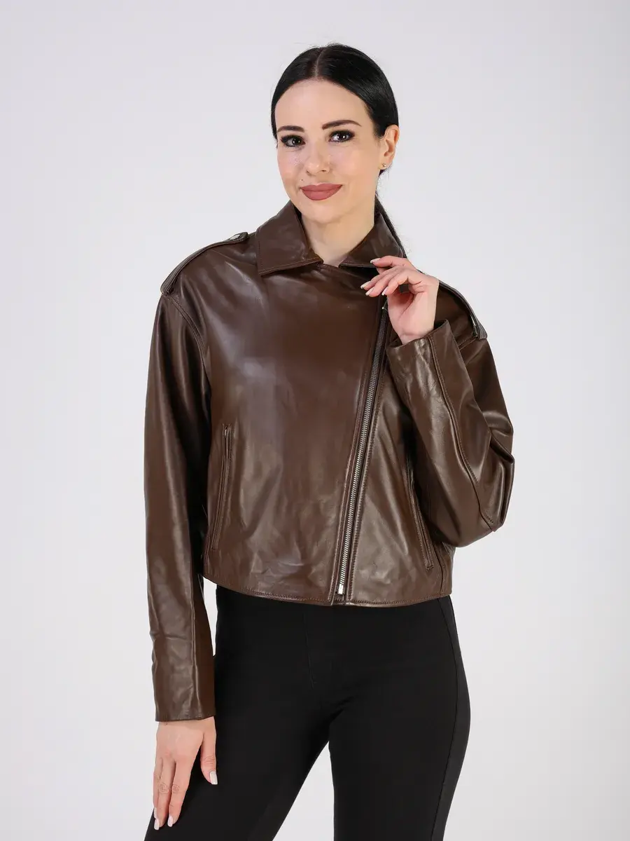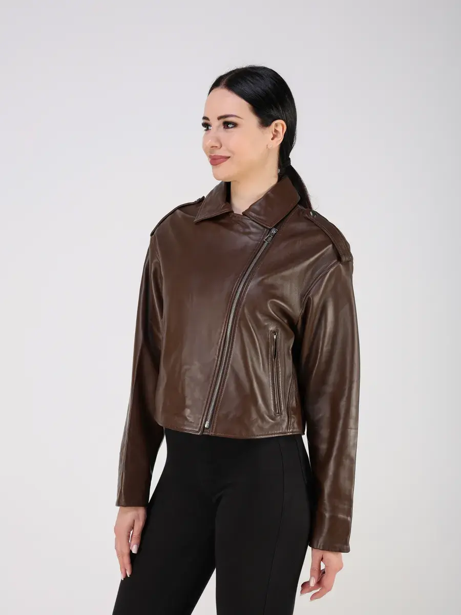 Стильная кожаная куртка косуха женская укороченная из натуральной кожи подчеркнет вашу индивидуальность.