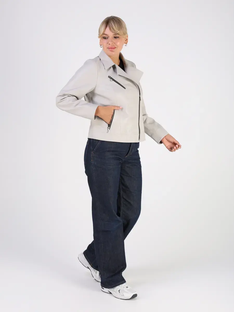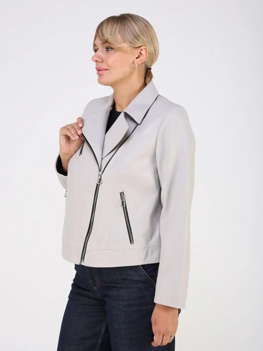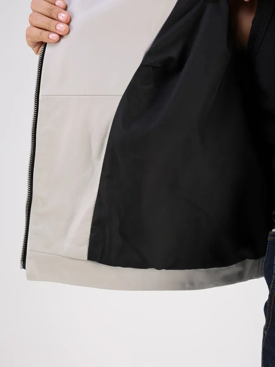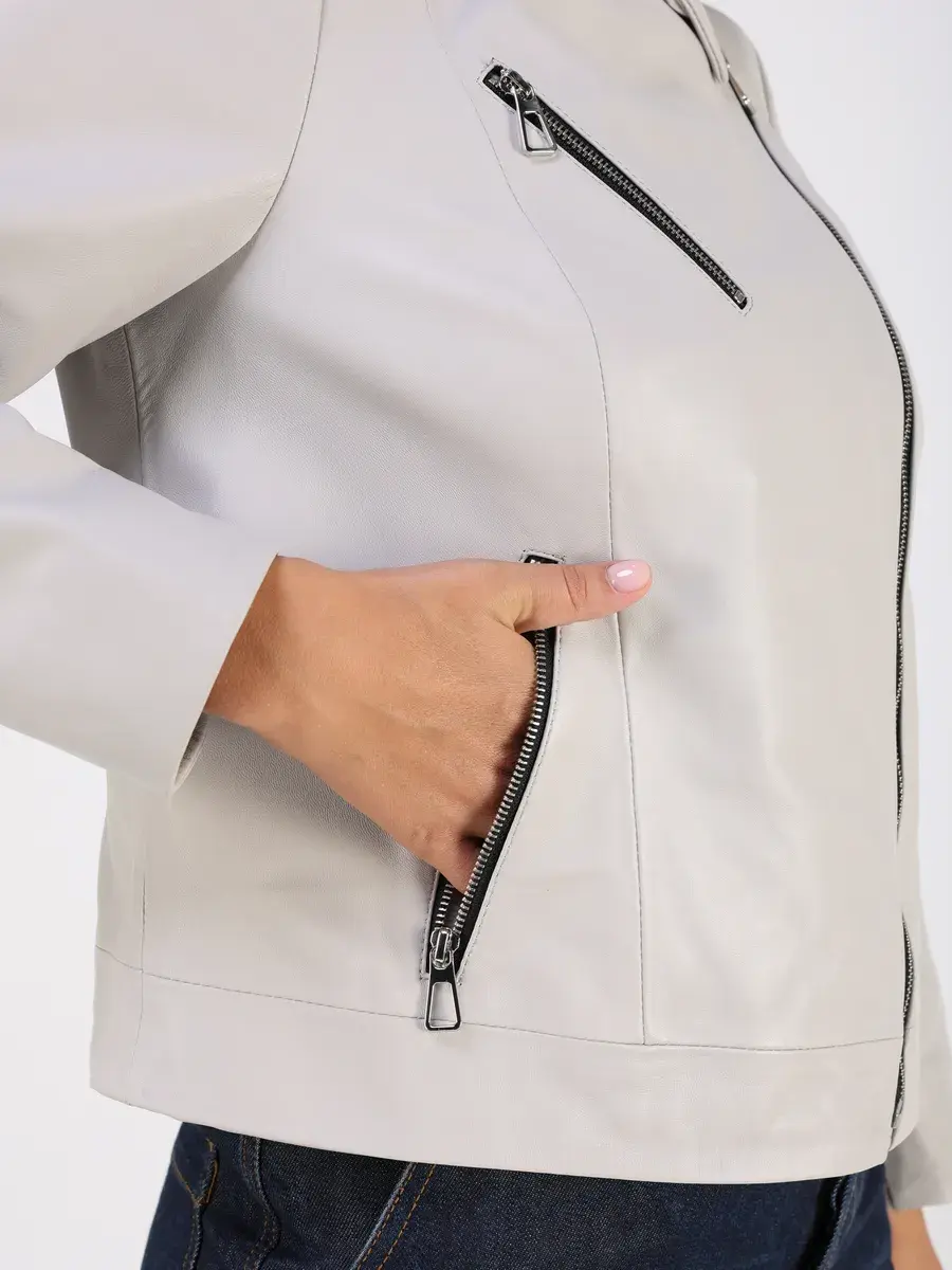 Каждая деталь этой кожаной куртки осень - весна выполнена с особым вниманием к качеству. Ровные швы, прорезные карманы на молнии и карман на груди добавляют акценты стиля и функциональности, делают эту короткую женскую куртку универсальным элементом гардероба, который подходит практически под любой стиль, деловой или повседневный. Свободный оверсайз крой, втачной рукав обеспечивают этой демисезонной куртке, косухе комфорт и свободу движений.