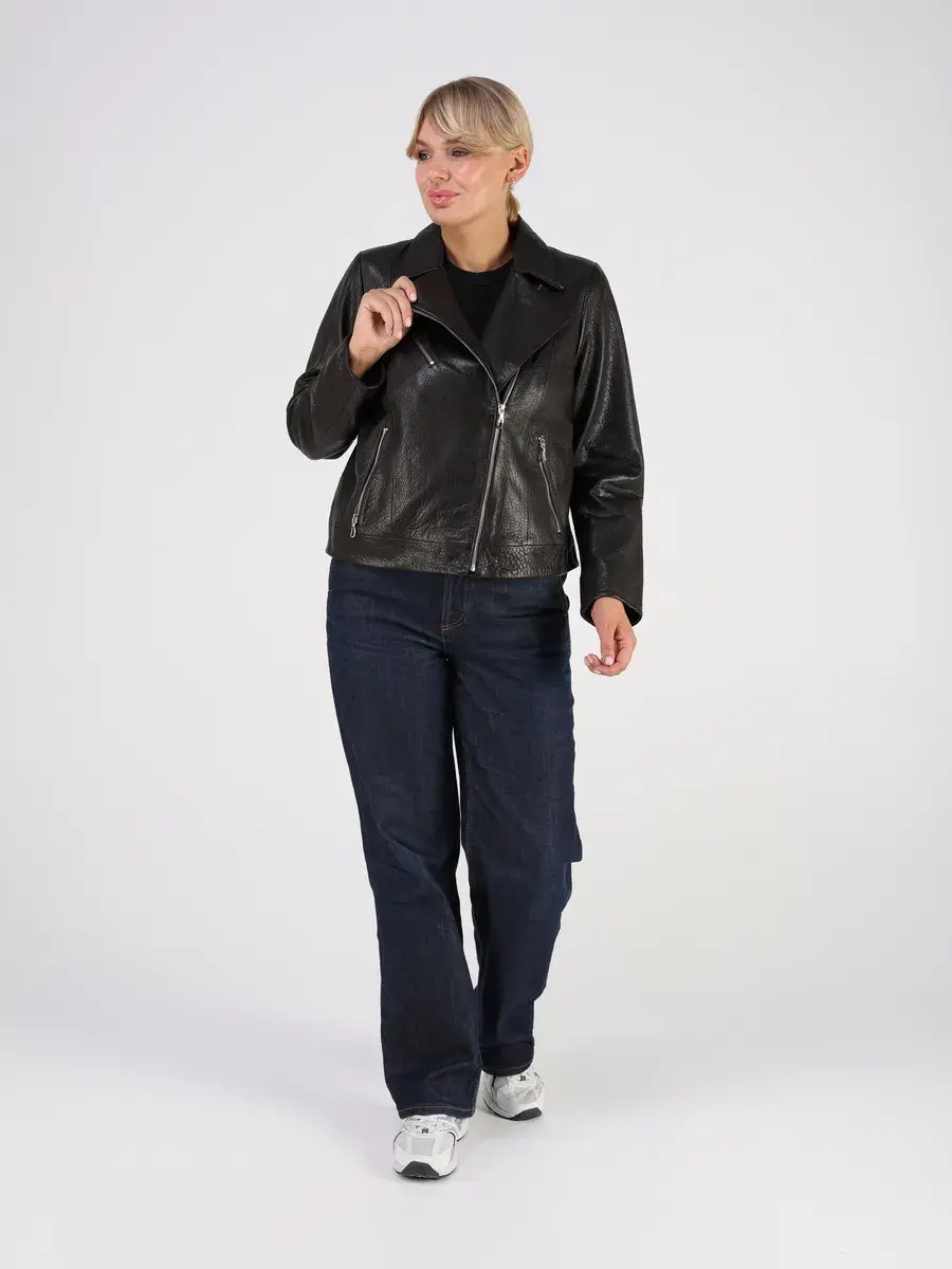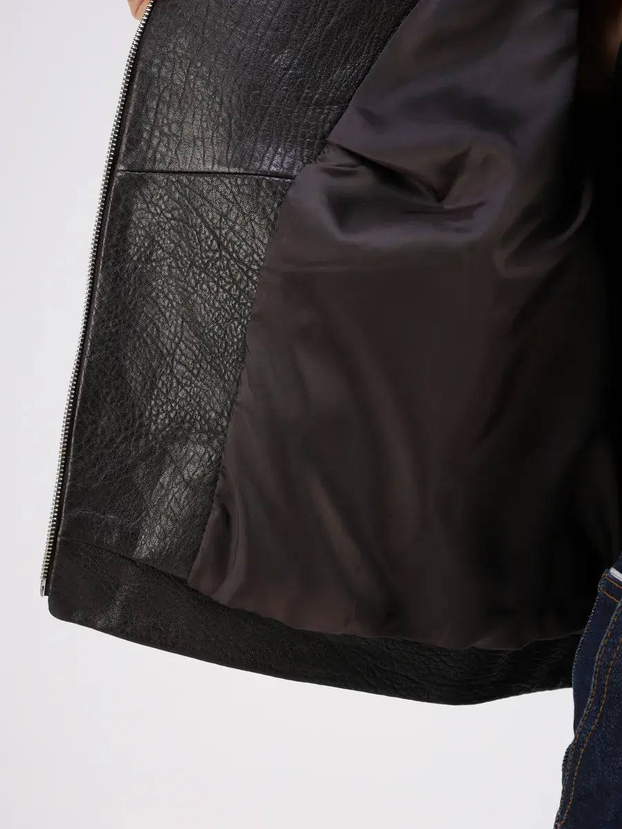 Каждая деталь этой кожаной куртки осень - весна выполнена с особым вниманием к качеству. Ровные швы, прорезные карманы на молнии и карман на груди добавляют акценты стиля и функциональности, делают эту короткую женскую куртку универсальным элементом гардероба, который подходит практически под любой стиль, деловой или повседневный. Свободный оверсайз крой, втачной рукав обеспечивают этой демисезонной куртке, косухе комфорт и свободу движений.