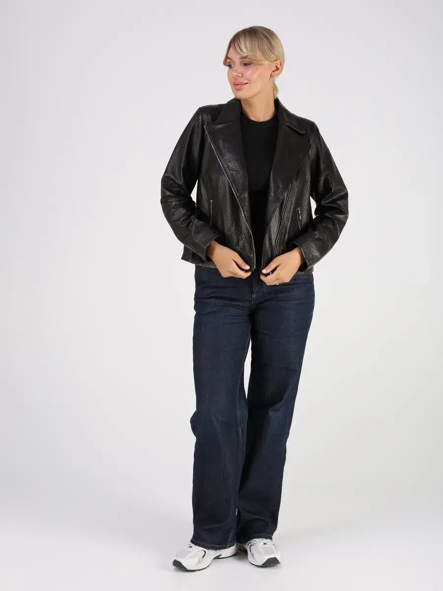 Стильная кожаная куртка косуха женская оверсайз из натуральной кожи подчеркнет вашу индивидуальность. Данная модель куртки, косухи выполнена из кожи ягнёнка, которая отличается высокой прочностью и долговечностью, сохраняя при этом свою мягкость и эластичность.