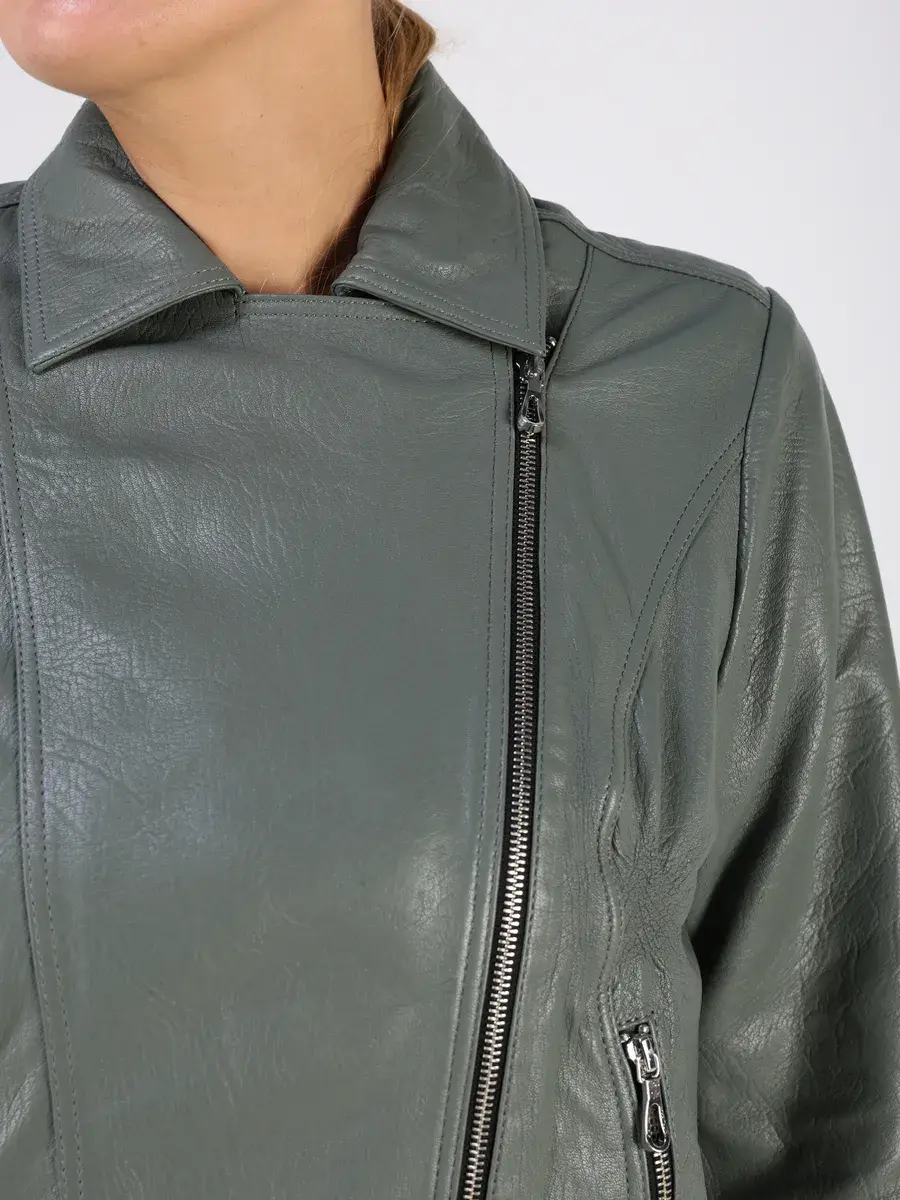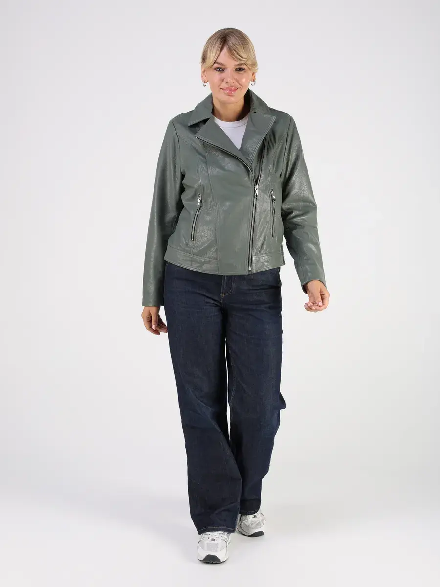 Стильная кожаная куртка косуха женская оверсайз из натуральной кожи подчеркнет вашу индивидуальность. Данная модель куртки, косухи выполнена из кожи ягнёнка фактурной выделки, которая отличается высокой прочностью и долговечностью, сохраняя при этом свою мягкость и эластичность.