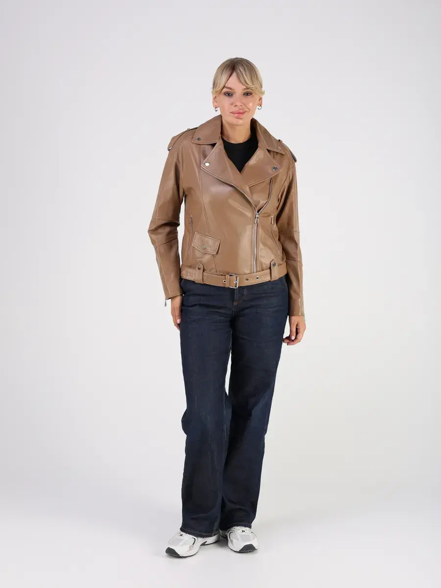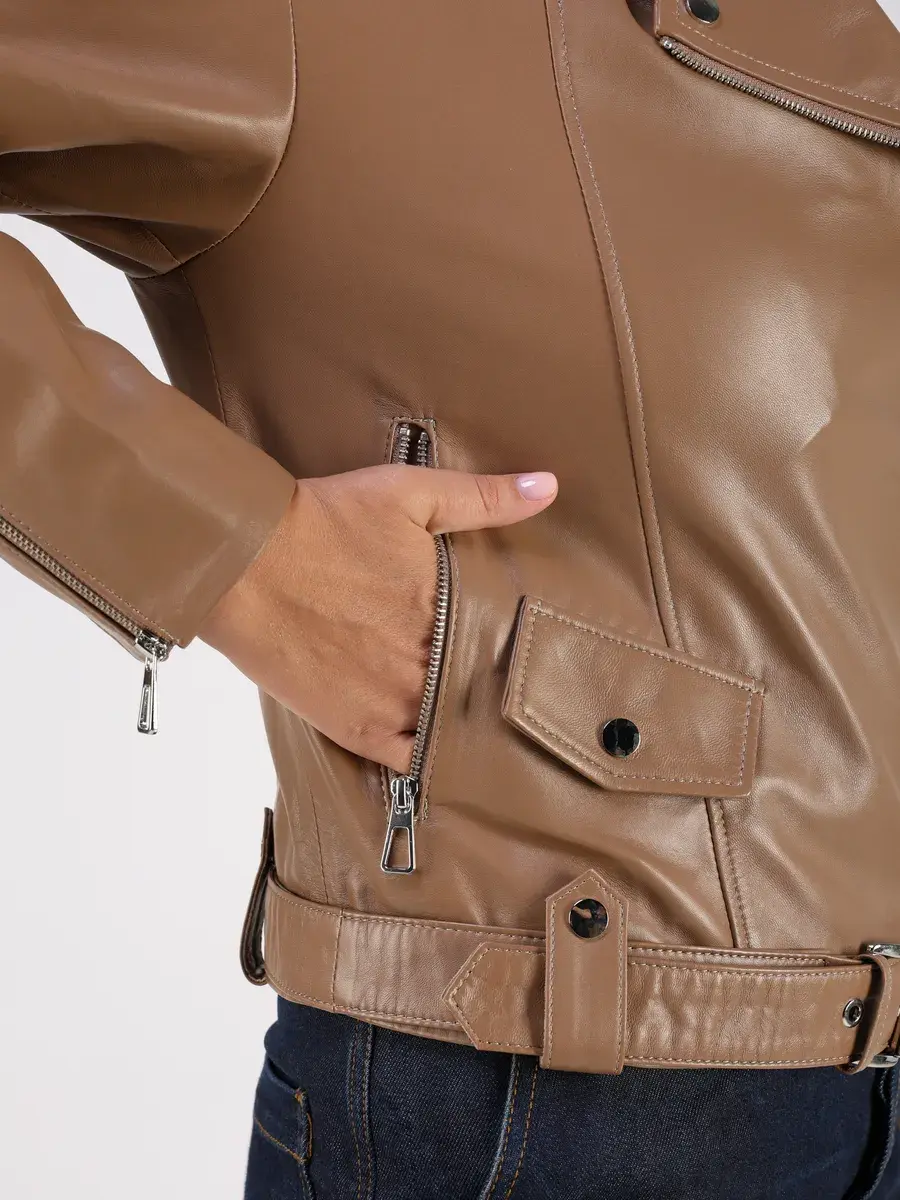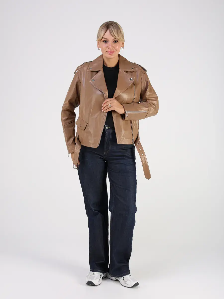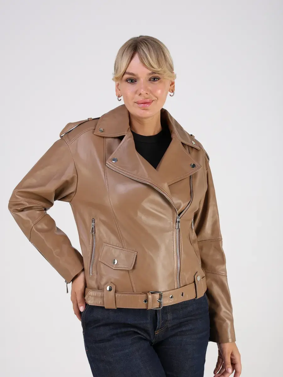 Стильная кожаная куртка косуха женская оверсайз из натуральной кожи подчеркнет вашу индивидуальность. Данная модель куртки, косухи выполнена из кожи ягнёнка, которая отличается высокой прочностью и долговечностью, сохраняя при этом свою мягкость и эластичность.