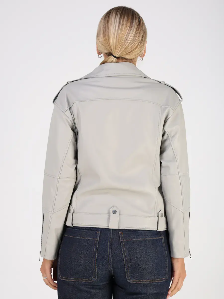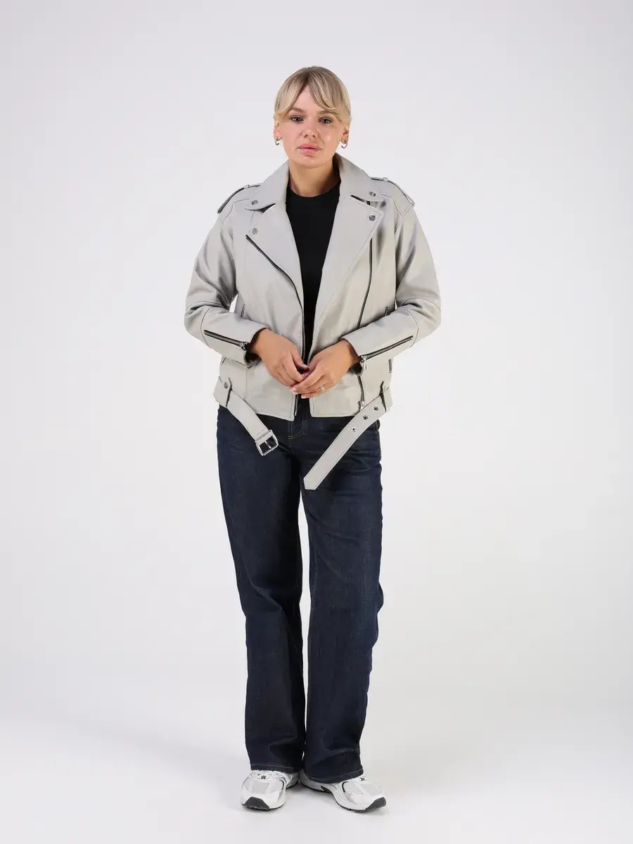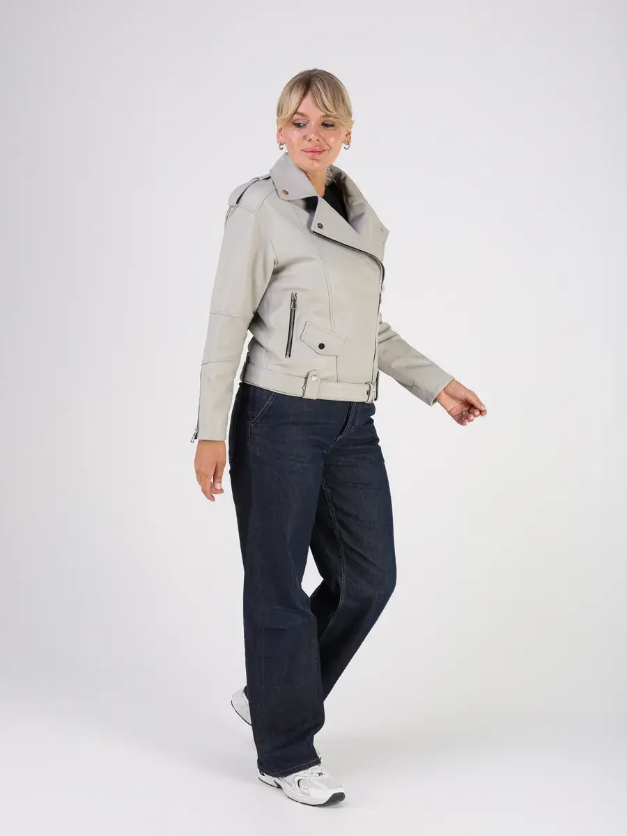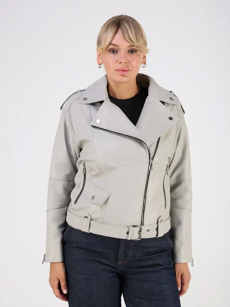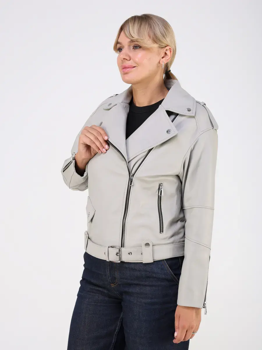 Стильная кожаная куртка косуха женская оверсайз из натуральной кожи подчеркнет вашу индивидуальность. Данная модель куртки, косухи выполнена из кожи ягнёнка, которая отличается высокой прочностью и долговечностью, сохраняя при этом свою мягкость и эластичность.